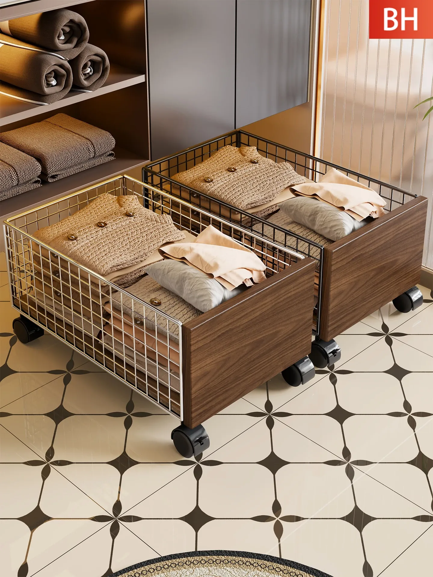おしゃれなバスルームキャビネット下のランドリーバスケット - キャスター付きで移動もラクラク!洗面所やお手洗いに最適な洗濯物収納ボックス。清潔感とデザイン性を兼ね備えた便利アイテム!