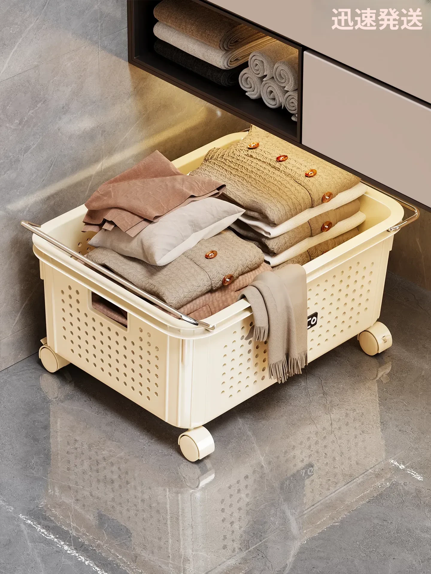家用ダブルレイヤー洗濯物バスケット - 移動可能なキャスター付き、寝室専用の便利な洗濯物収納アイテム!整理整頓が簡単にでき、毎日の洗濯も楽々。あなたの生活をもっと快適に!