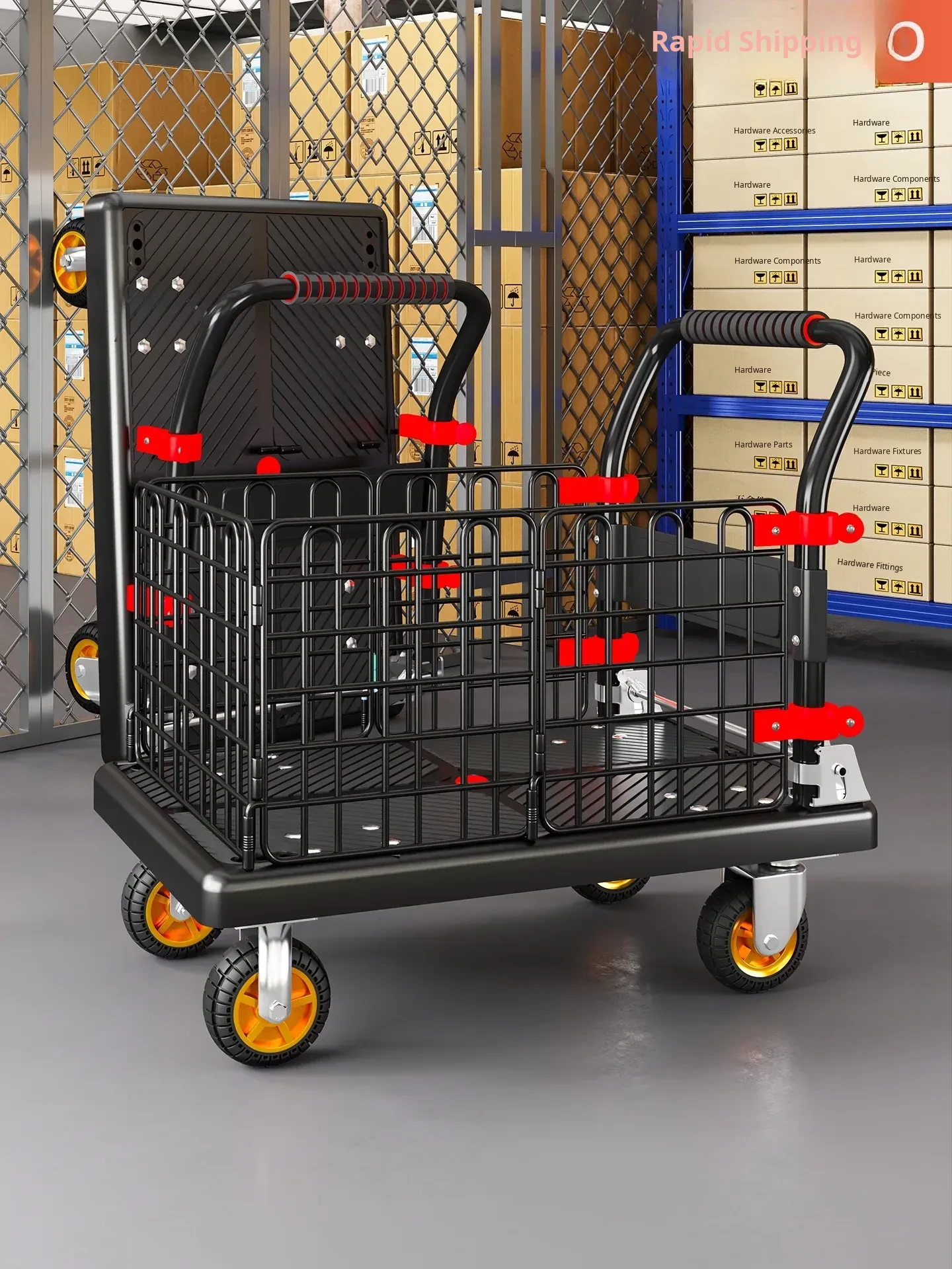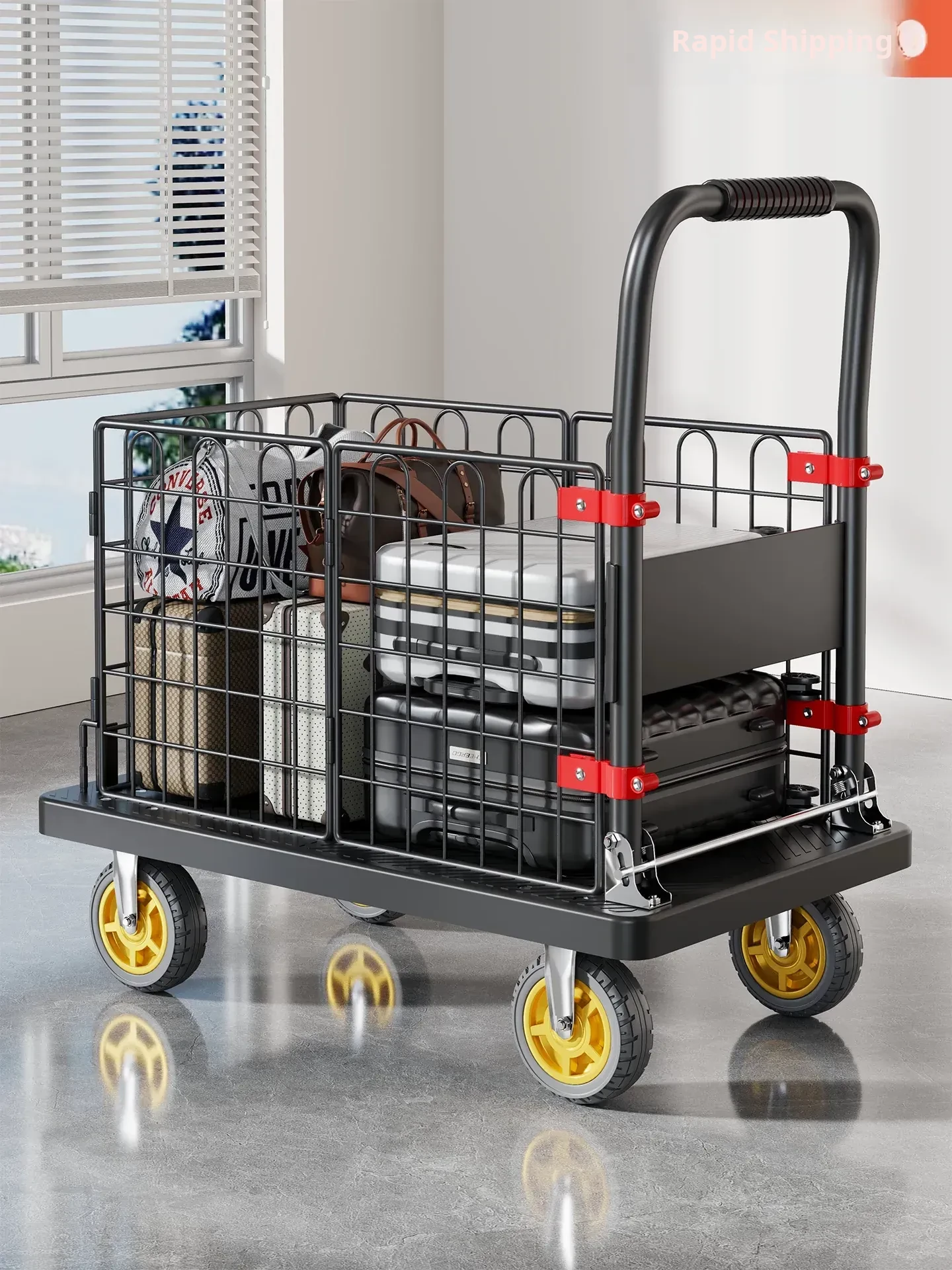 Portable Folding Utility Cart with Fencing - Ideal for Home Use, Delivery, and Grocery Transport, Easy to Maneuver Hand Truck for Quick and Convenient Hauling