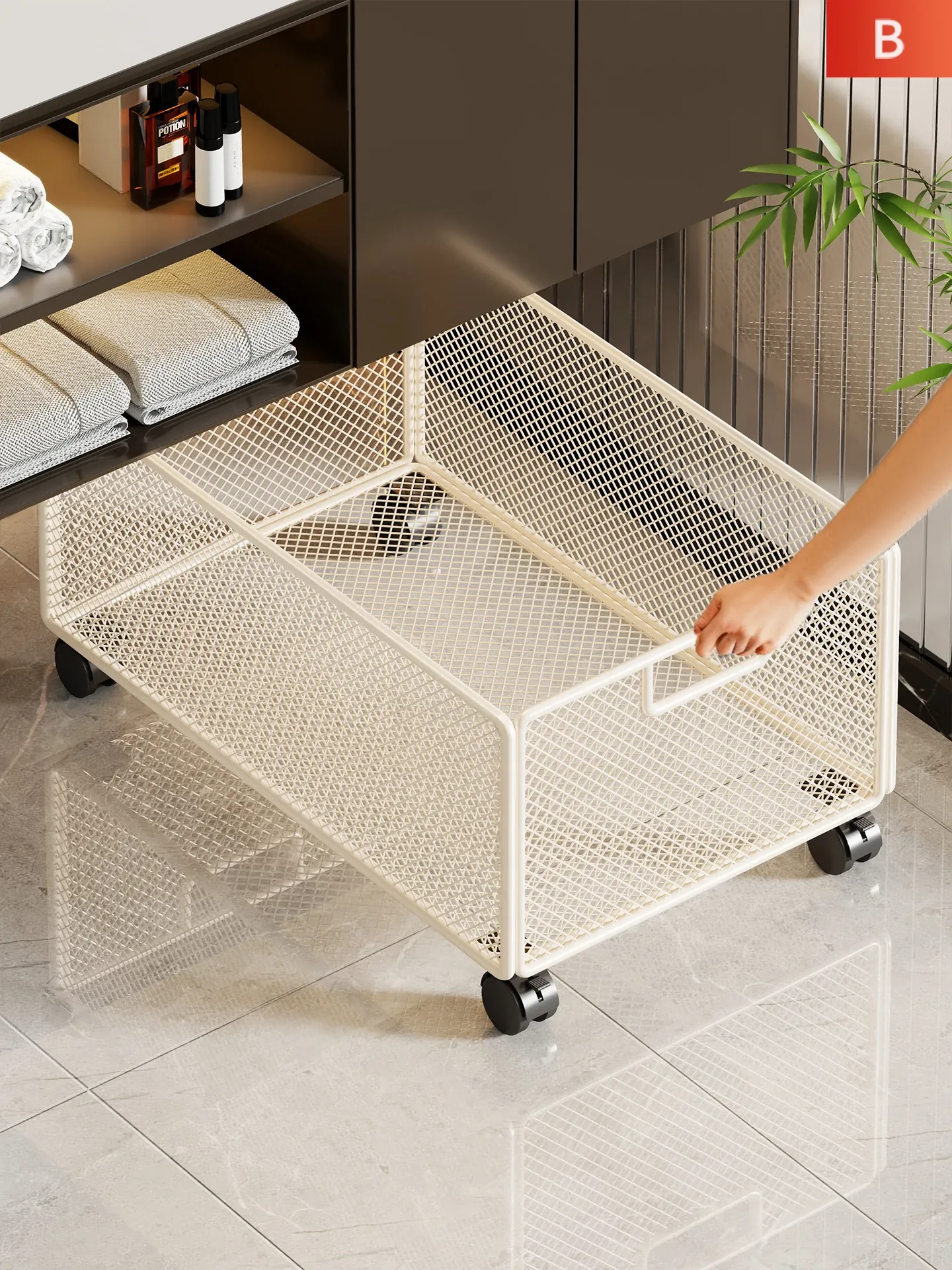 Movable Laundry Basket Under Sink - Stylish Bathroom Cabinet Dirty Clothes Storage Bin - Convenient Organizer for Bathroom Vanity and Laundry Room
