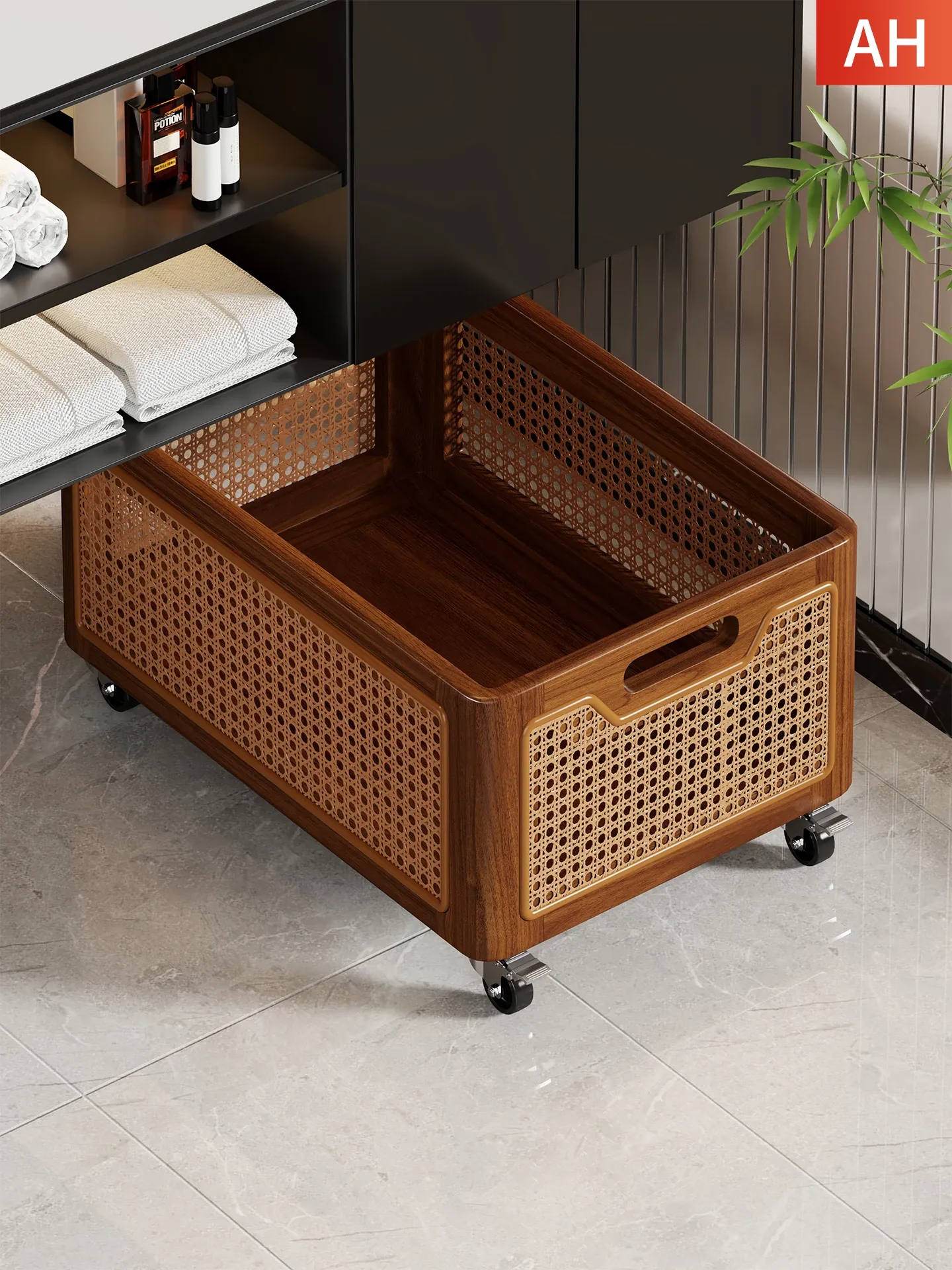 Large Capacity Bathroom Laundry Basket with Wheels - Stylish Under-Sink Storage Solution for Dirty Clothes, Perfect for Space-Saving in Toilets and Vanity Areas