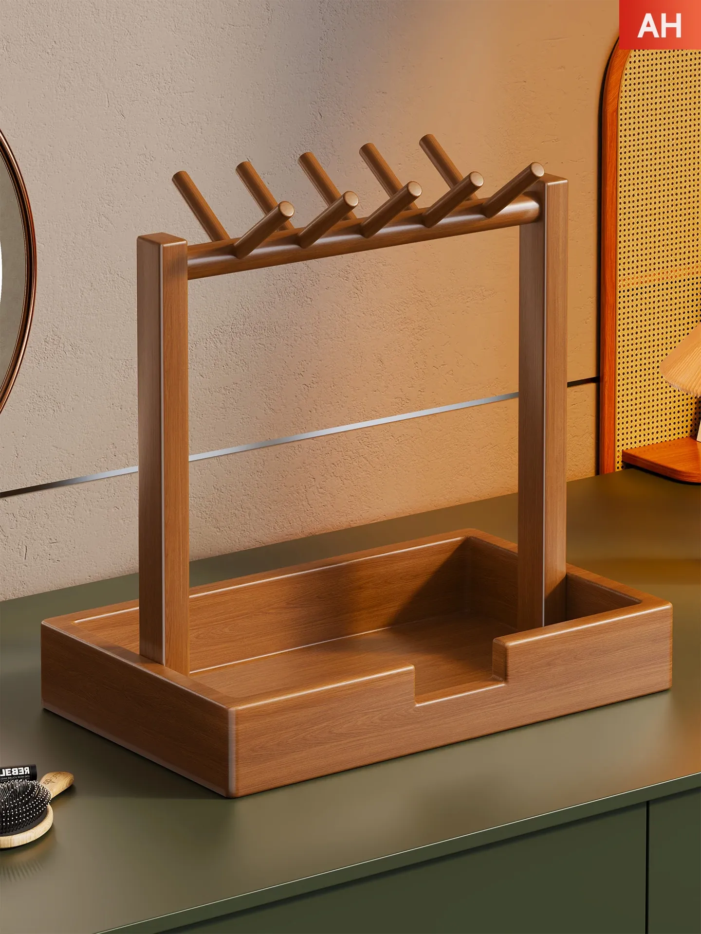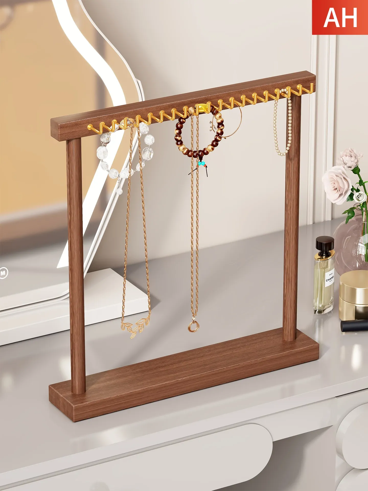 Elegant Wooden Jewelry Organizer Display Stand for Necklaces, Bracelets, and Keys - Perfect Desktop Storage Solution for Your Entryway Décor