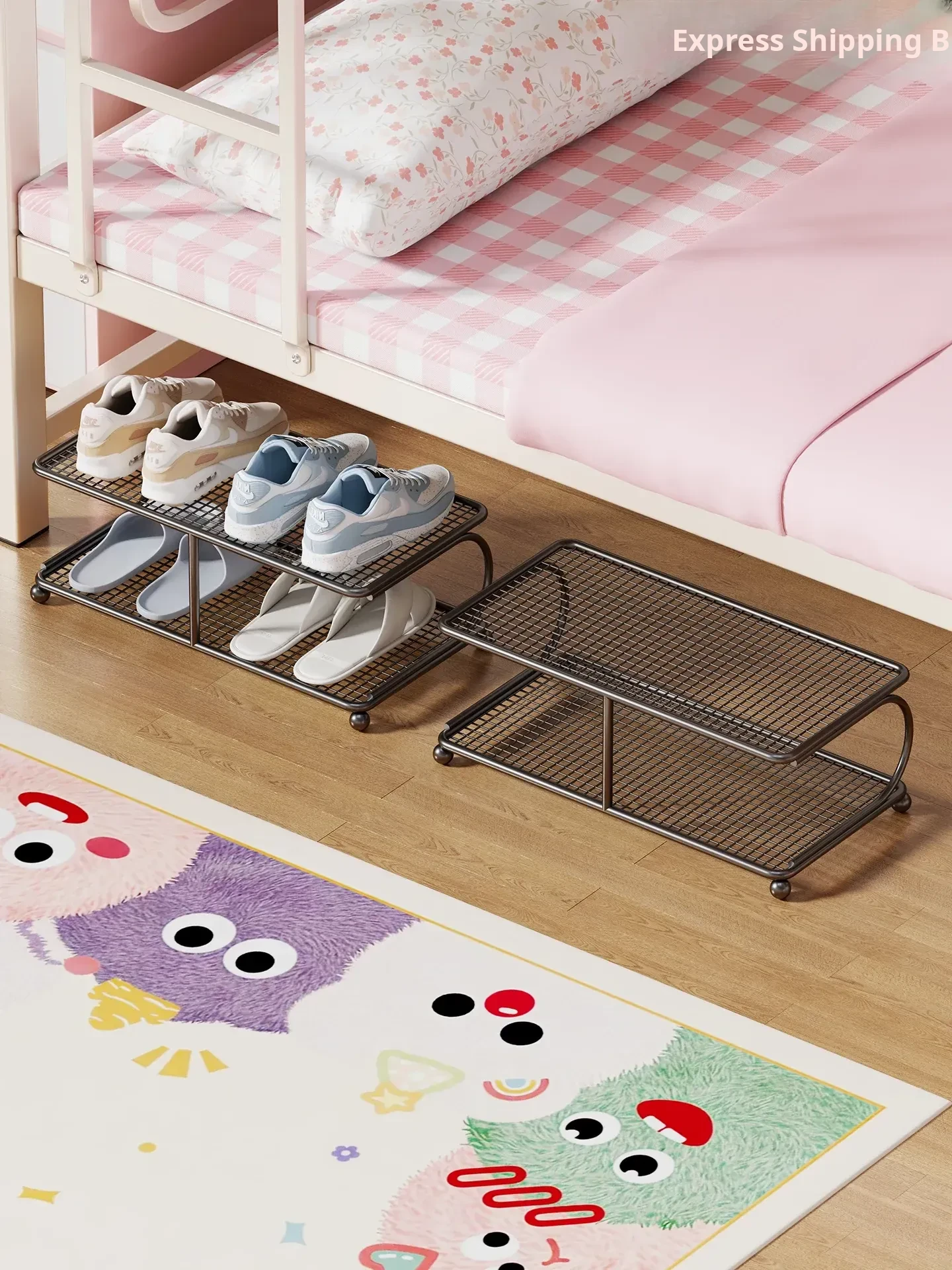 Underbed Shoe Storage Rack for Dormitory - Space-Saving Layered Shoe Organizer for College Students, Compact Shoe Cabinet for Slippers and Footwear