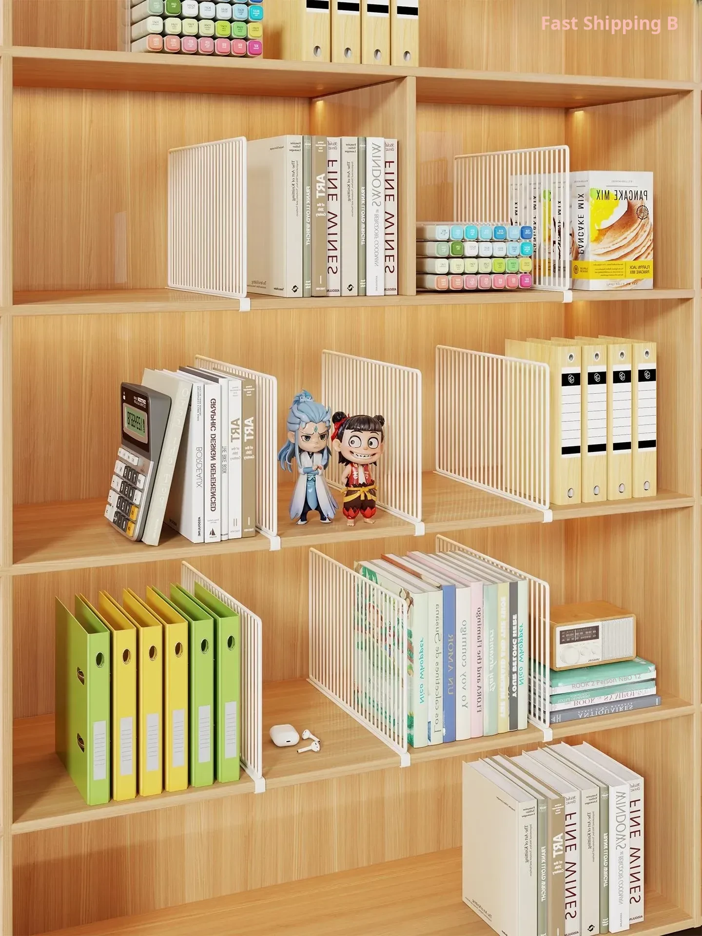 Multi-Section Bookshelf Dividers - Organize and Categorize Your Books and Documents with This Vertical Cabinet Space Utilization Solution! Perfect for Neat and Efficient Storage.