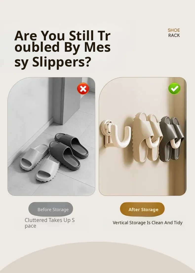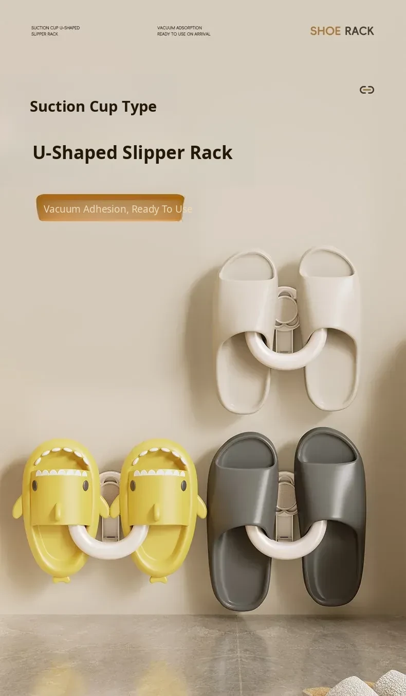 Bathroom Suction Cup Slippers Rack - Wall-Mounted Draining Hook for Toilets, No Drilling Needed, Perfect for Organizing Shoes and Keeping Your Space Tidy!