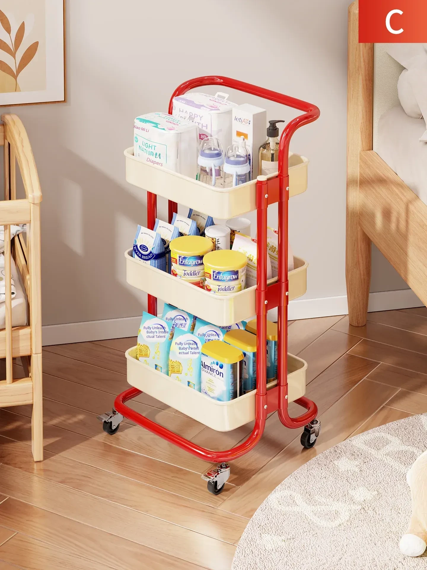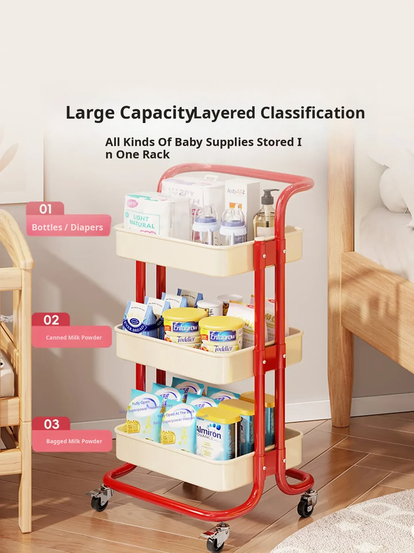 Dopamine Multi-Layer Storage Rack - Versatile Floor Organizer & Portable Trolley for Baby Bottles and Baby Food Essentials - Perfect for Easy Access and Stylish Organization