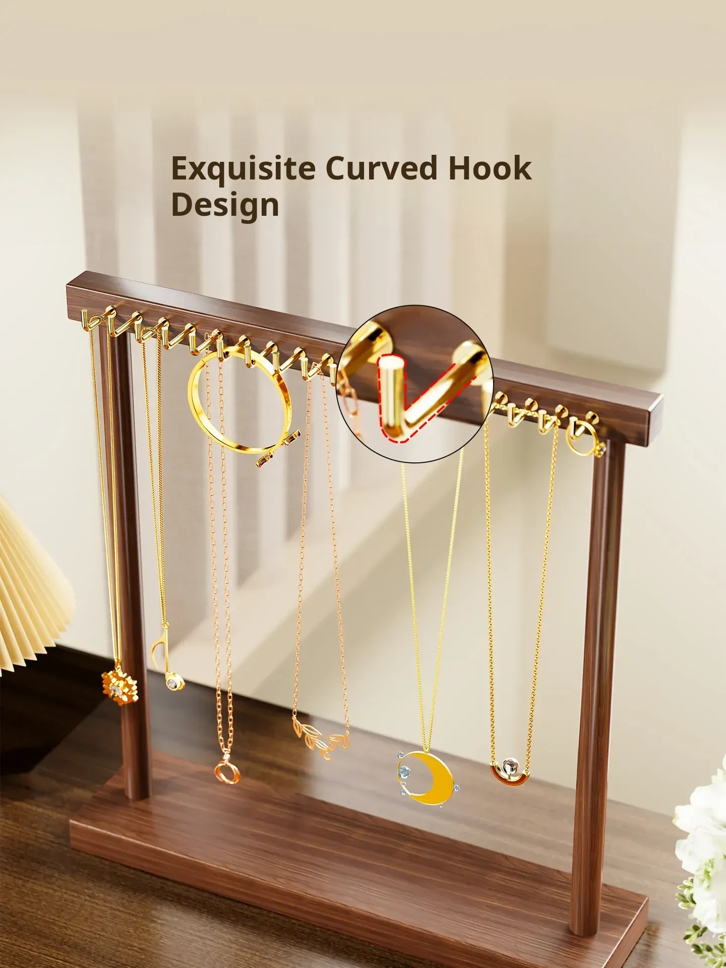 Elegant Jewelry Display Stand - Desktop Necklace Organizer, Crystal Bracelet Holder, and Gold Accessory Storage Rack for Stunning Showcase and Clutter-Free Elegance.