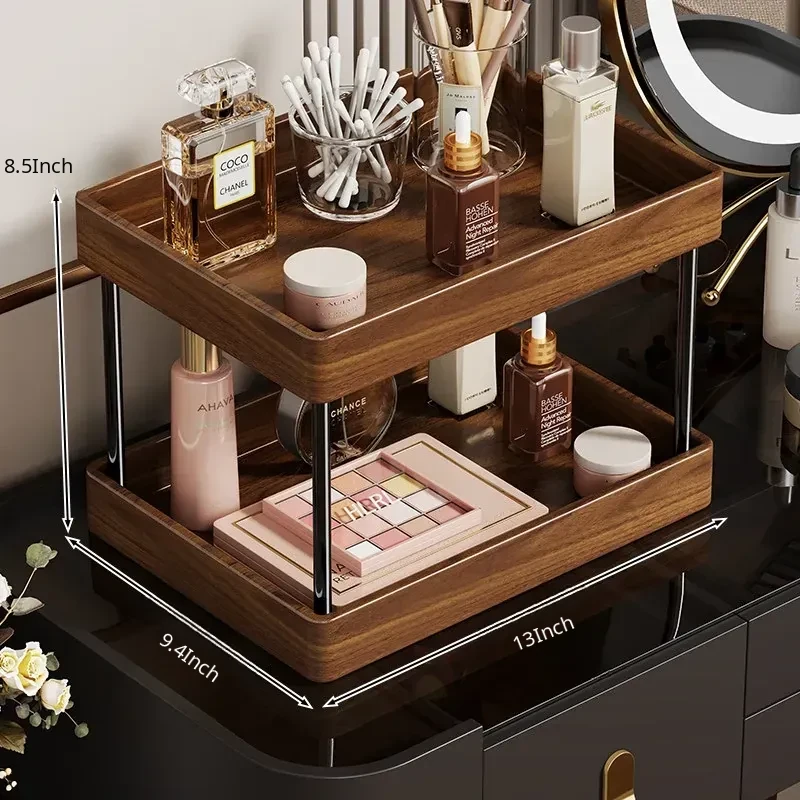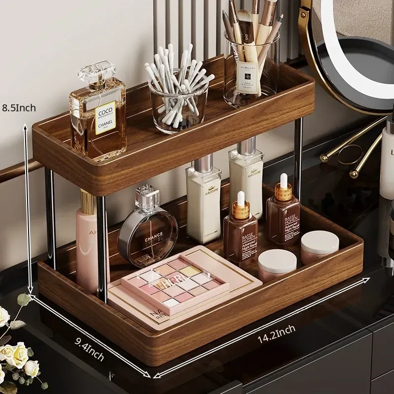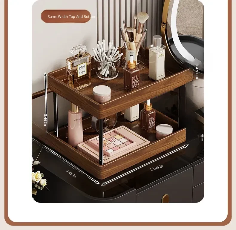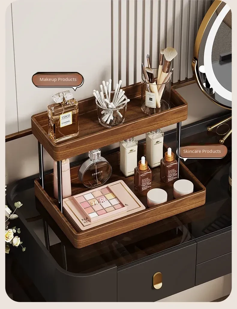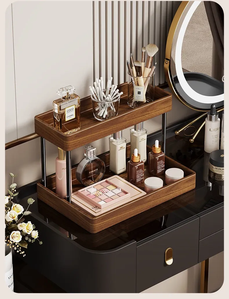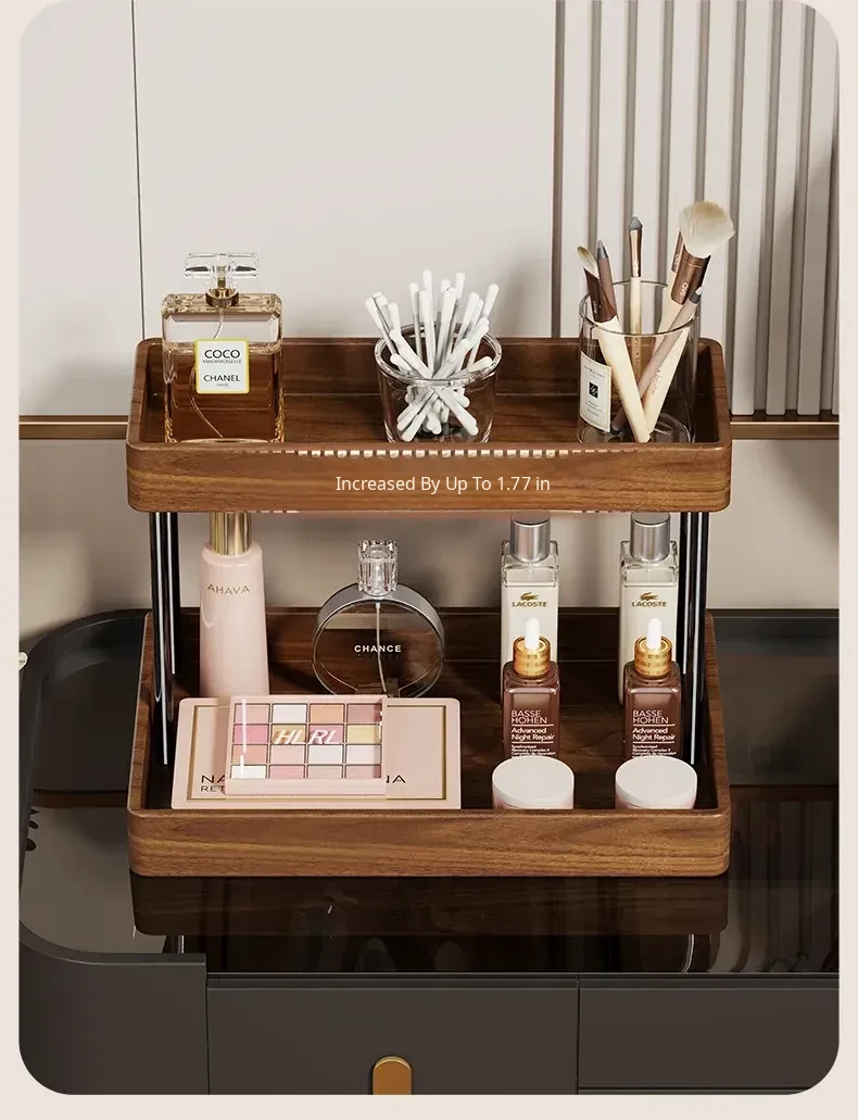 Elegant Solid Wood Cosmetic Organizer - Multi-Tiered Makeup Storage Box for Desktop, Perfect for Lipstick and Skincare Products, Ideal Vanity Accessory for a Stylish Touch.