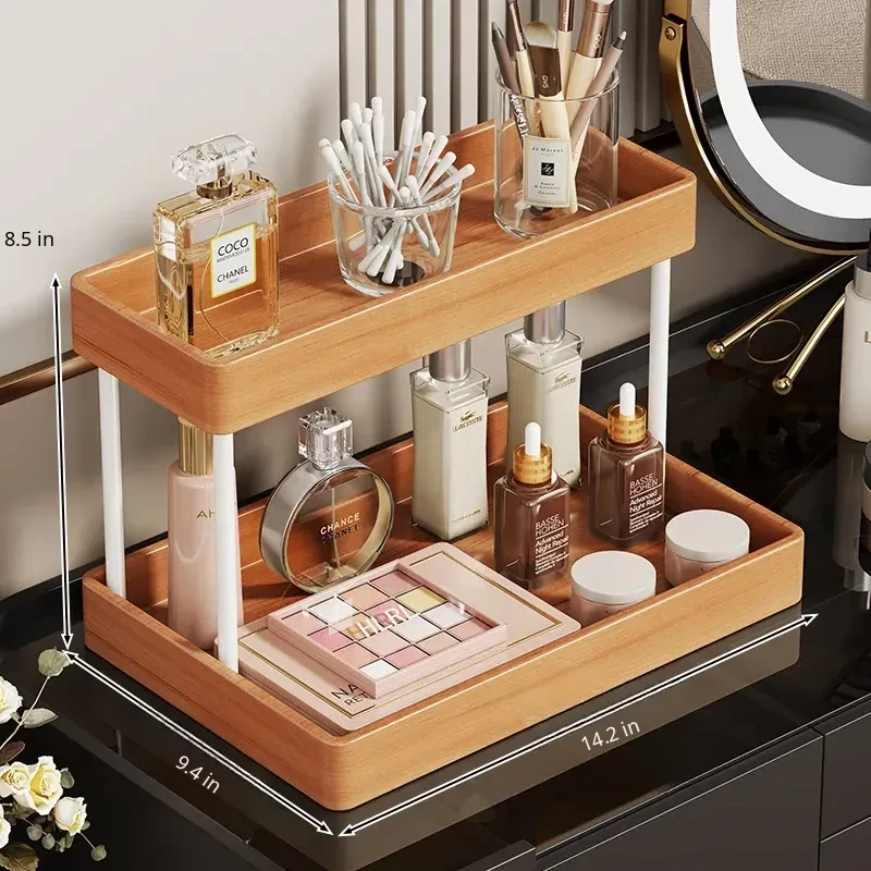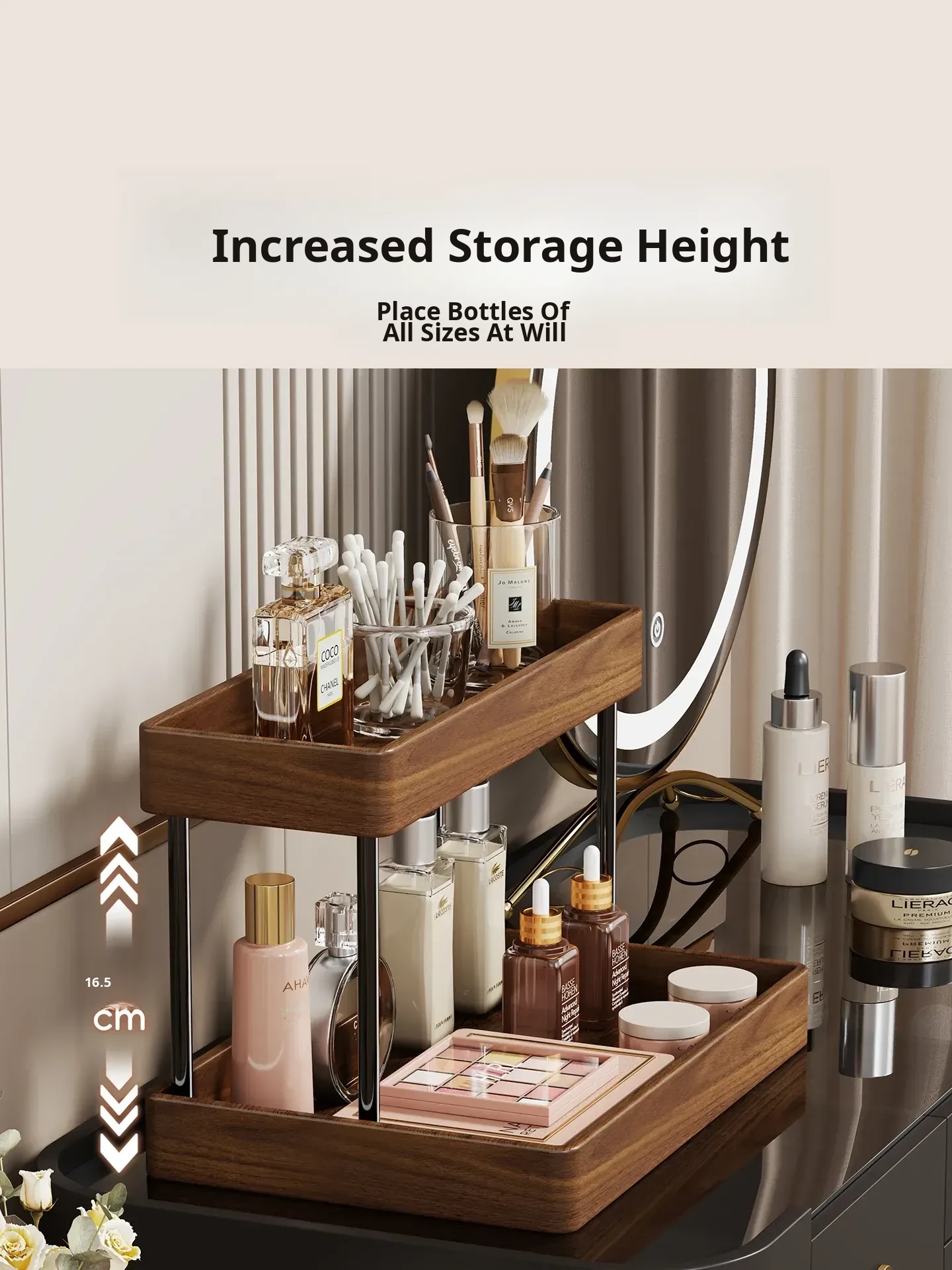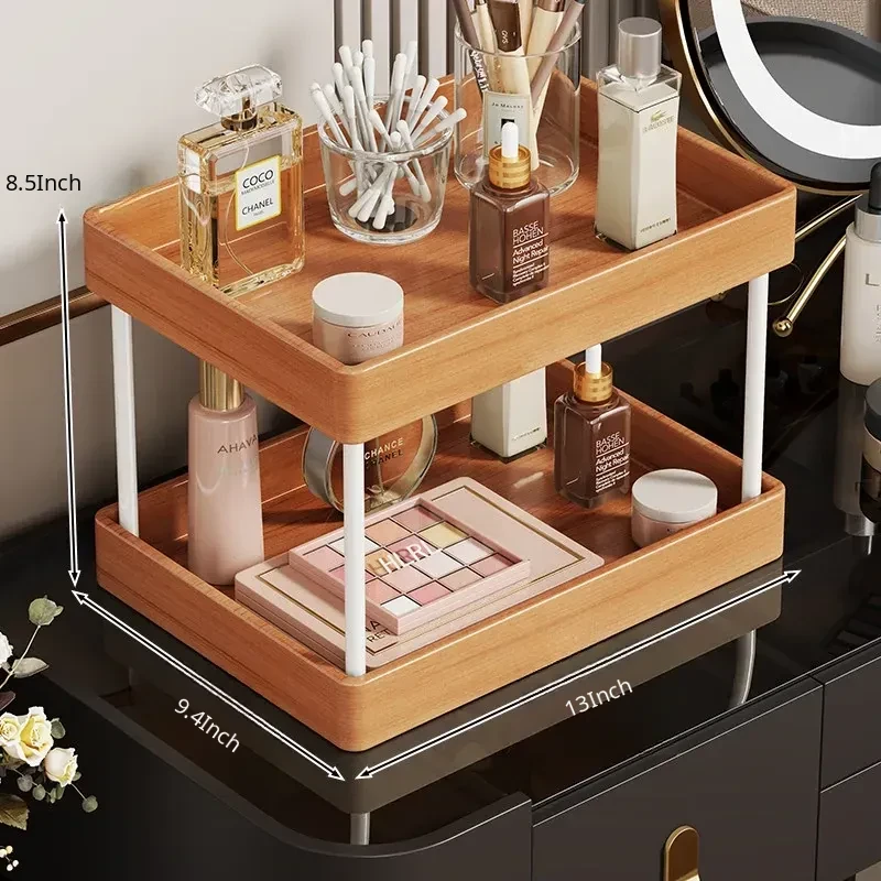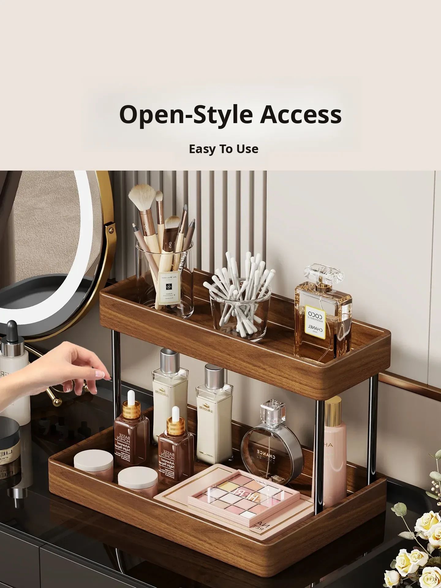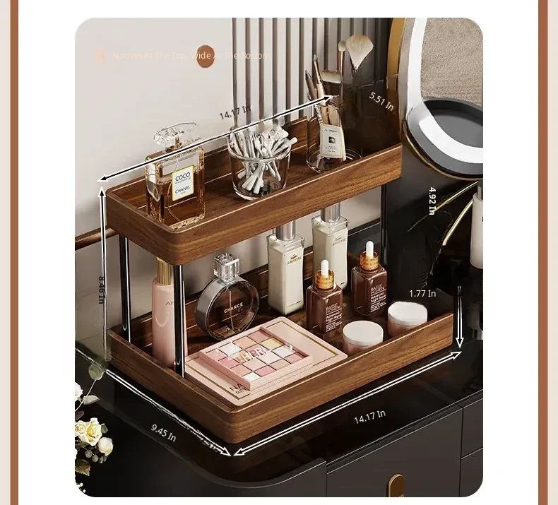 Elegant Solid Wood Cosmetic Organizer - Multi-Tiered Makeup Storage Box for Desktop, Perfect for Lipstick and Skincare Products, Ideal Vanity Accessory for a Stylish Touch.