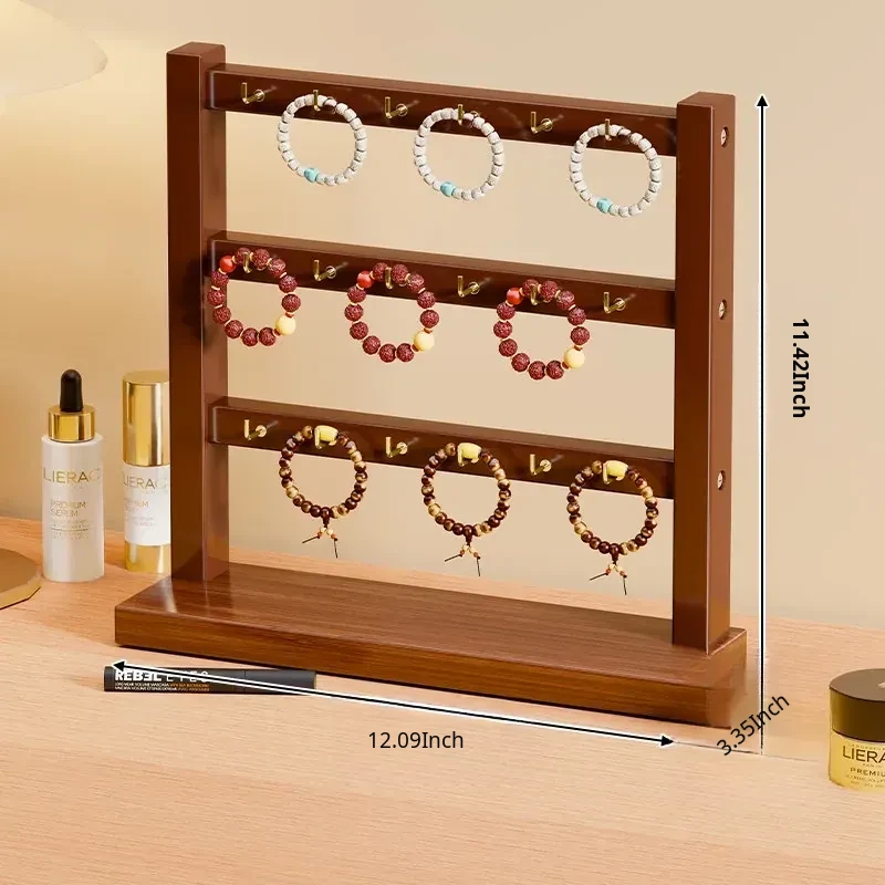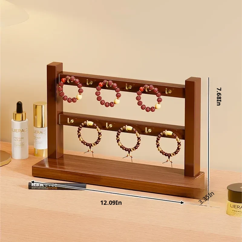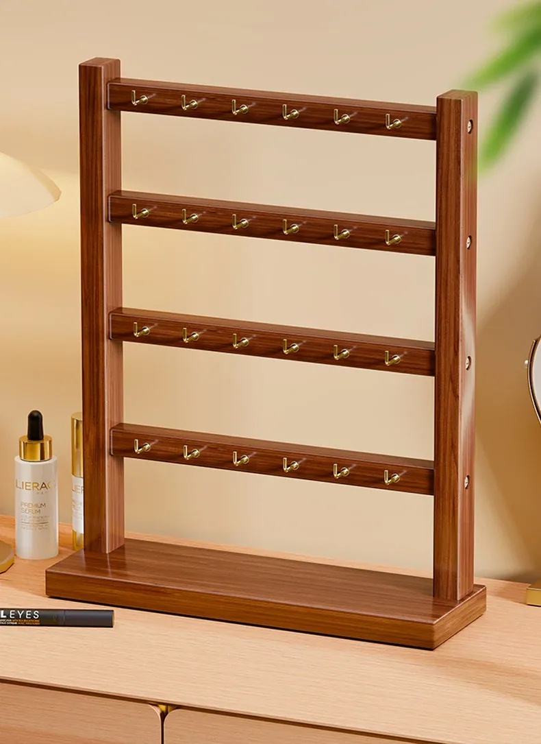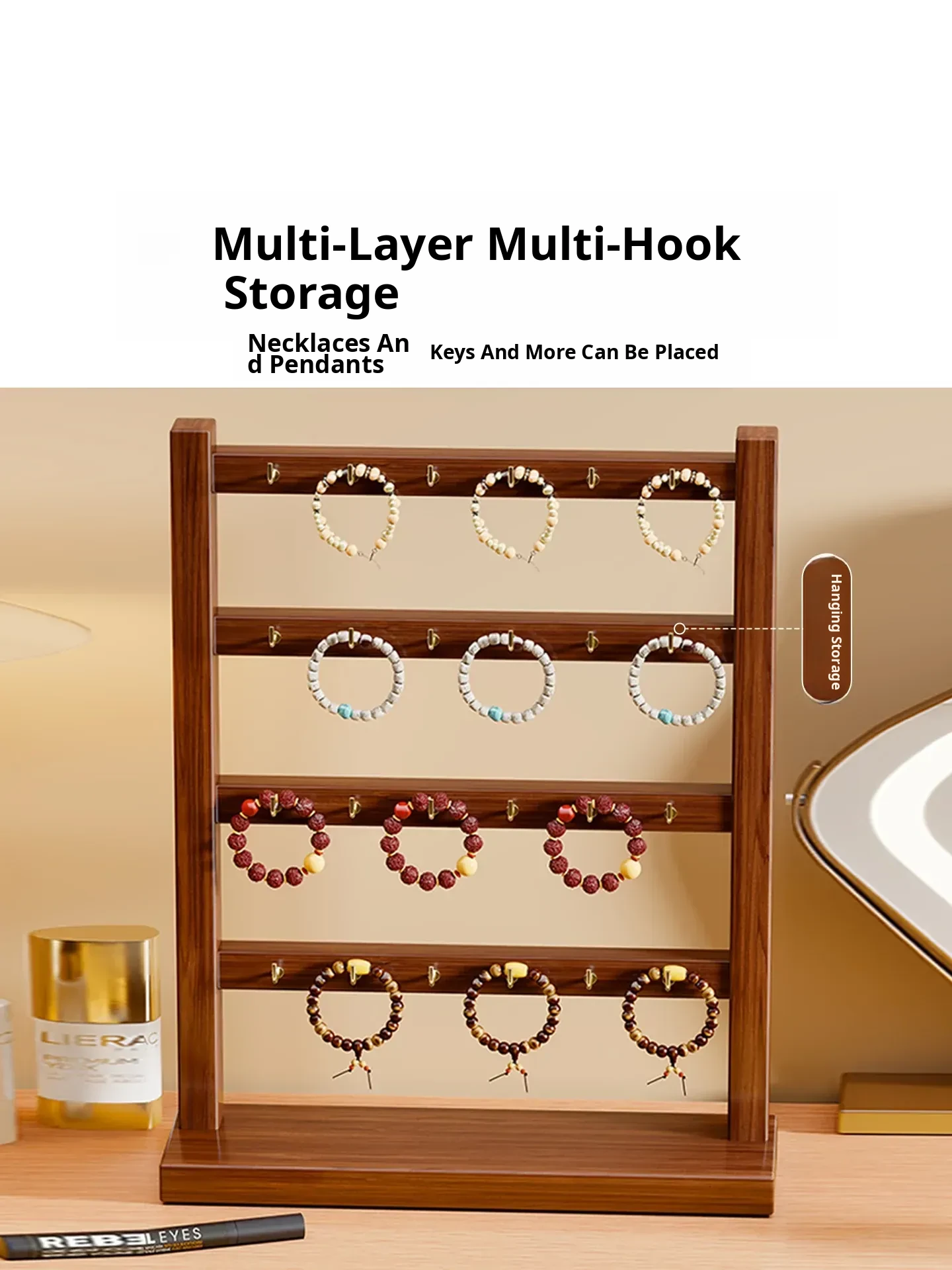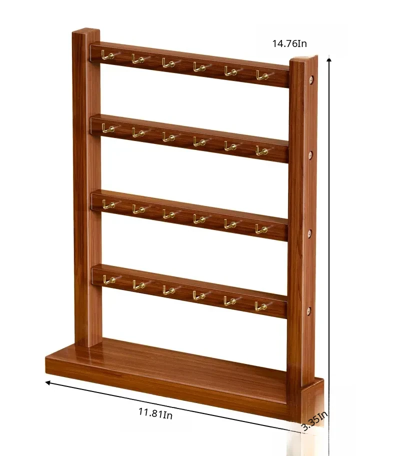 Elegant Wooden Jewelry Organizer Display Stand for Necklaces, Bracelets, and Keys - Perfect Desktop Storage Solution for Your Entryway Décor