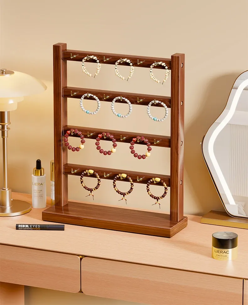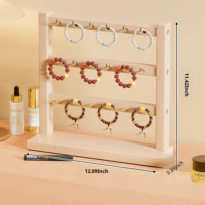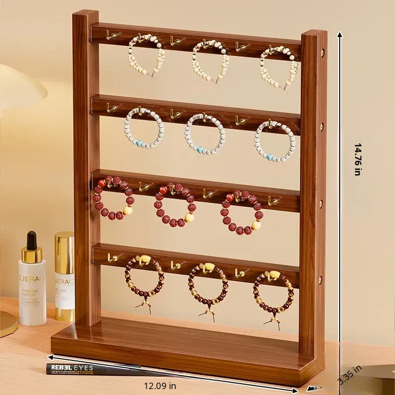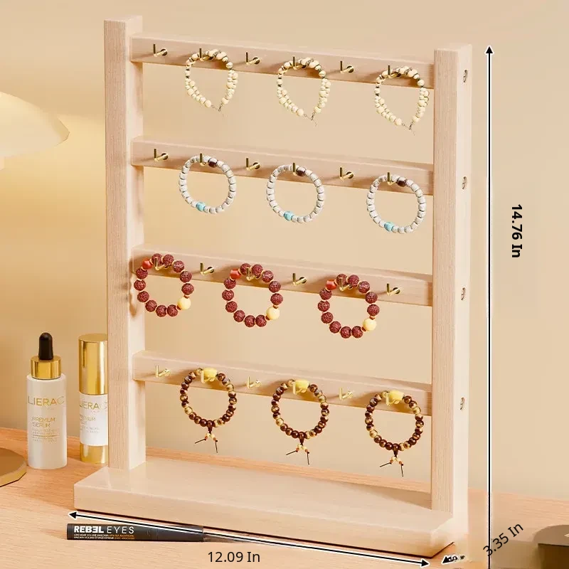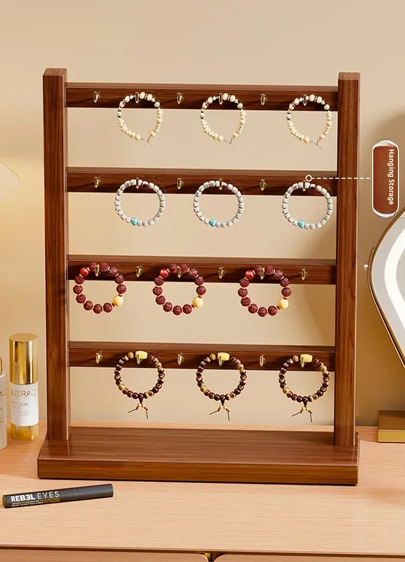 Elegant Wooden Jewelry Organizer Display Stand for Necklaces, Bracelets, and Keys - Perfect Desktop Storage Solution for Your Entryway Décor