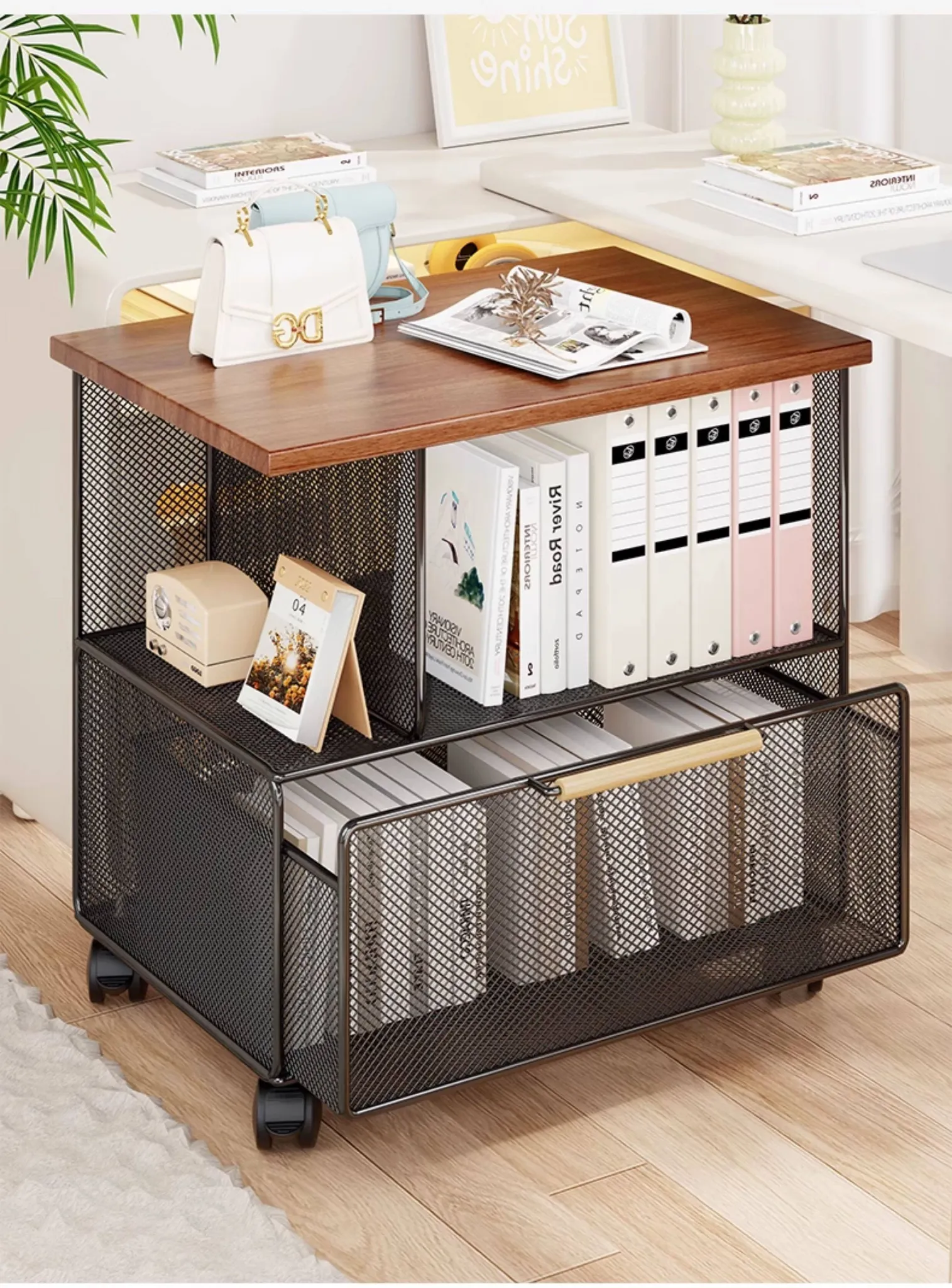 Mobile Floor Storage Rack for Office - Stylish and Simple Multi-Tier Organizer for Documents and Books - Perfect for Dorm Rooms and Efficient Space Management