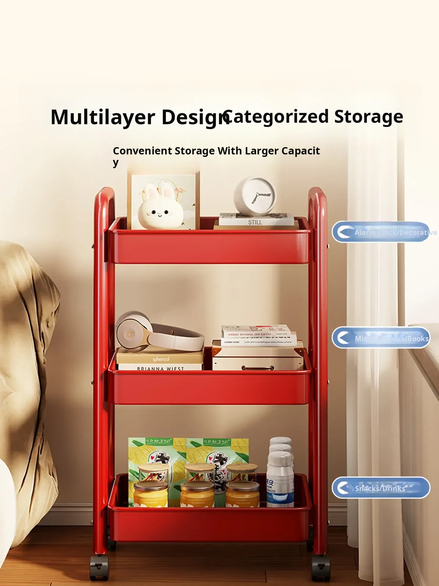 Multifunctional Rolling Snack Cart - 3-Tier Mobile Storage Rack for Bedroom and Living Room, Perfect for Organizing Toys and Snacks!