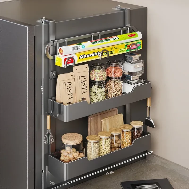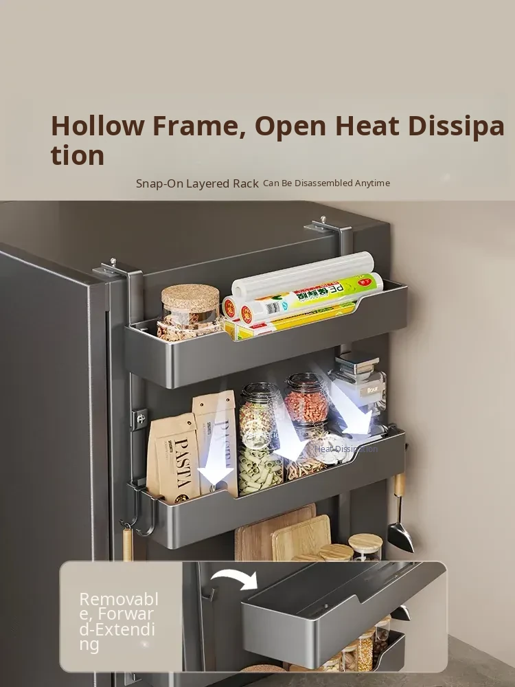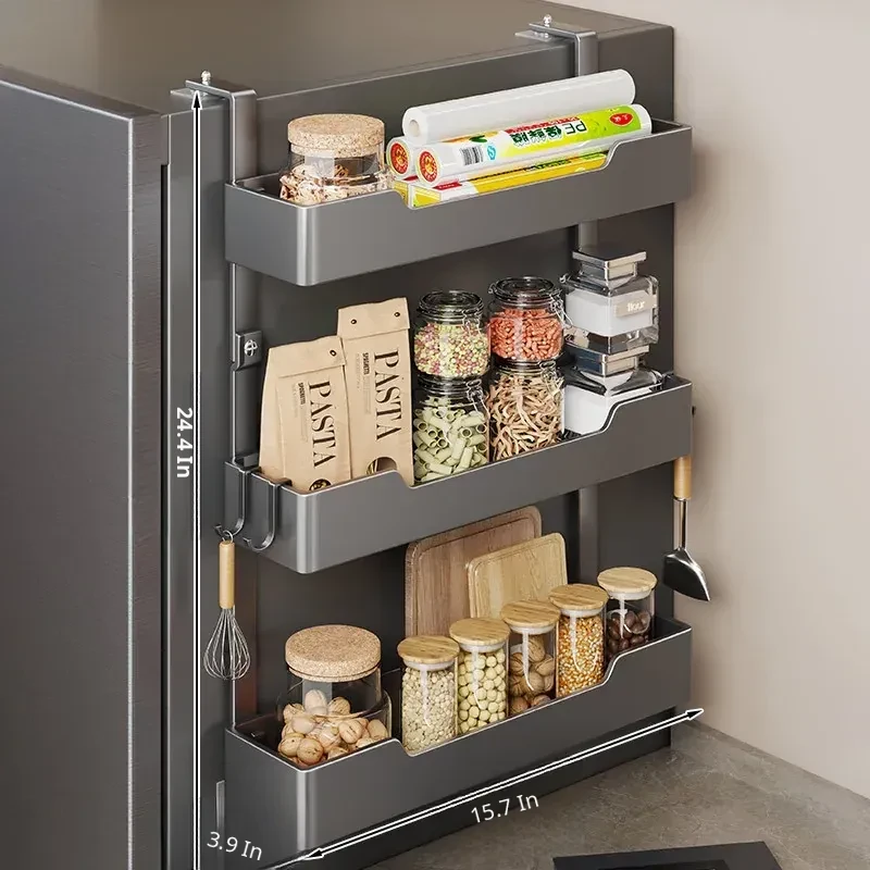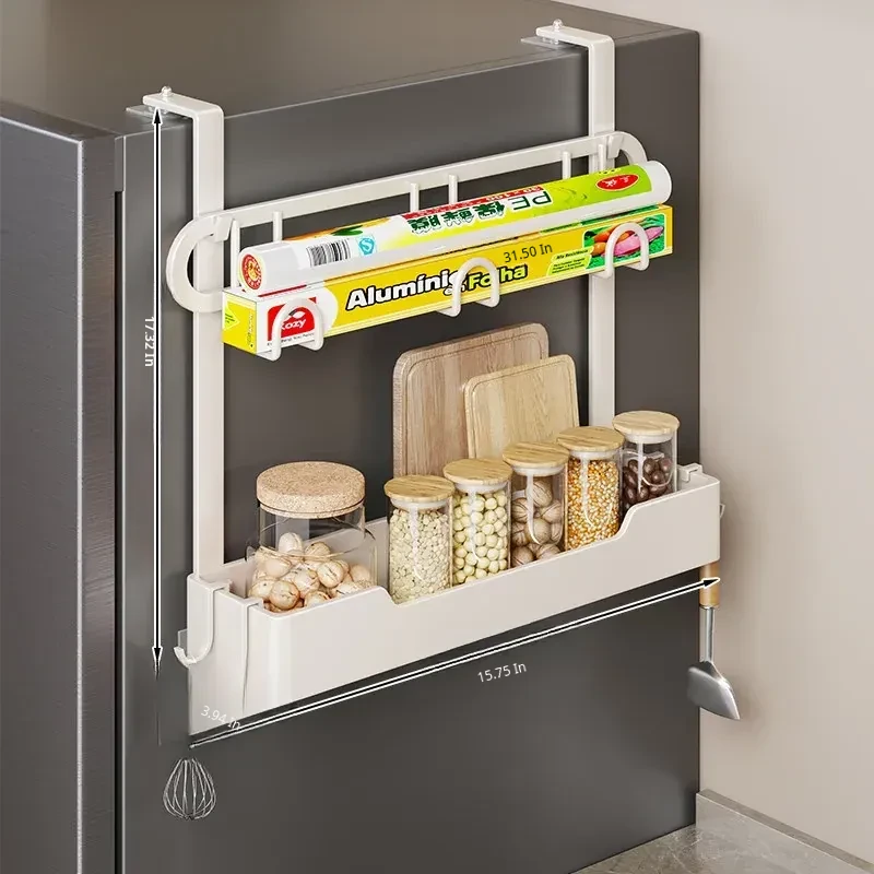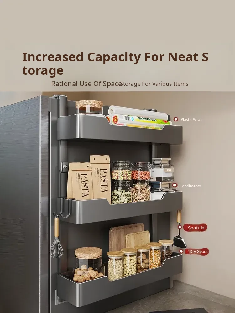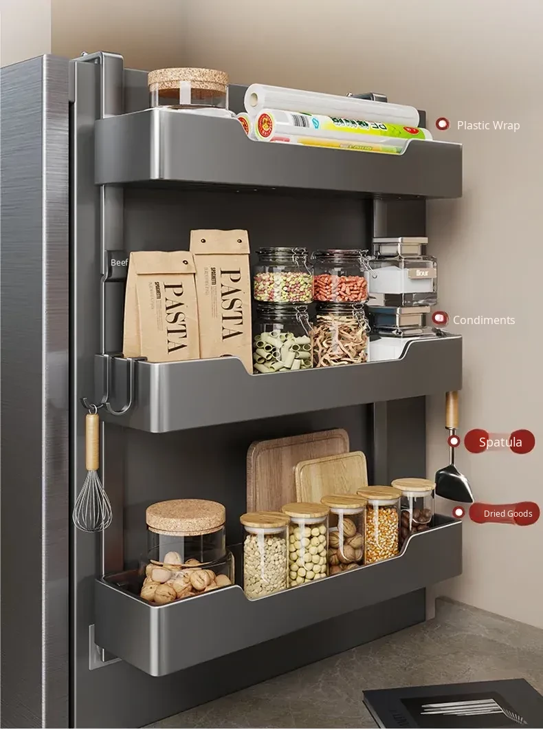 Multi-functional Wall-mounted Storage Rack for Kitchen - Versatile Side Shelf for Refrigerator, Ideal for Spices, Plastic Wrap, and Other Essentials - Space-saving and Stylish Design