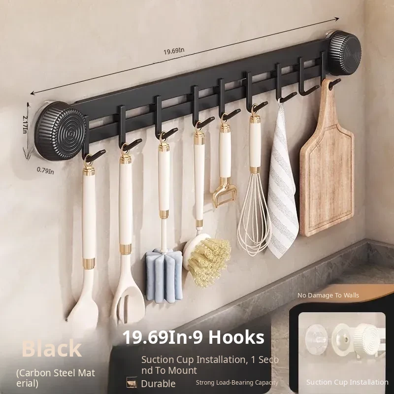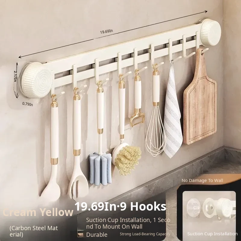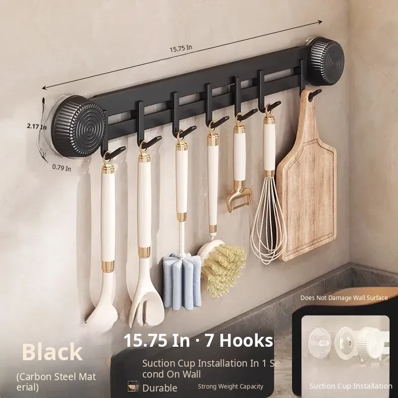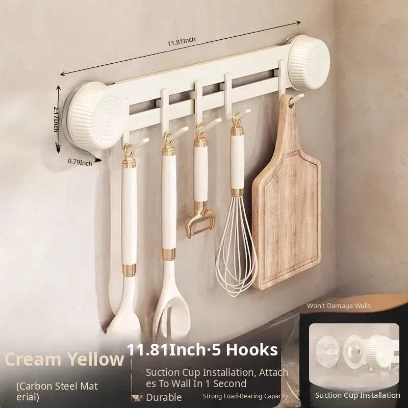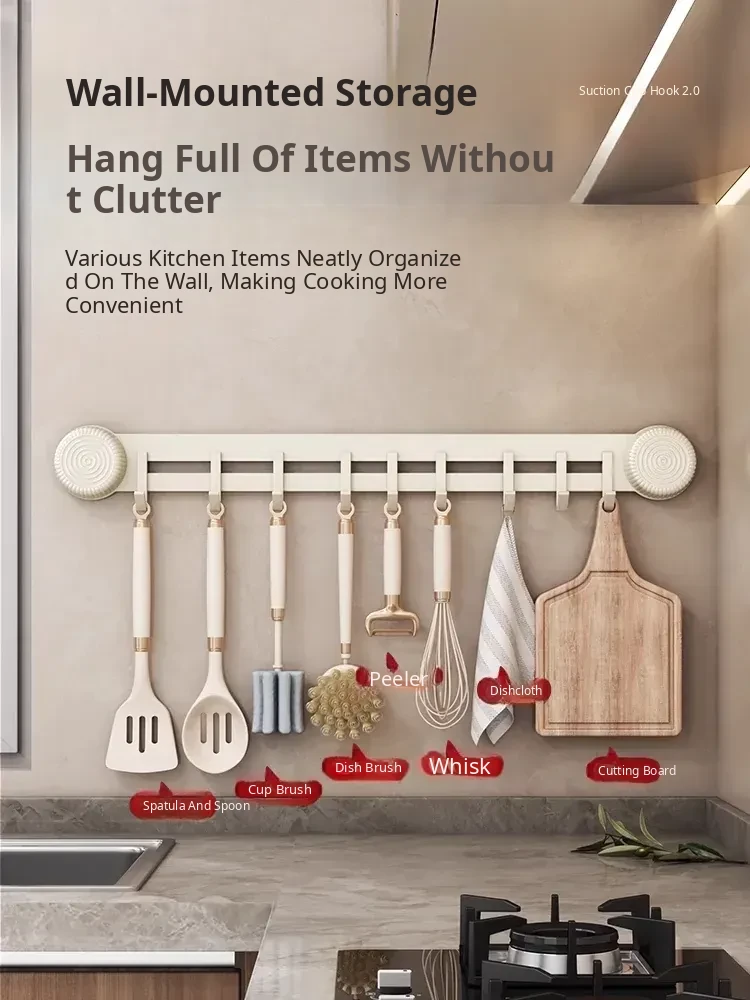 Multi-Functional Wall-Mounted Storage Rack with Suction Cups - No Drill Kitchen Hooks for Hanging Pots, Spoons, and Spatulas - Perfect Door-Mounted Organizer for a Clutter-Free Space!