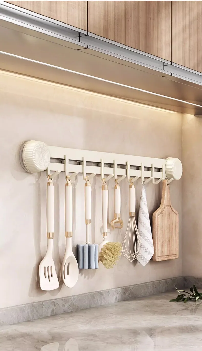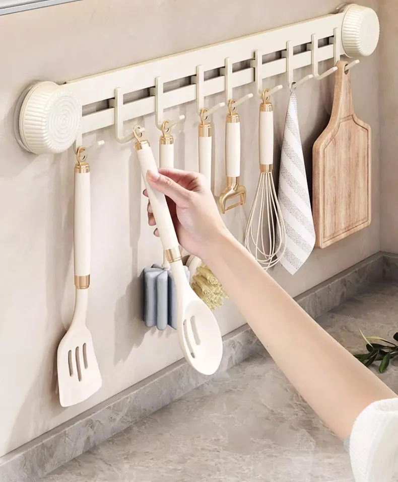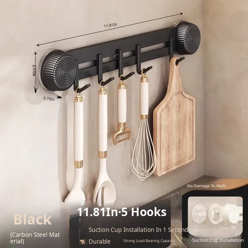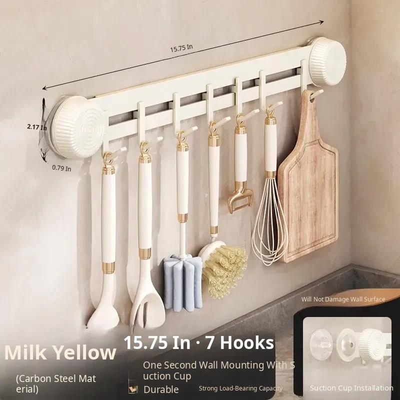 Multi-Functional Wall-Mounted Storage Rack with Suction Cups - No Drill Kitchen Hooks for Hanging Pots, Spoons, and Spatulas - Perfect Door-Mounted Organizer for a Clutter-Free Space!