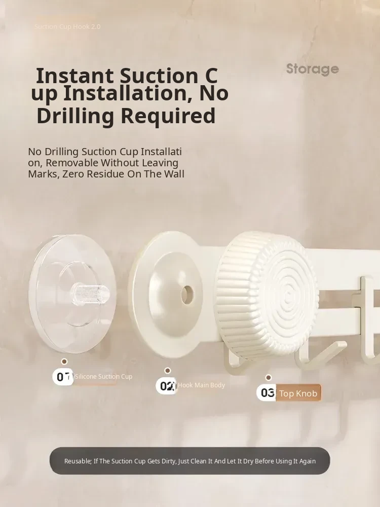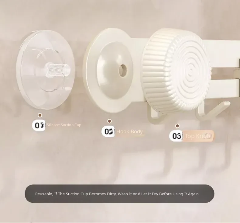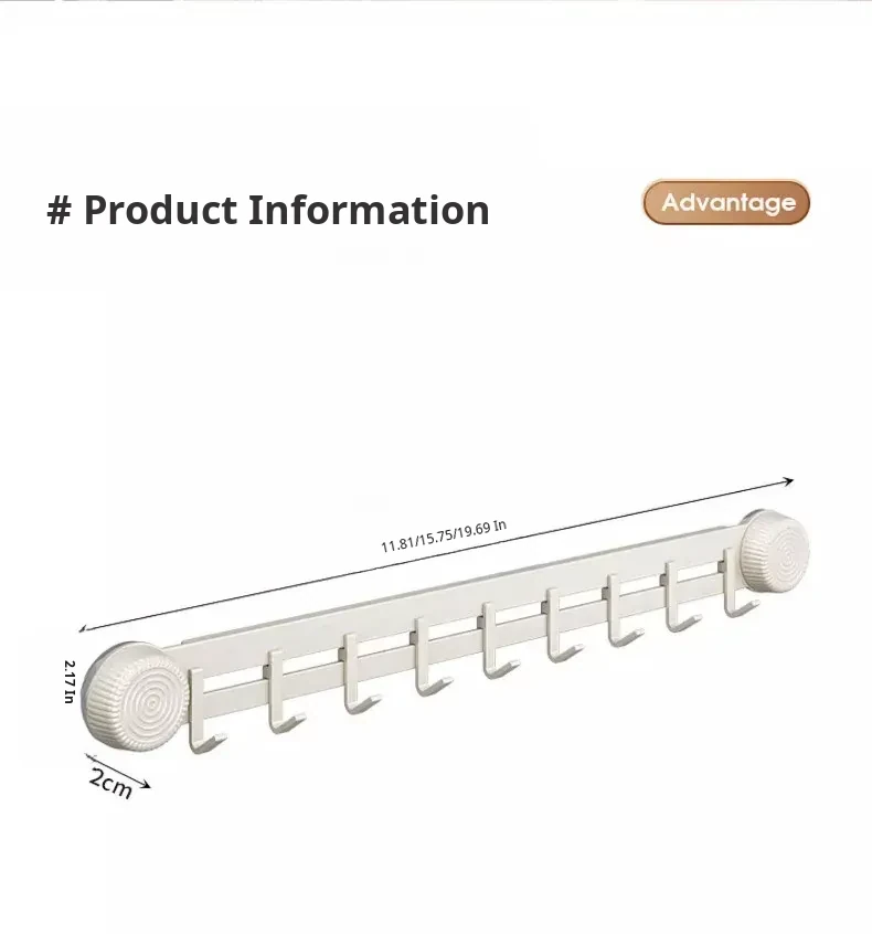 19.69in (9 Hooks, Removable) Suction Cup - Creamy White