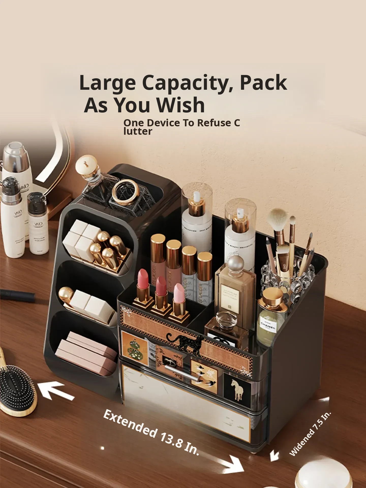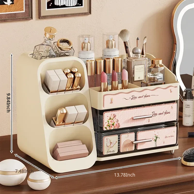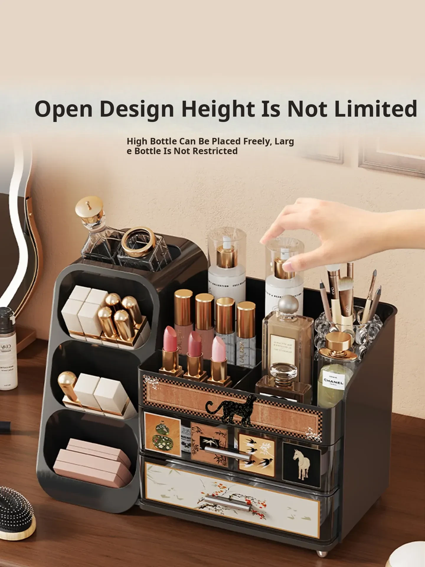 Multi-Layer Cosmetic Organizer - Stylish Desktop Makeup Storage with Drawers for Skincare, Perfume, and Lipstick - Perfect Vanity Solution for a Clutter-Free Beauty Routine!