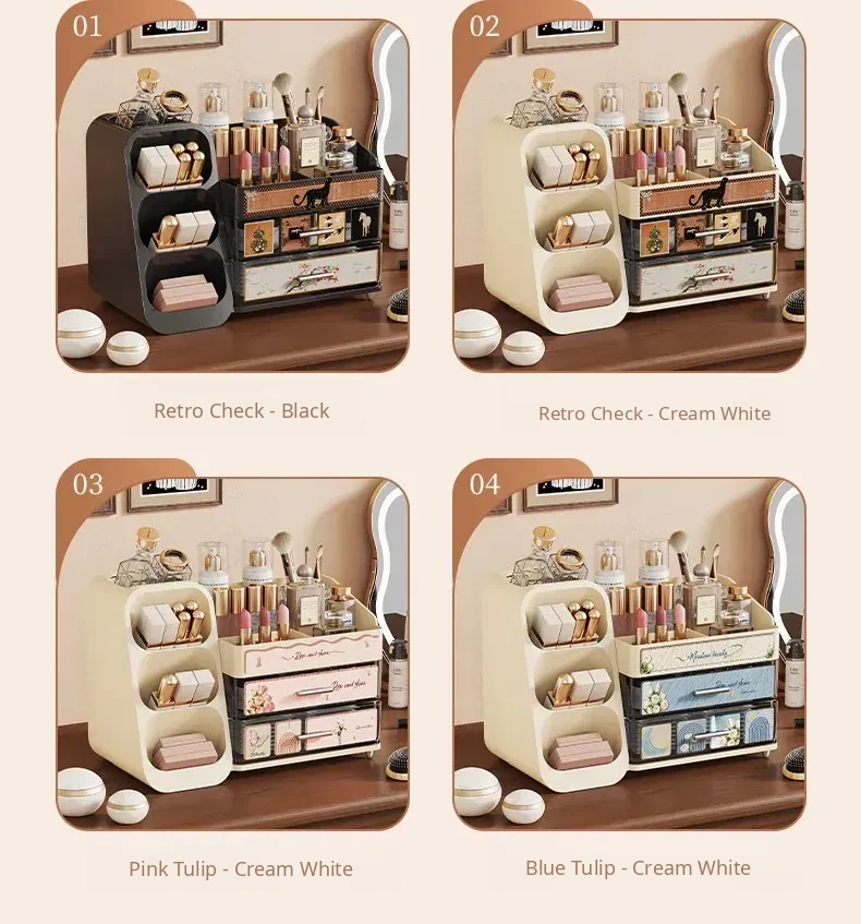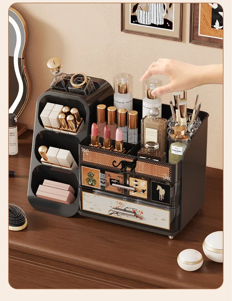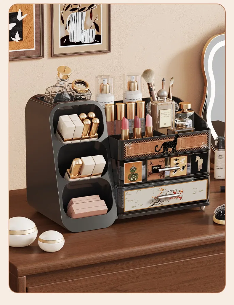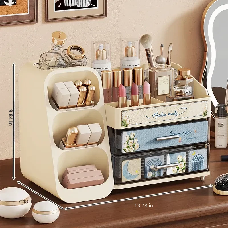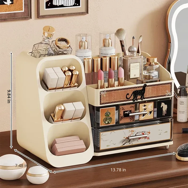 Multi-Layer Cosmetic Organizer - Stylish Desktop Makeup Storage with Drawers for Skincare, Perfume, and Lipstick - Perfect Vanity Solution for a Clutter-Free Beauty Routine!