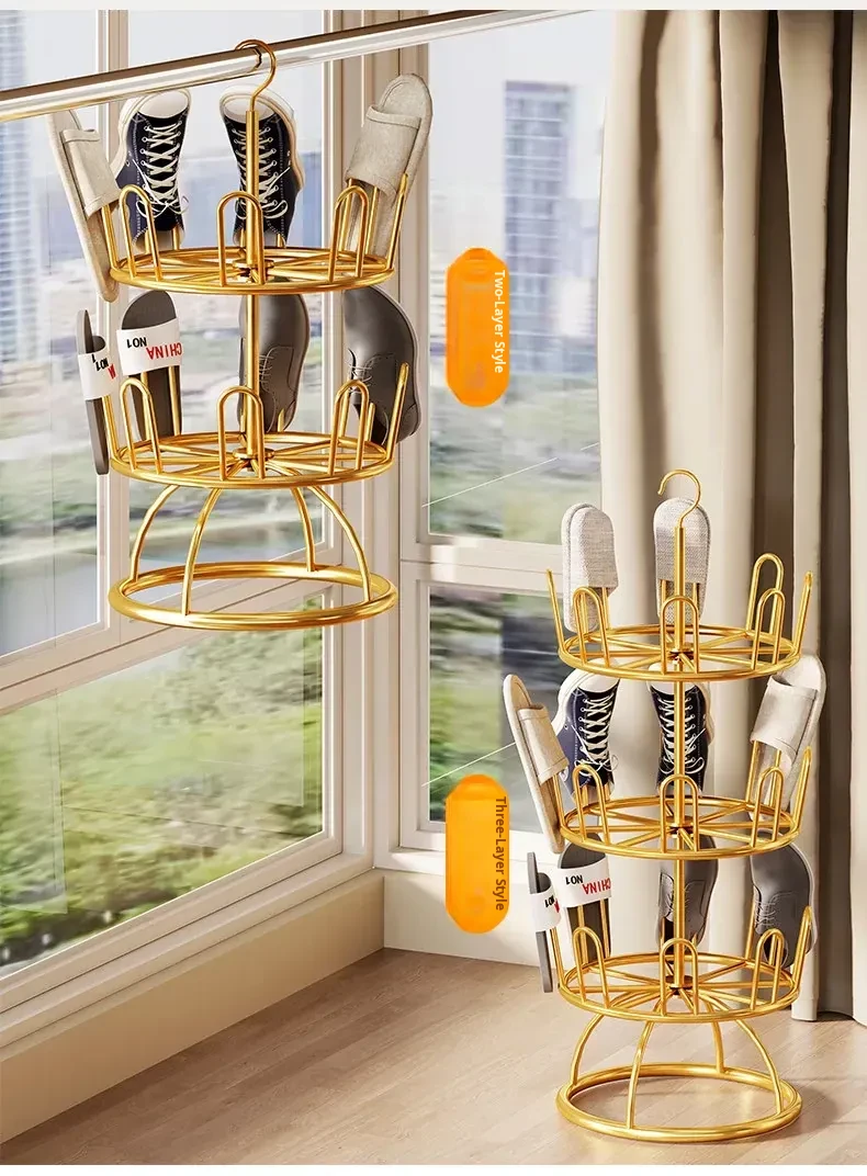 Multi-Layer Outdoor Shoe Drying Rack - Versatile Freestanding Shoe Hanger for Balcony, Easy Home Use with Draining Hooks and Sturdy Support