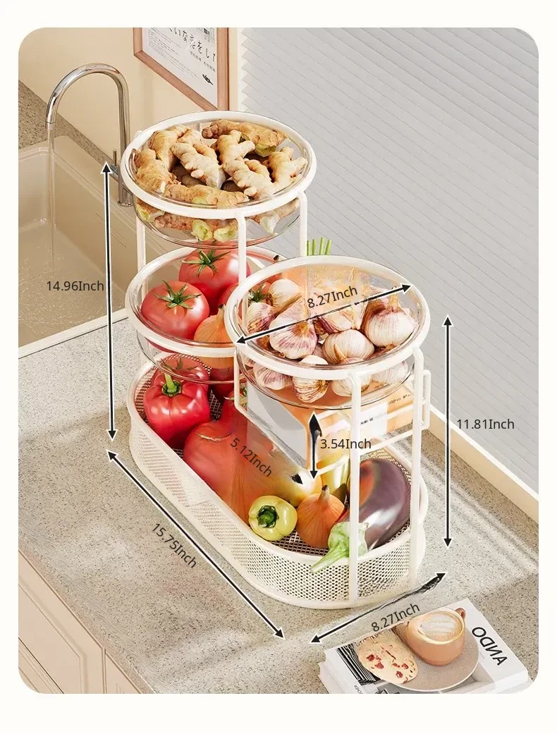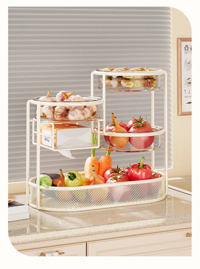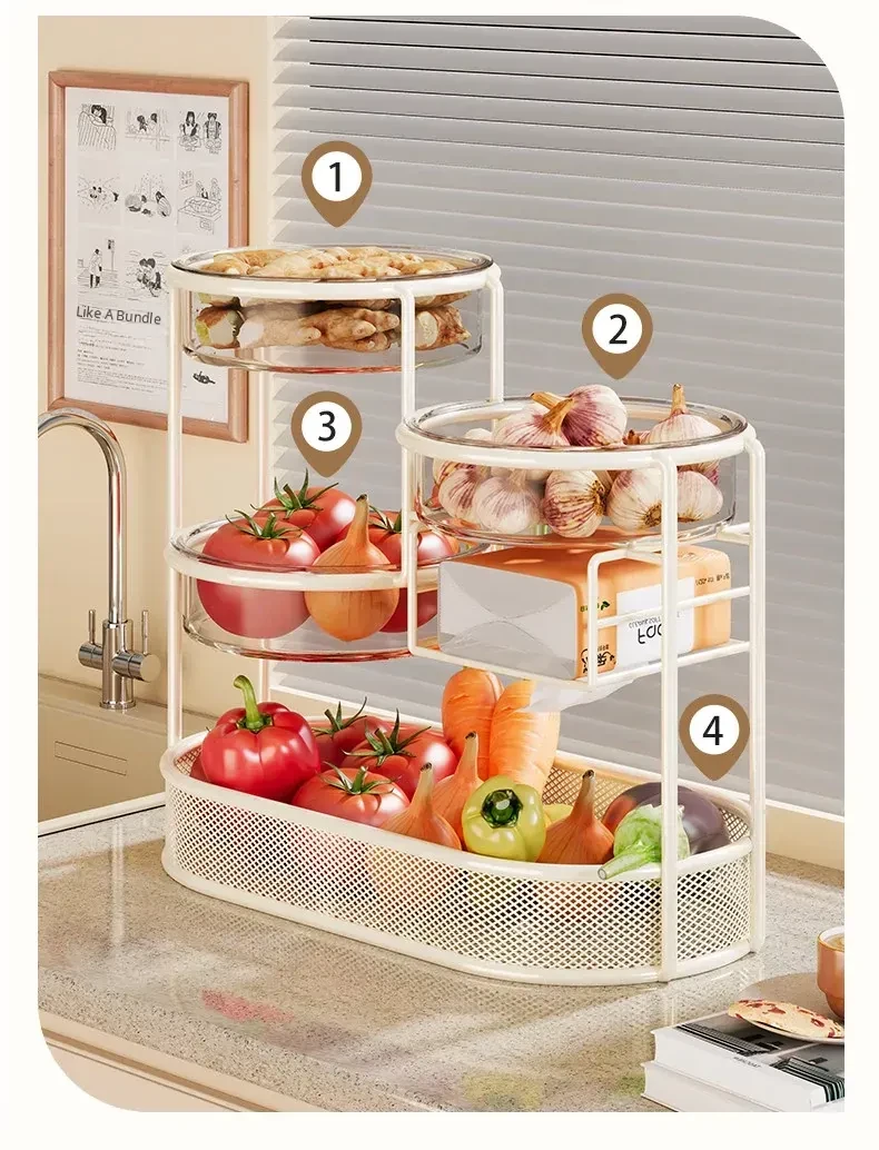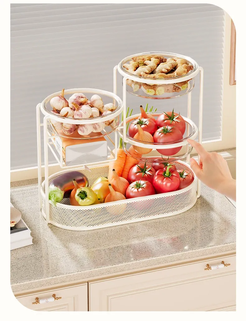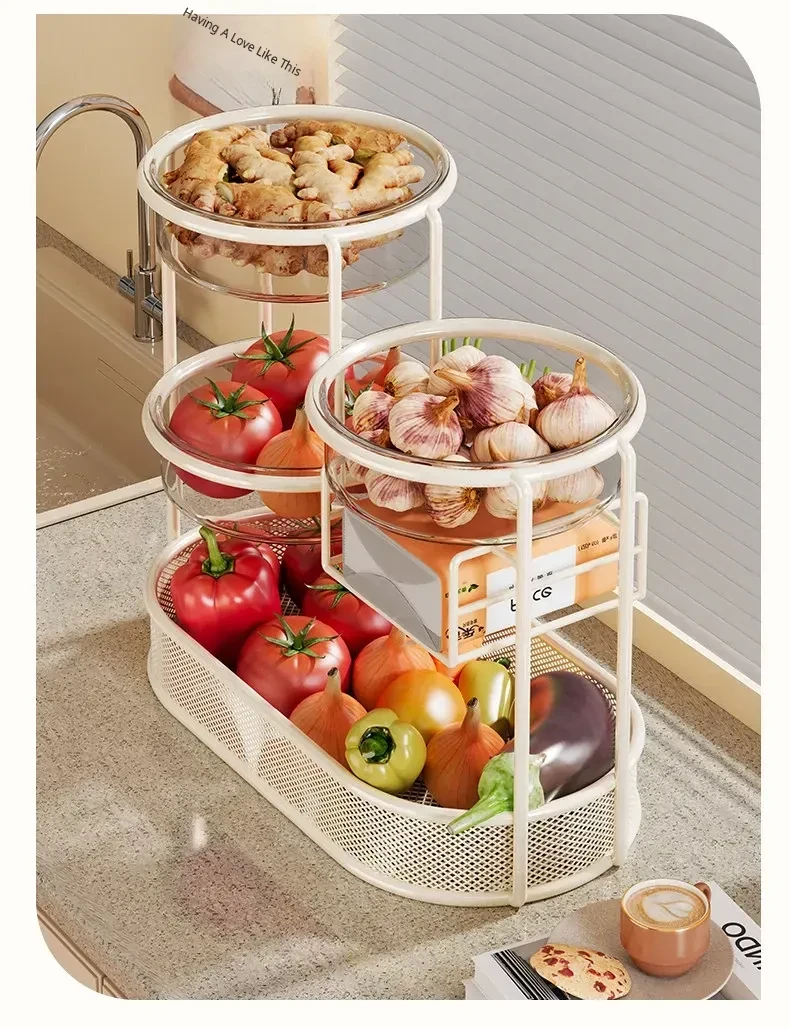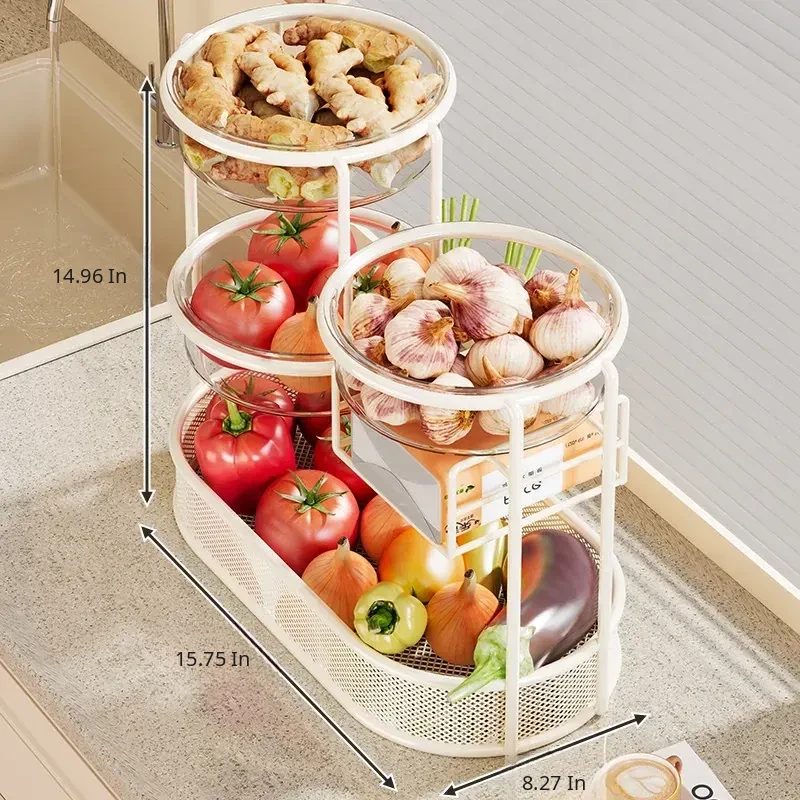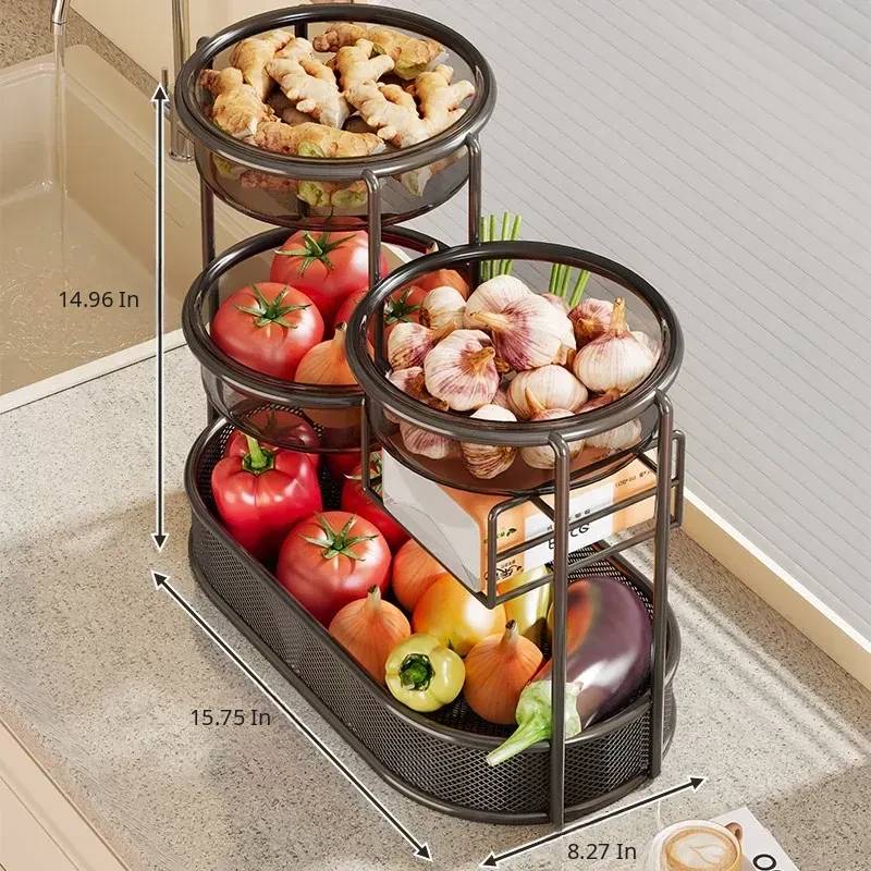 Multi-Tiered Kitchen Storage Rack - Versatile Vegetable and Fruit Basket for Countertop Organization - Perfect for Fresh Produce Display and Easy Access to Your Favorites!