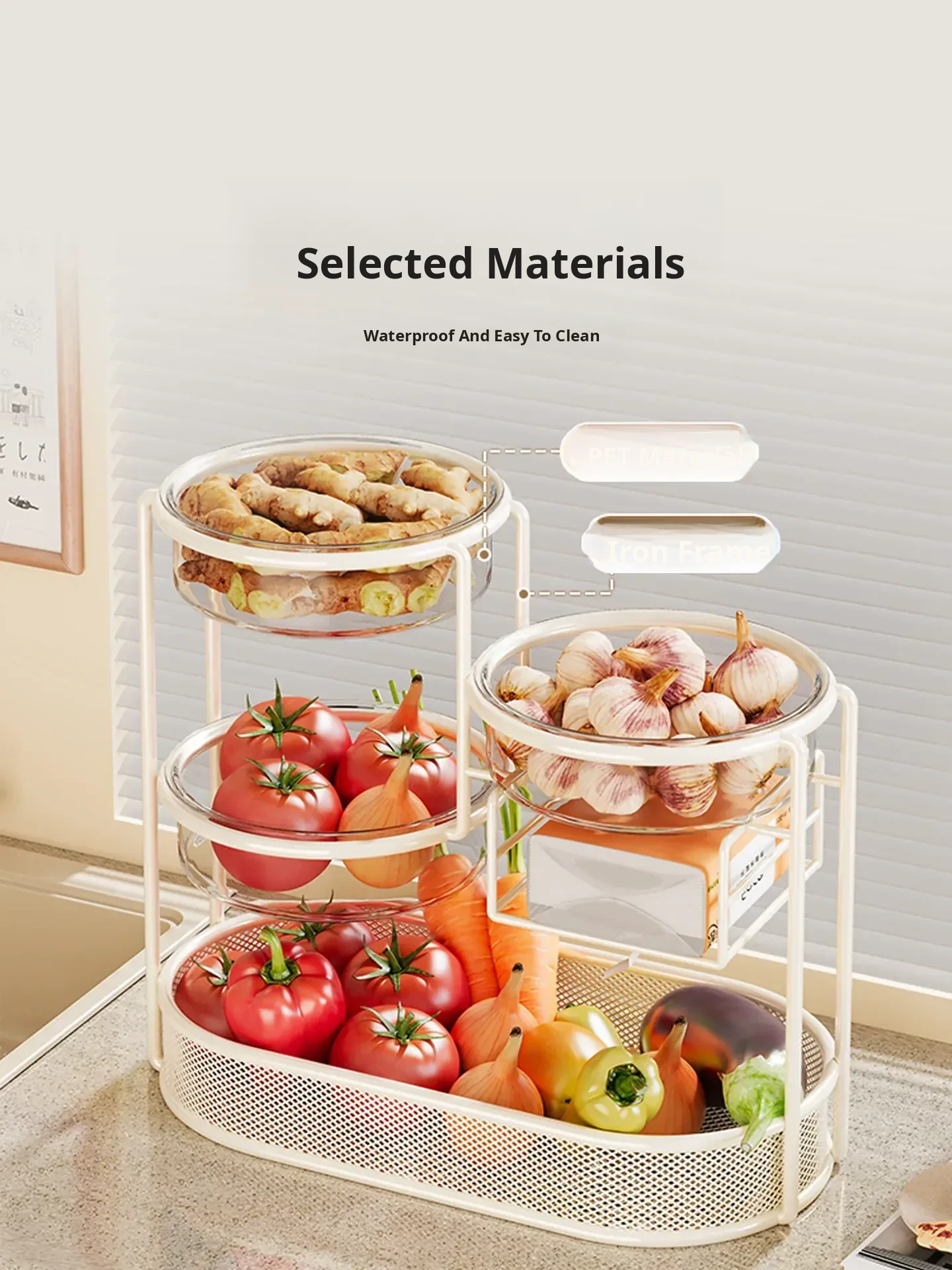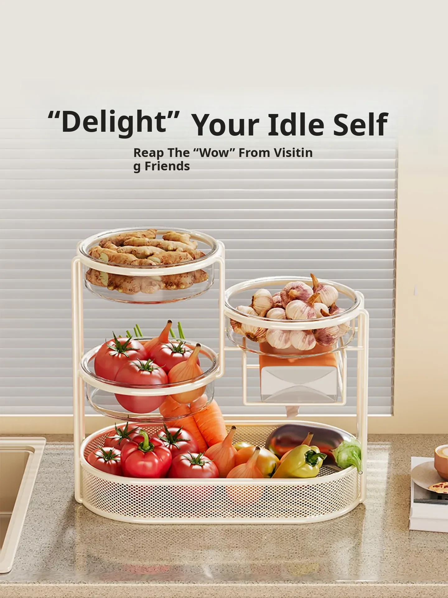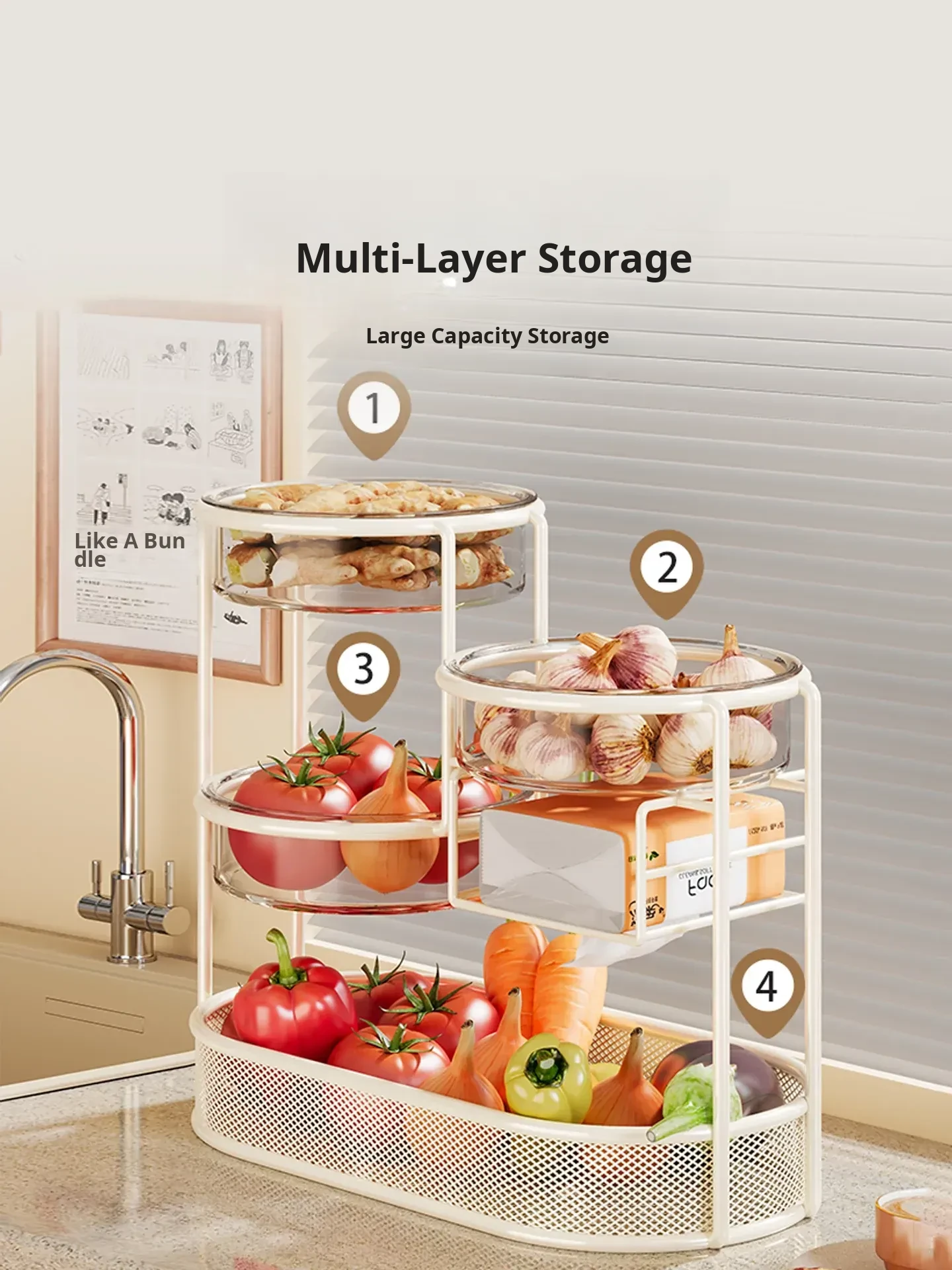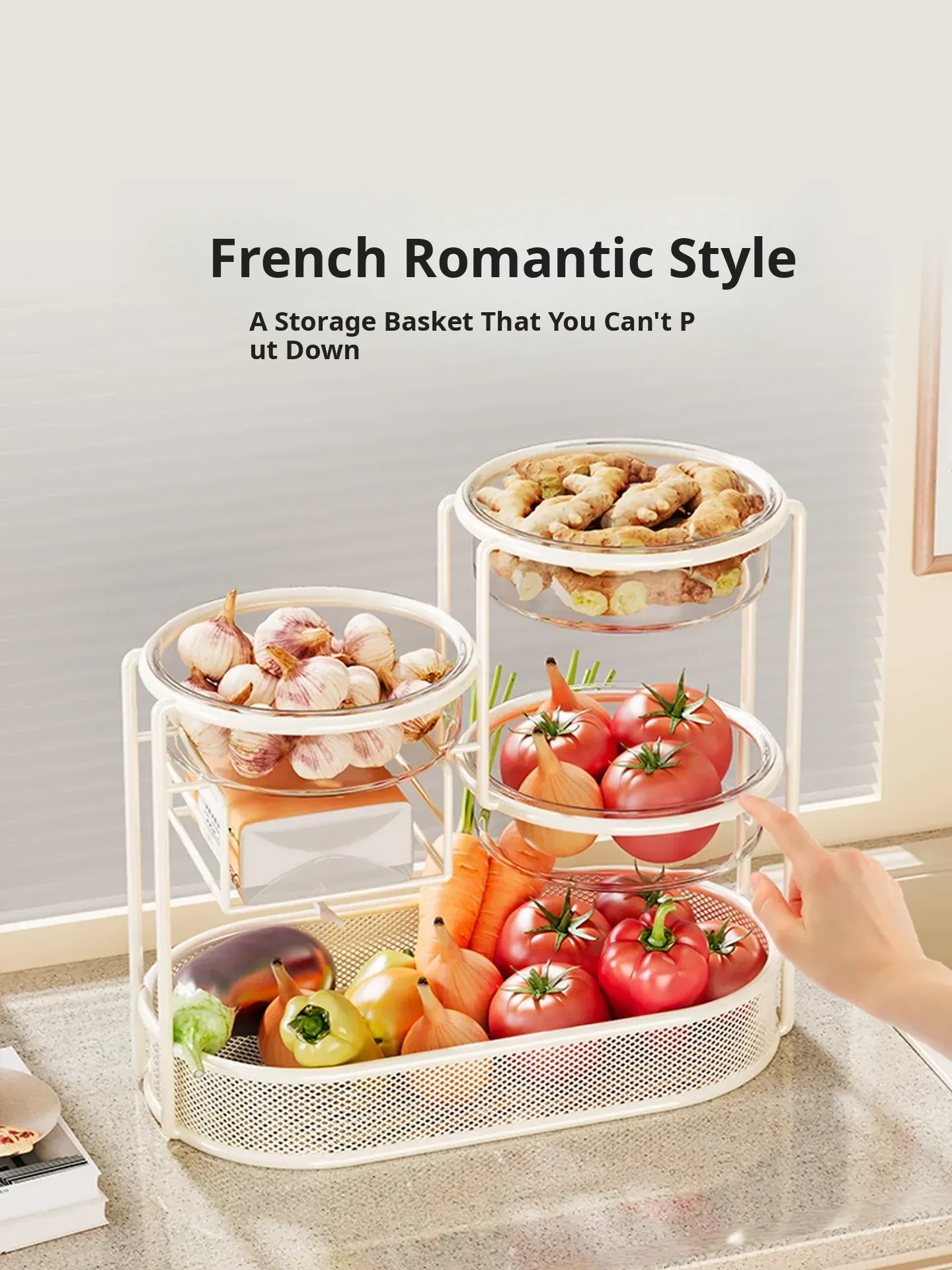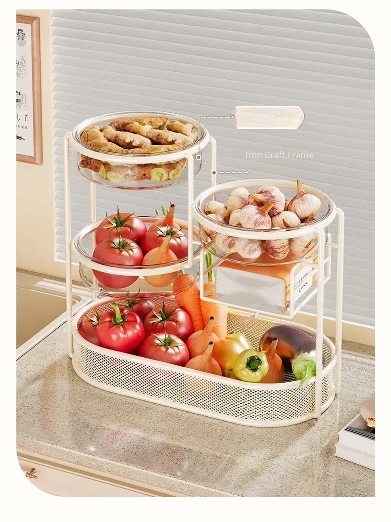 Multi-Tiered Kitchen Storage Rack - Versatile Vegetable and Fruit Basket for Countertop Organization - Perfect for Fresh Produce Display and Easy Access to Your Favorites!