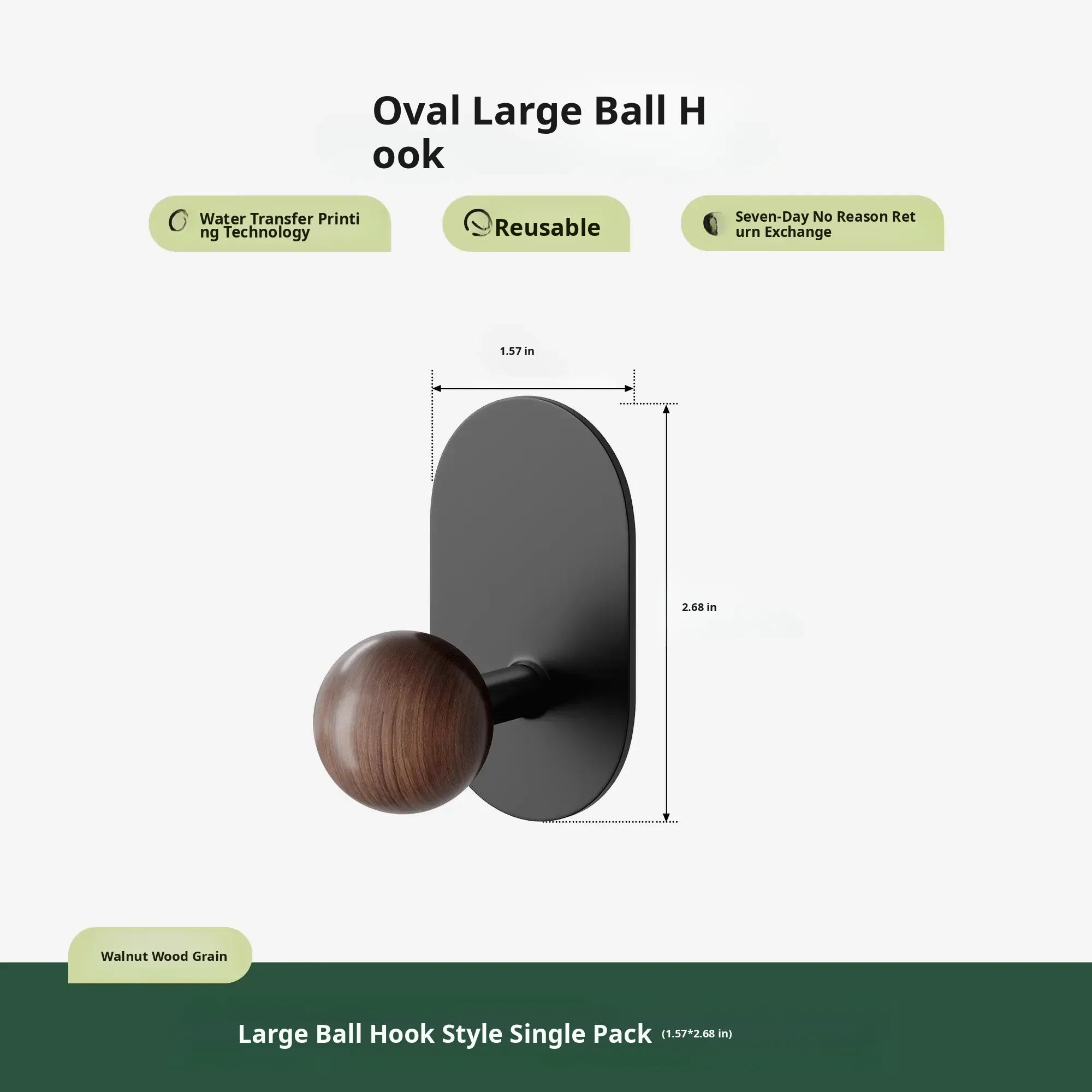 Walnut Wood Hook [Single Pack] - No Drilling Required