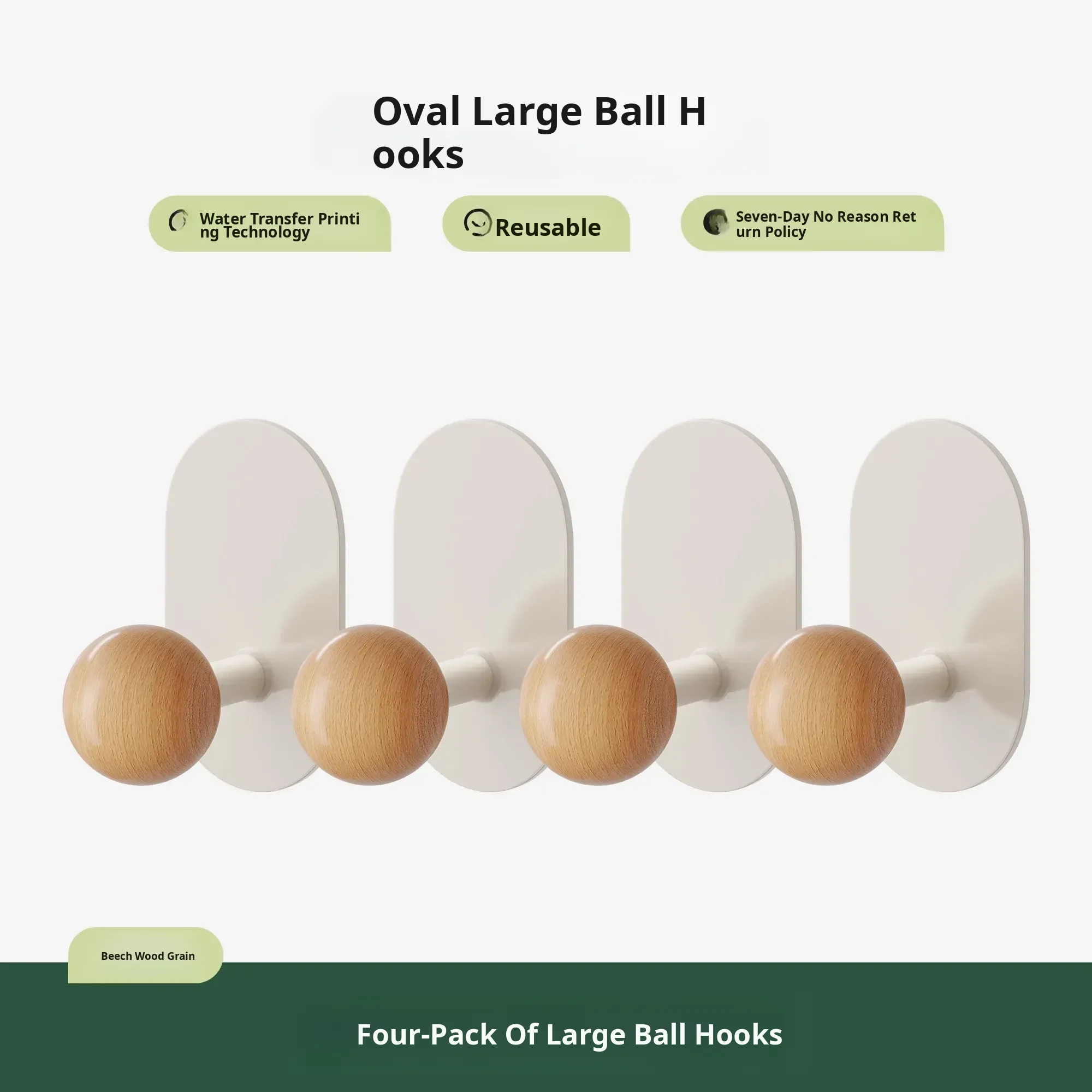 Beech Wood Hooks [Pack of 4] No Need to Drill Holes
