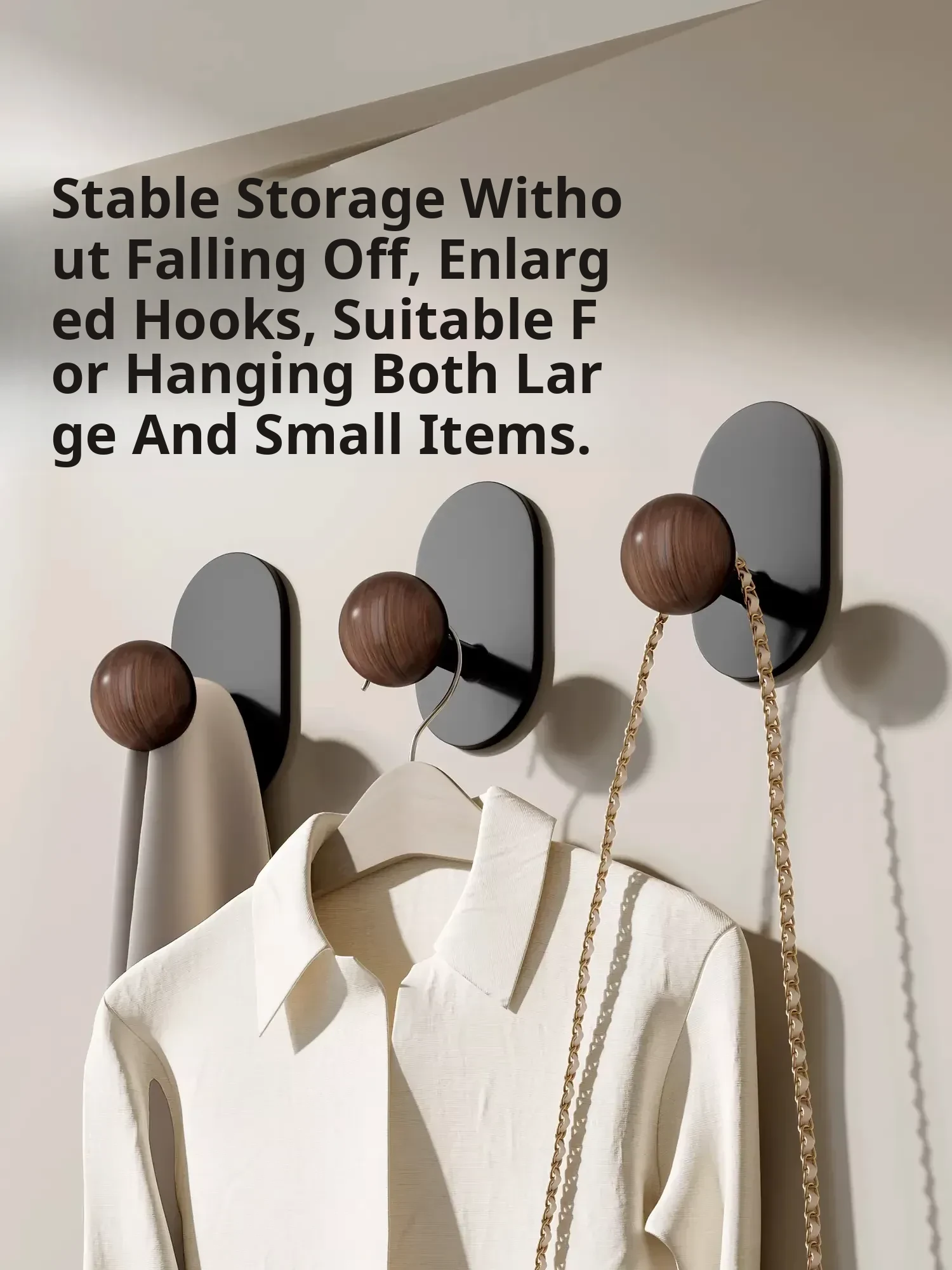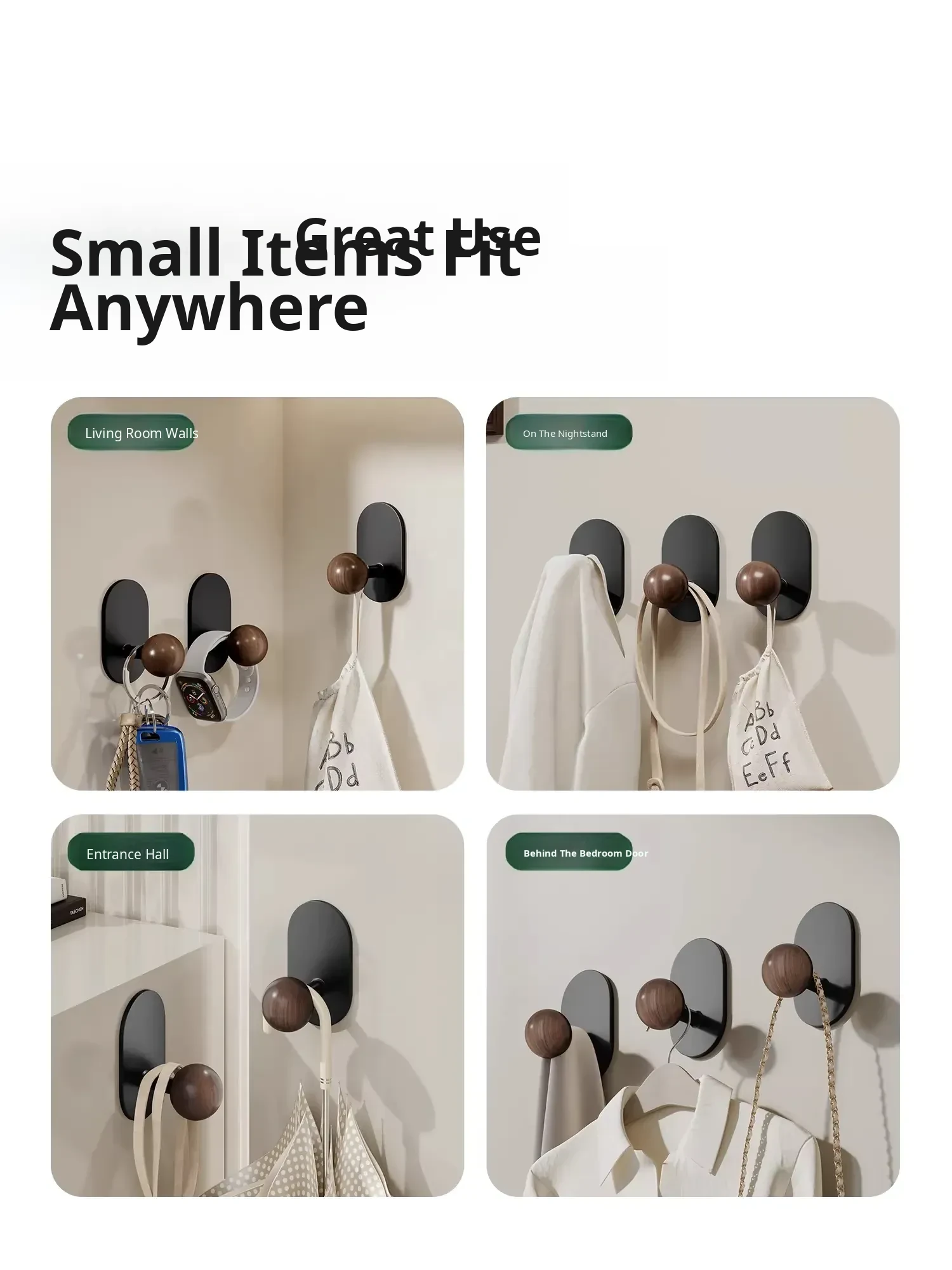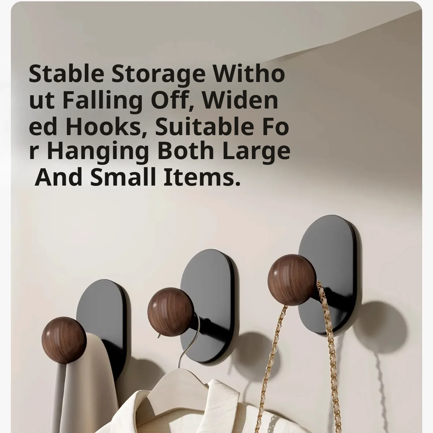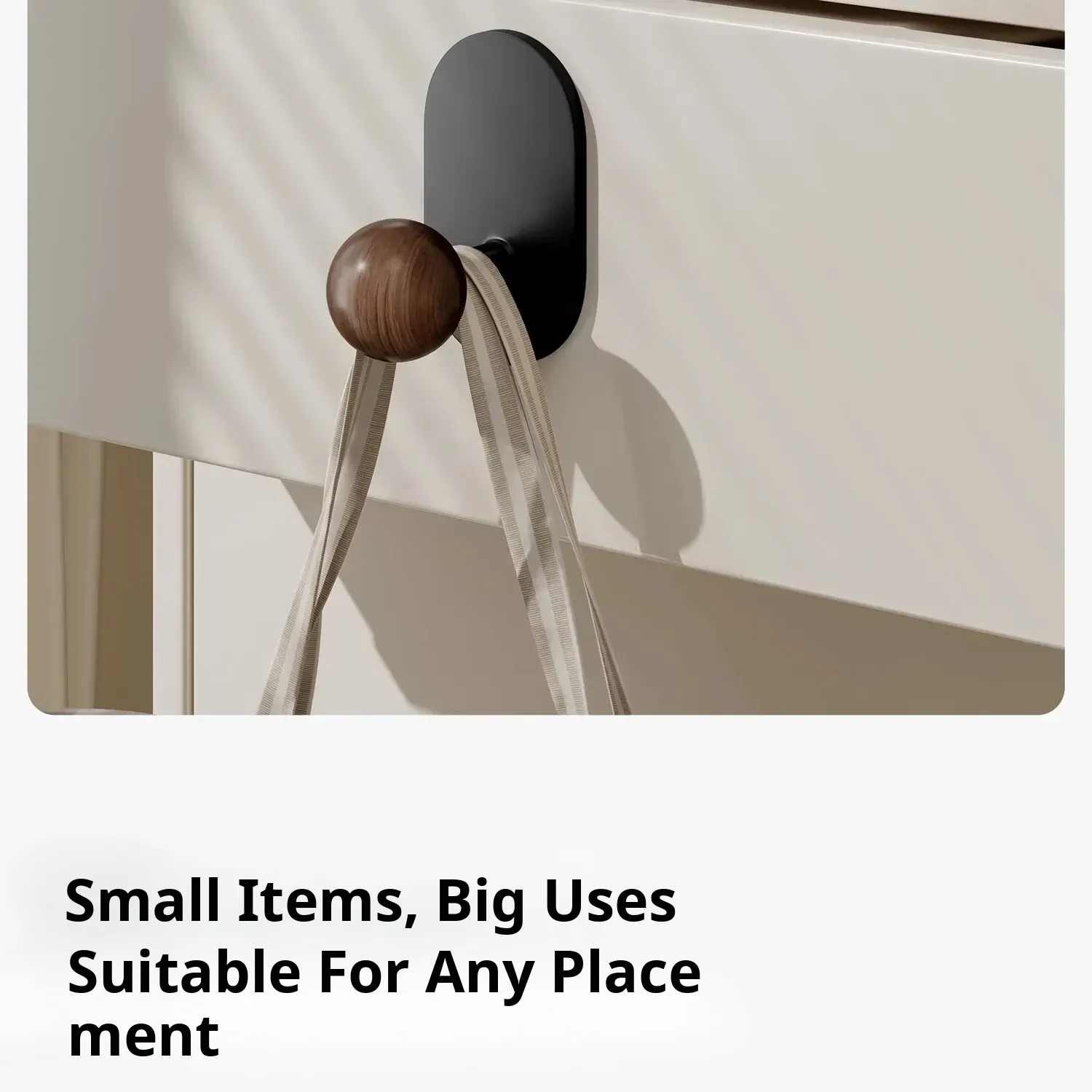 Walnut Wood Hooks [Pack of 4] No Need to Drill Holes