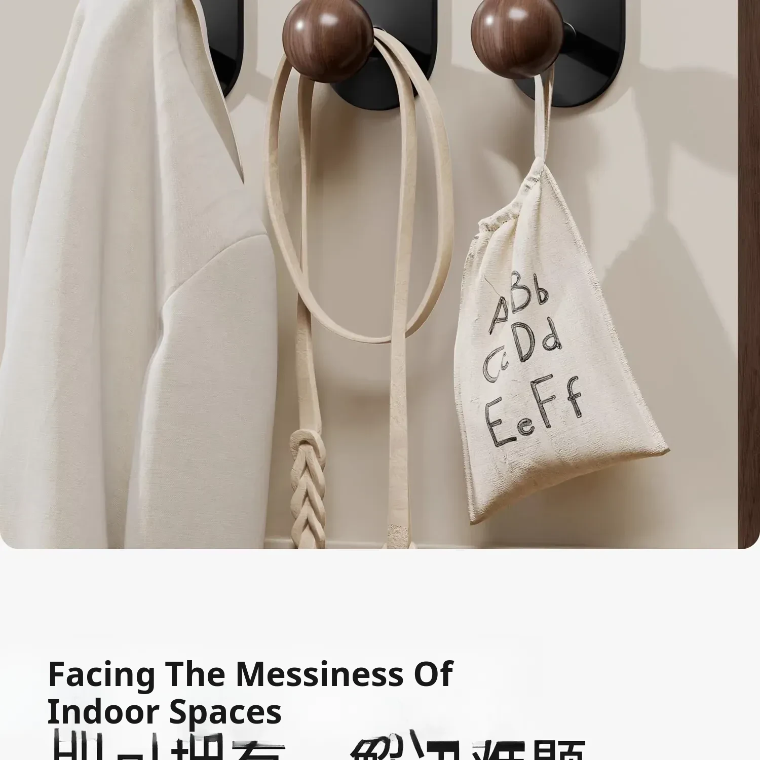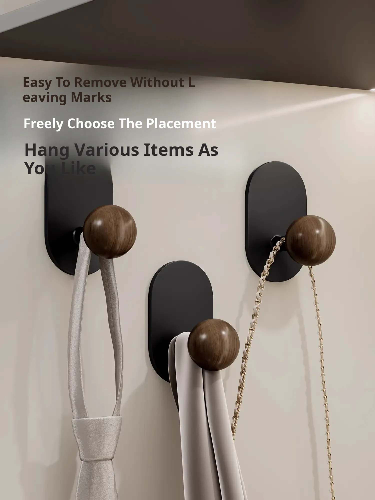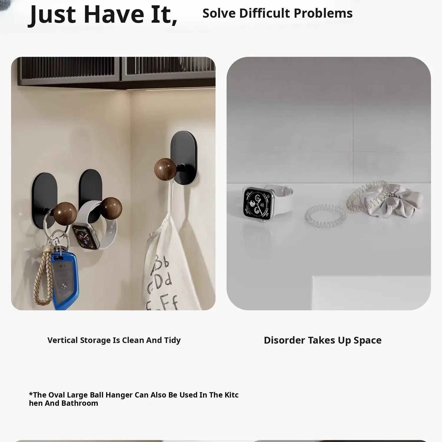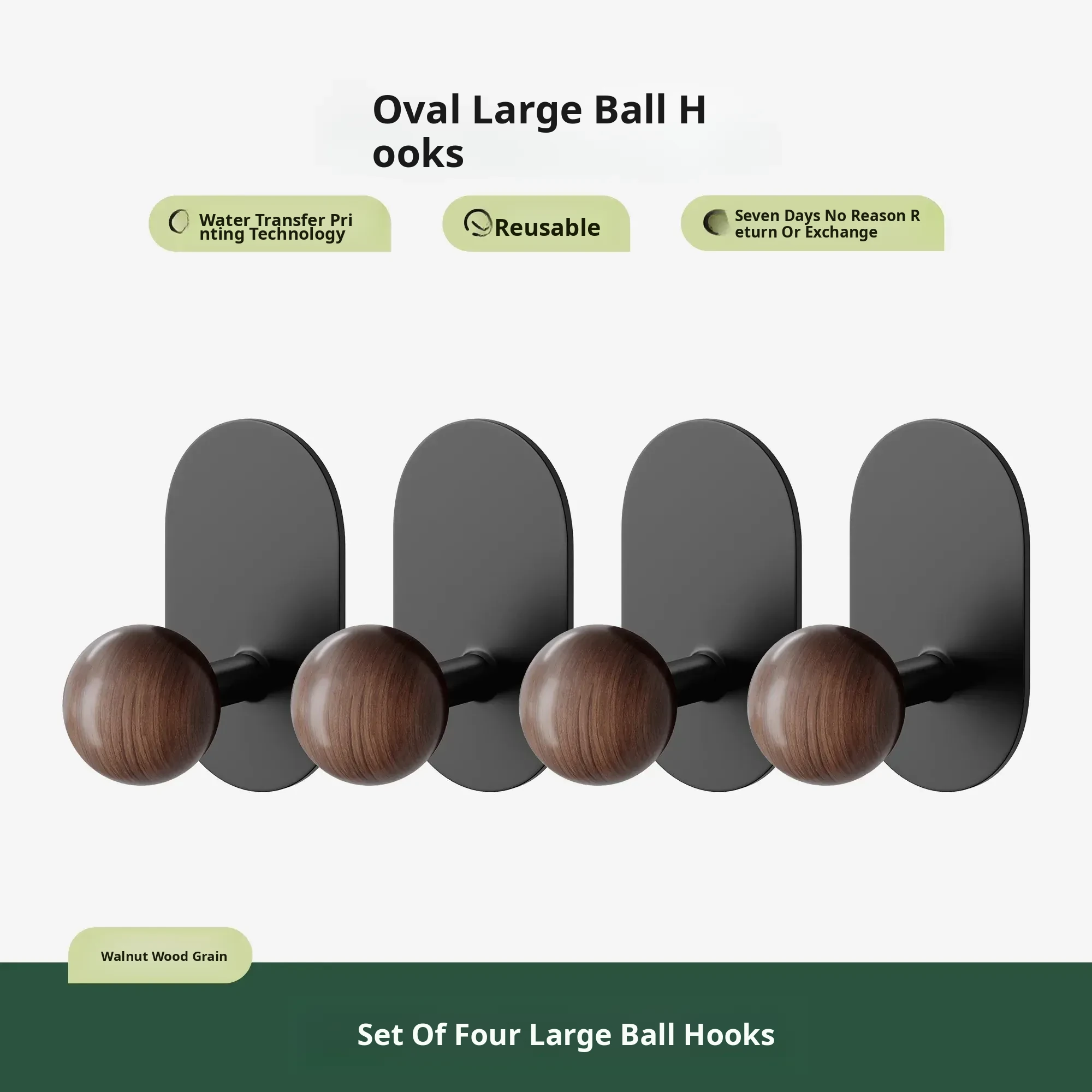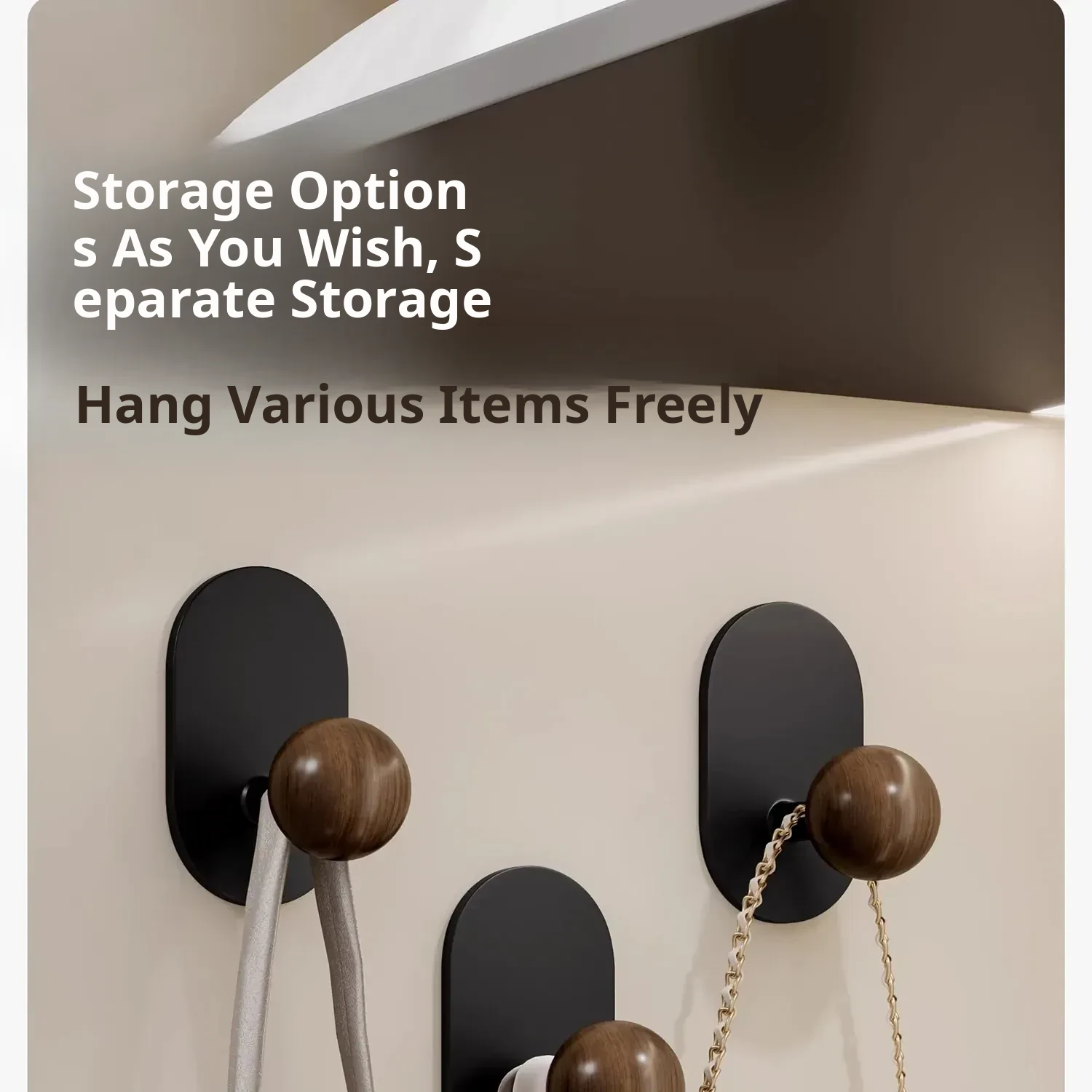 Walnut Wood Hooks [Pack of 4] No Need to Drill Holes