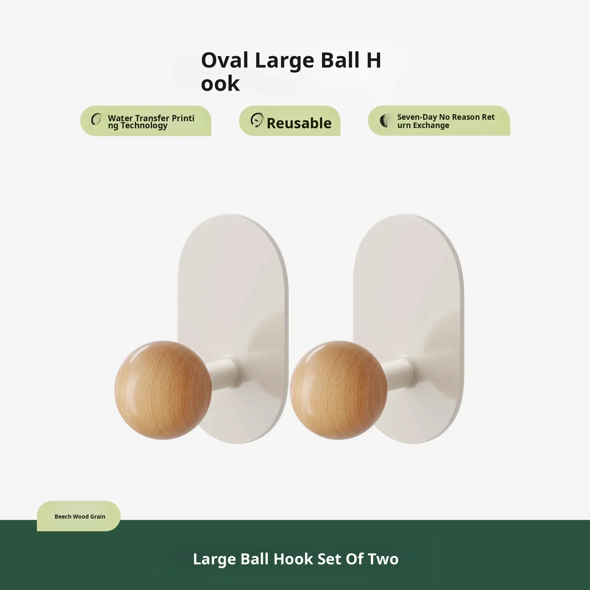 Beech Wood Hooks [Pack of 2] No Need to Drill Holes
