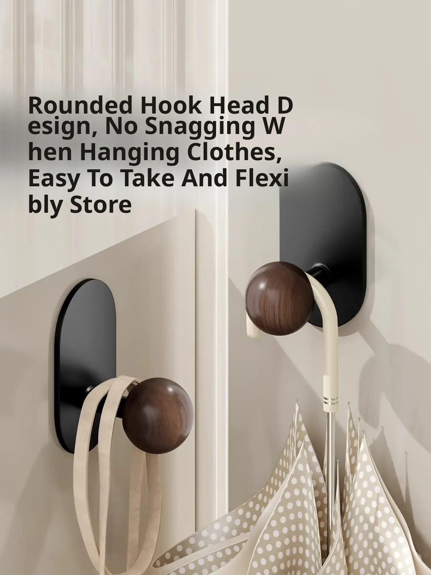 Walnut Wood Hooks [Pack of 2] No Need to Drill Holes