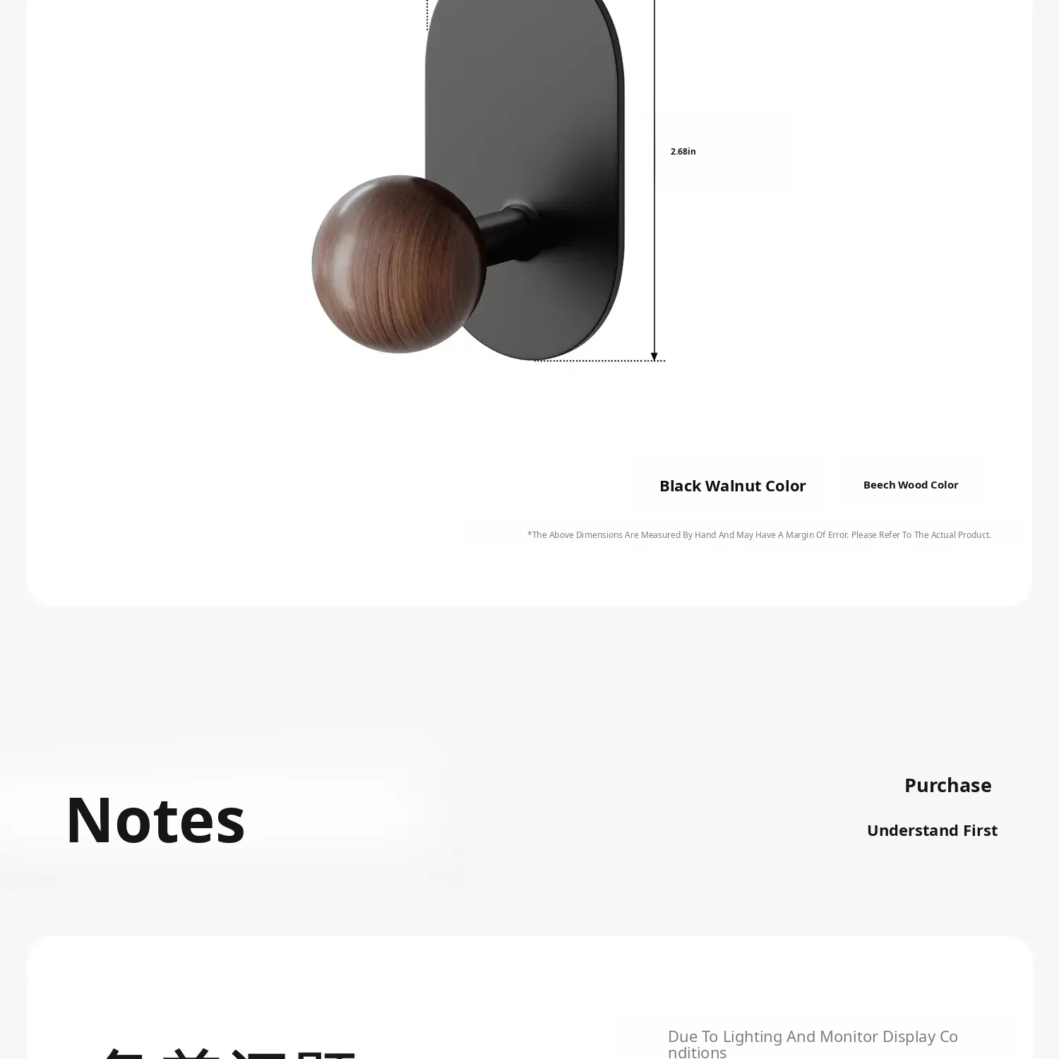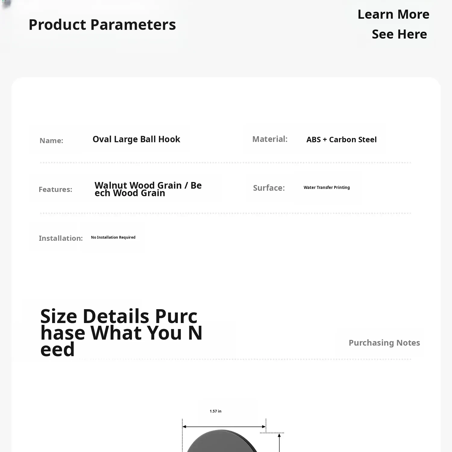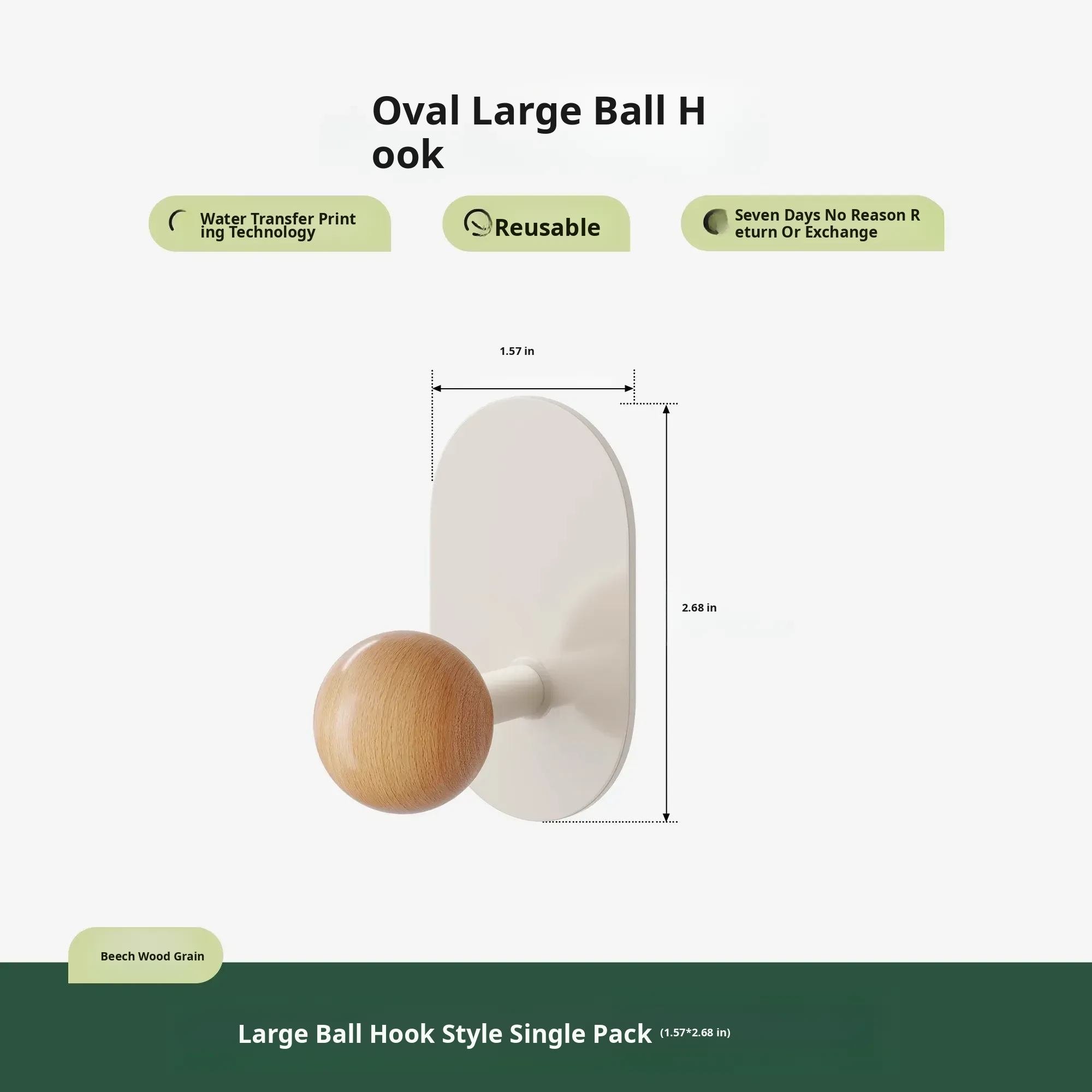 Beech Wood Hook [1 Pack] No Need to Drill Holes