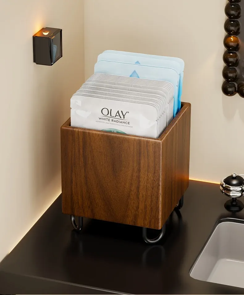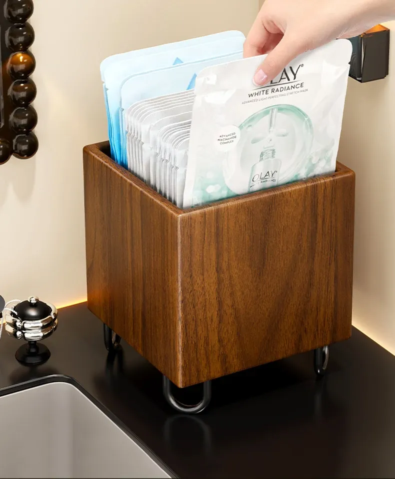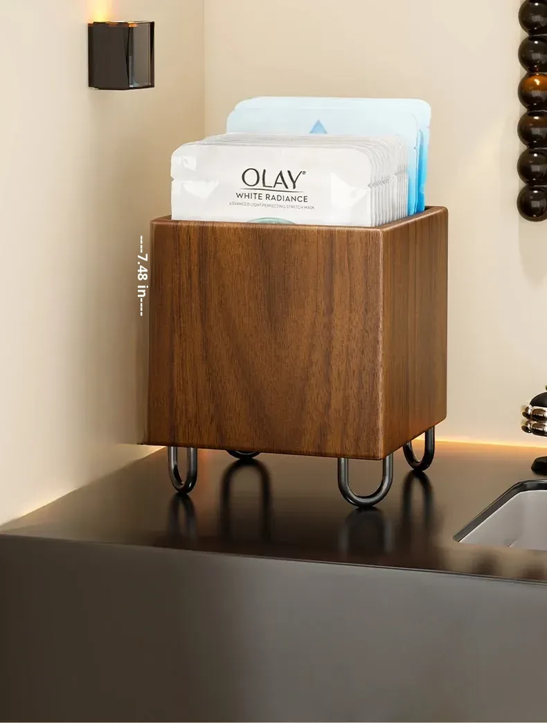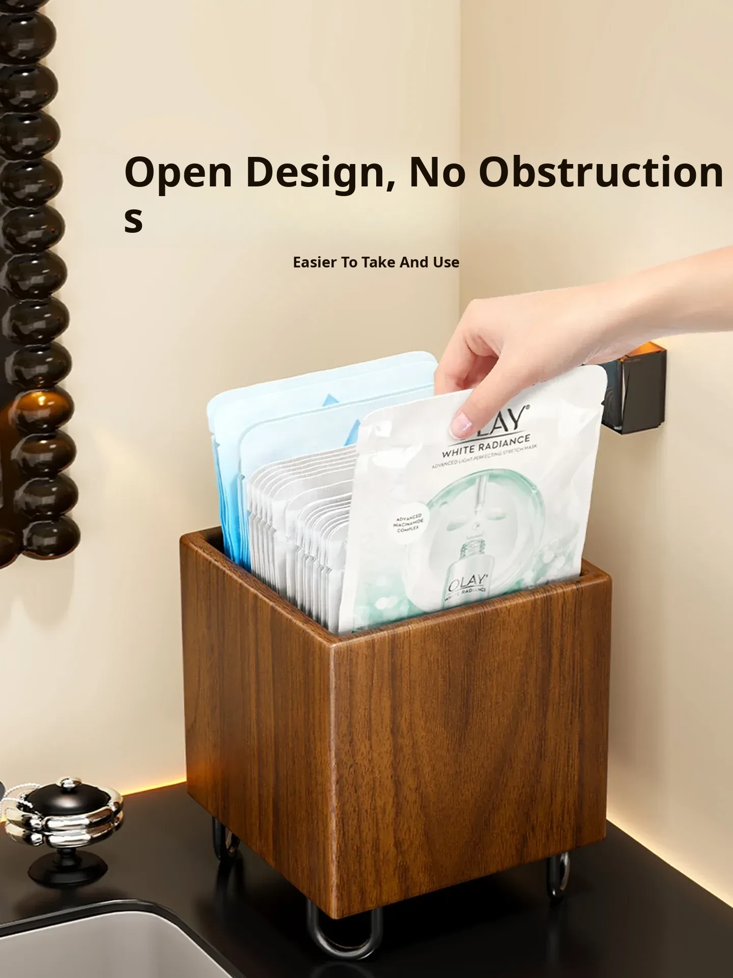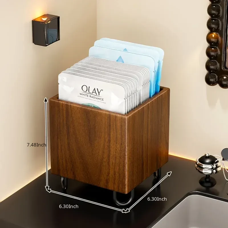 Premium Solid Wood Face Mask Organizer - Spacious Makeup and Skincare Storage Box for Office and Dorm Use - Stylish and Functional Desktop Organizer for Cosmetics and Miscellaneous Items