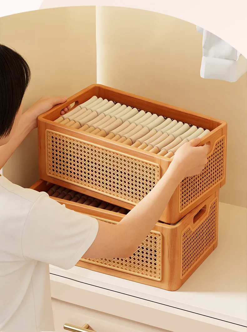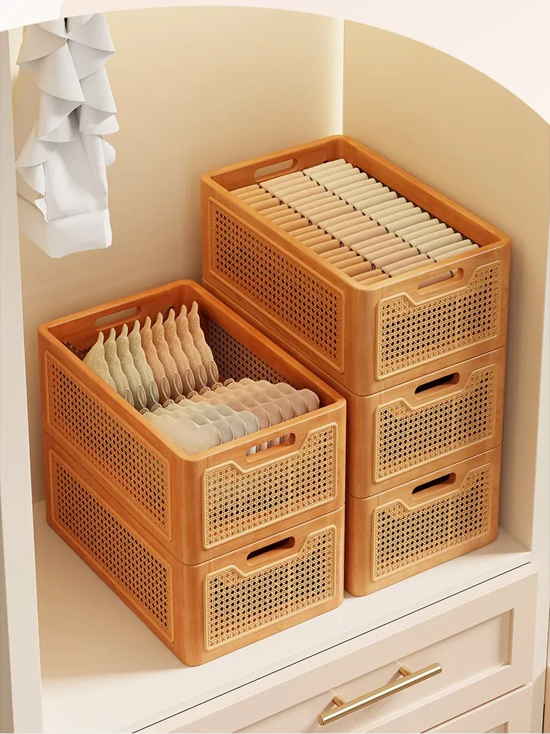 Premium Solid Wood Underwear Storage Box - Multi-Functional Stackable Organizer Shelf for Wardrobe - Versatile 3-in-1 Large Capacity Storage Basket for Neat and Stylish Closet Organization