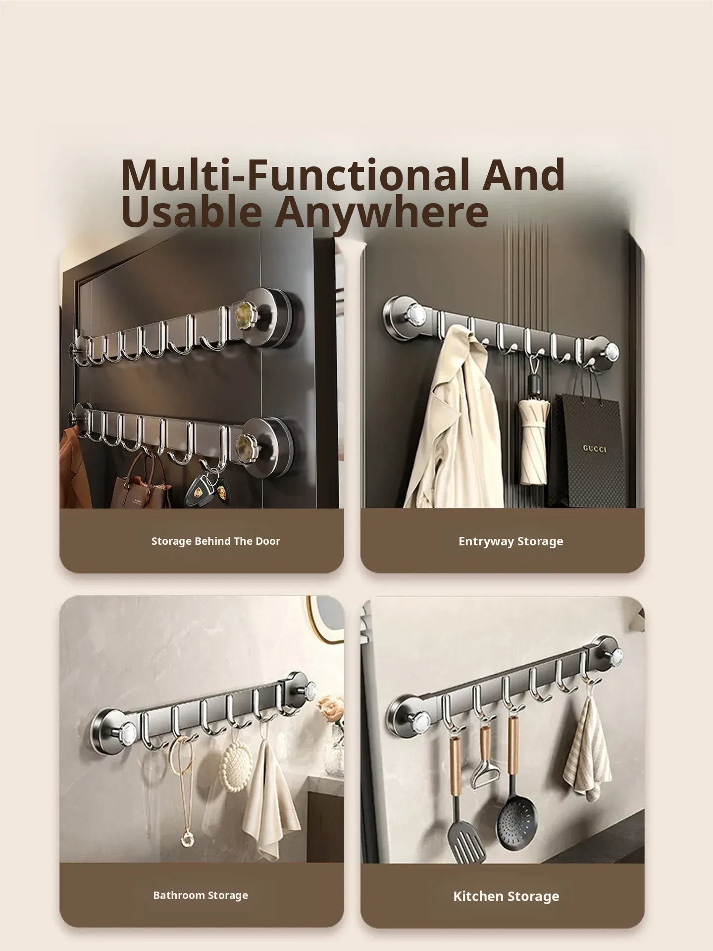 Removable Suction Cup Hook - No Drilling Required, Strong Adhesive for Door Back - Perfect Clothes Organizer and Storage Rack for Entryway