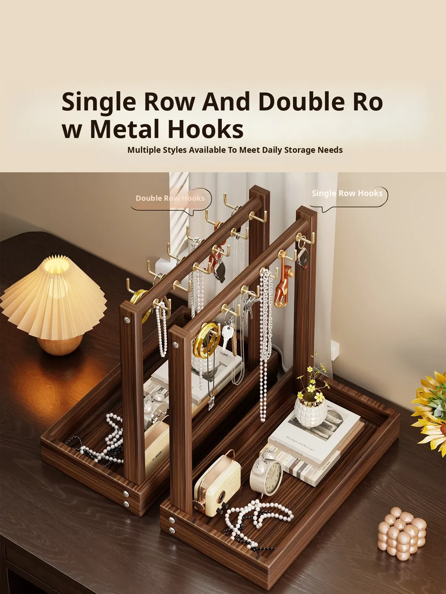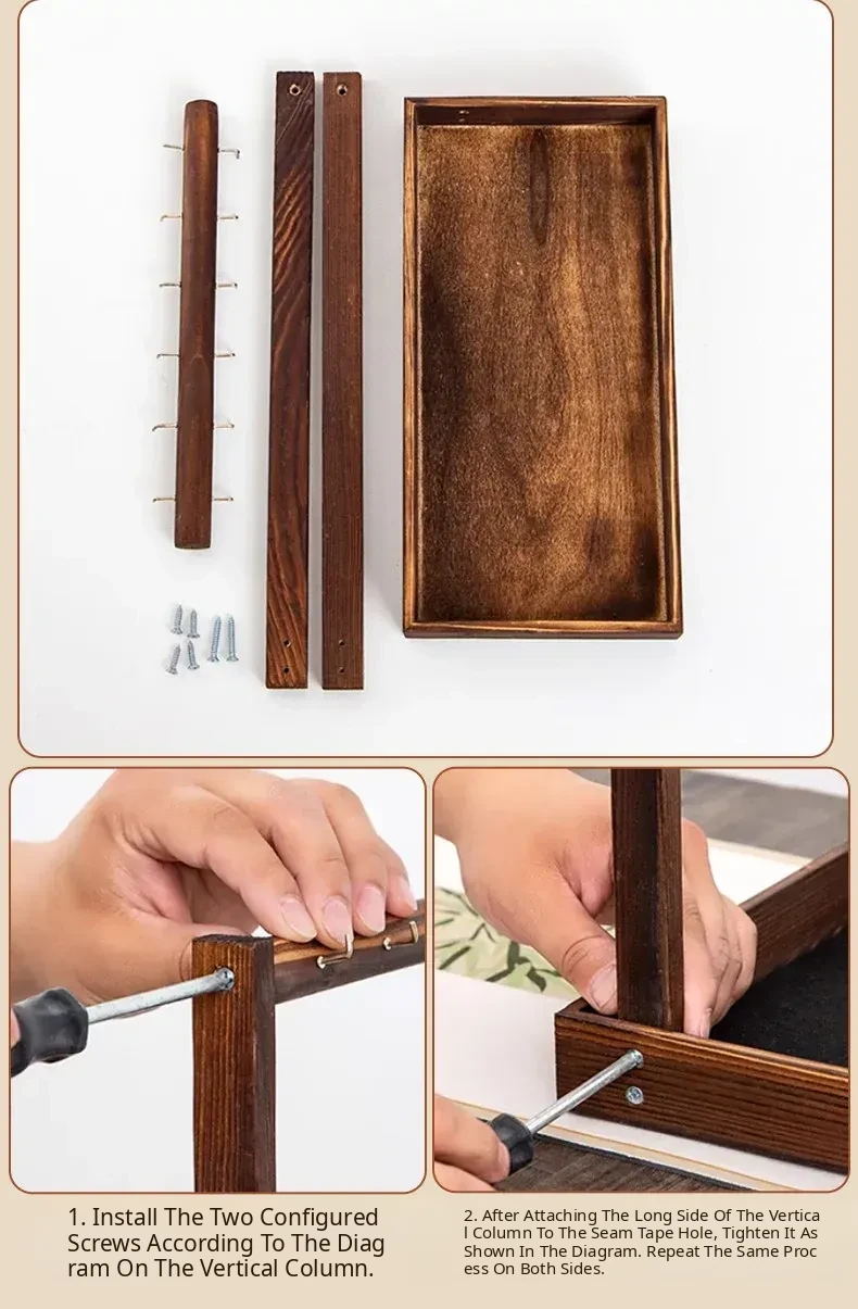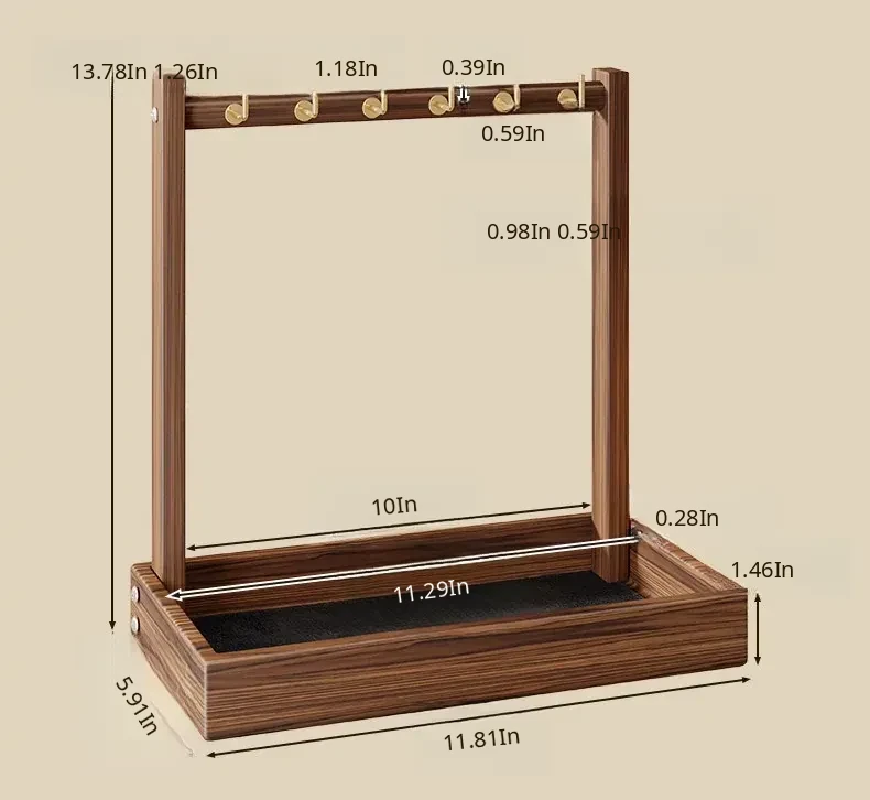 Double-Sided Twelve-Hook Rack with Black Felt [Solid Wood]