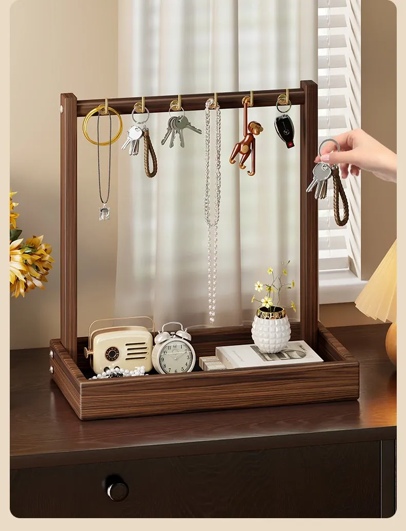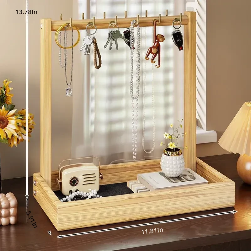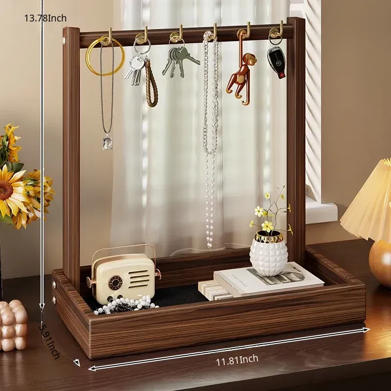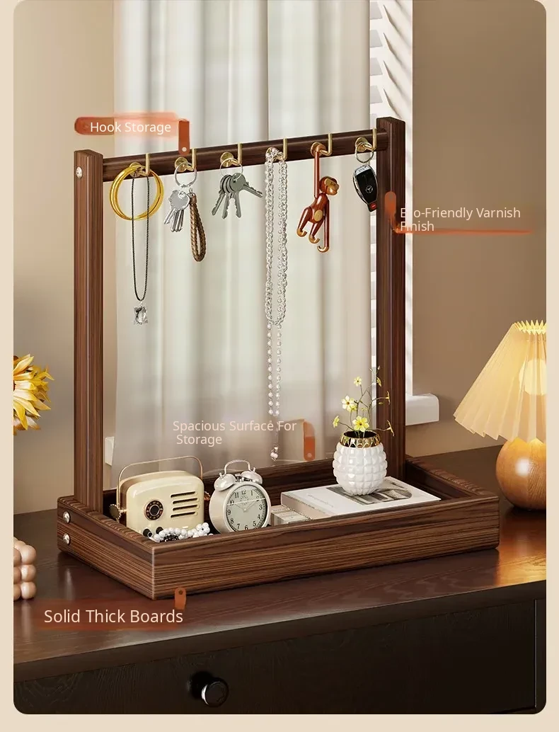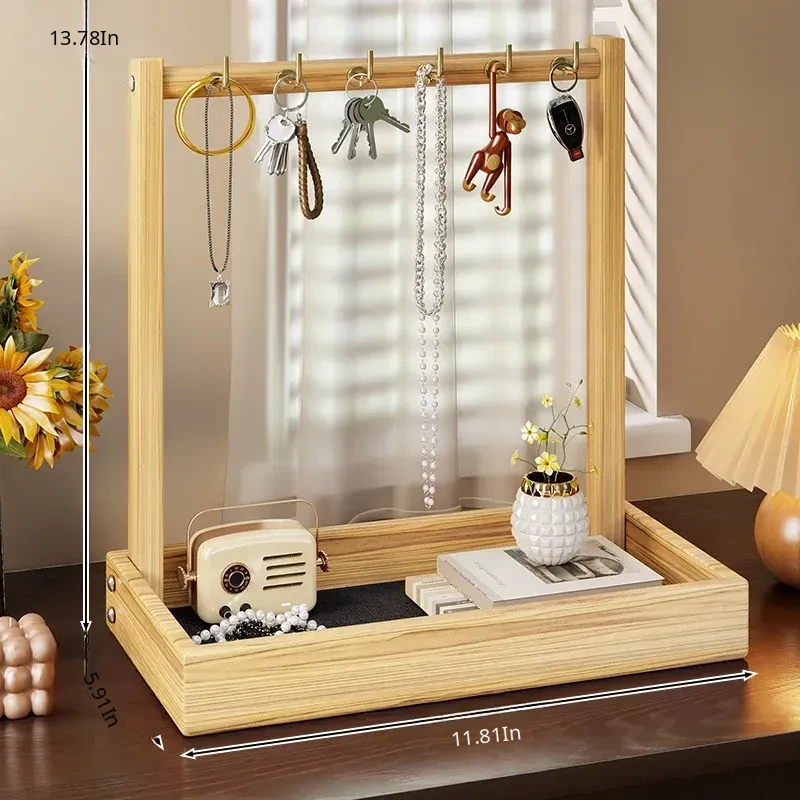 Solid Wood Entryway Storage Shelf – Key Holder Rack with Tray for Glasses and Watches – Stylish Organizer for Your Home Entrance
