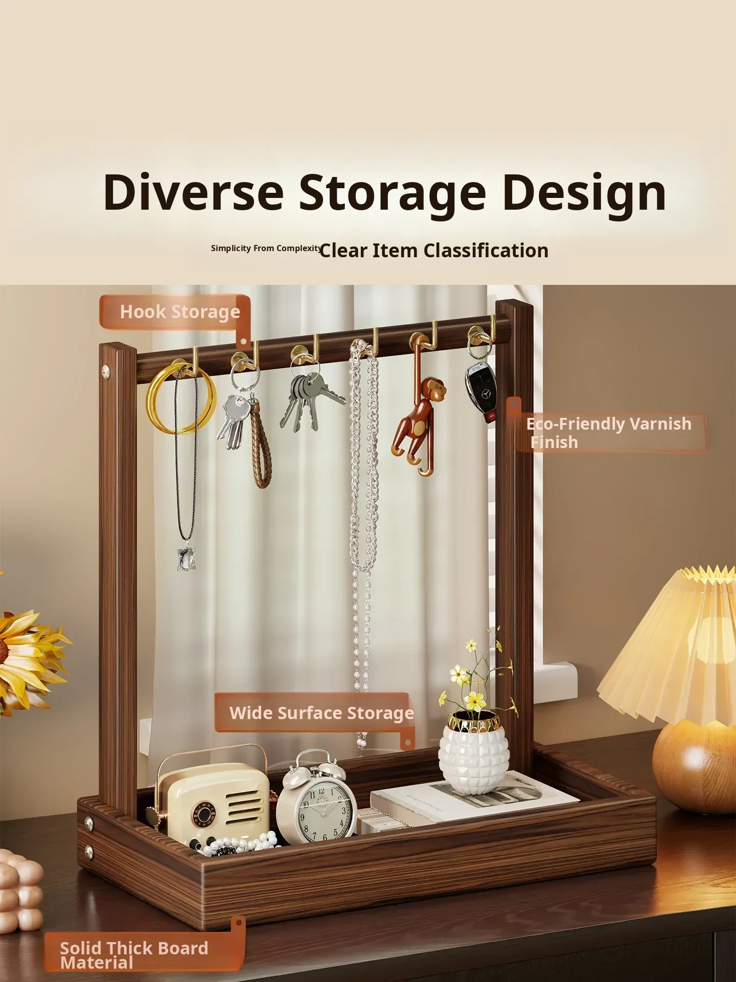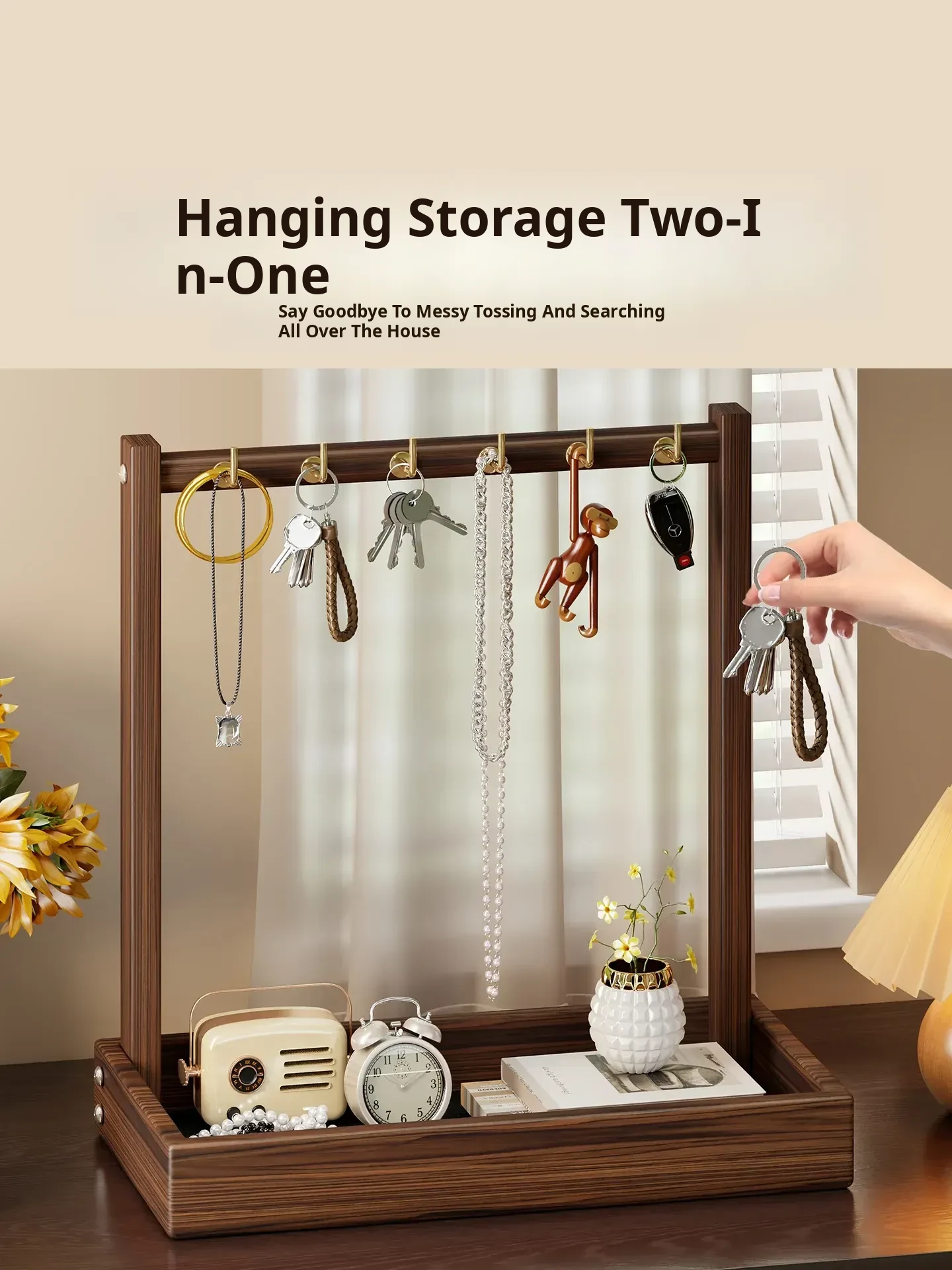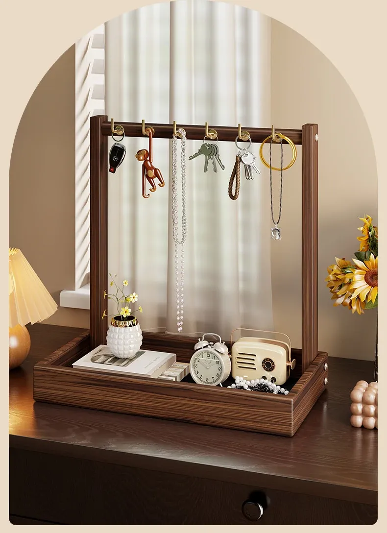 Solid Wood Entryway Storage Shelf – Key Holder Rack with Tray for Glasses and Watches – Stylish Organizer for Your Home Entrance