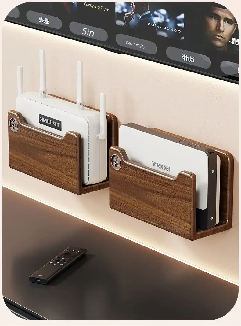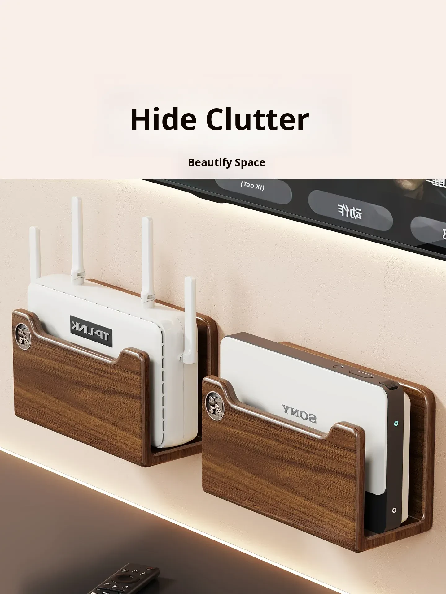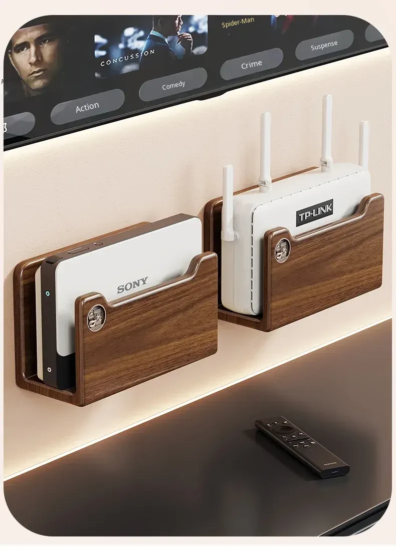 Solid Wood Router Shelf - Wall-Mounted WiFi Storage Rack for Set-Top Boxes and Home Power Strip Organizer - Stylish and Practical Home Solution