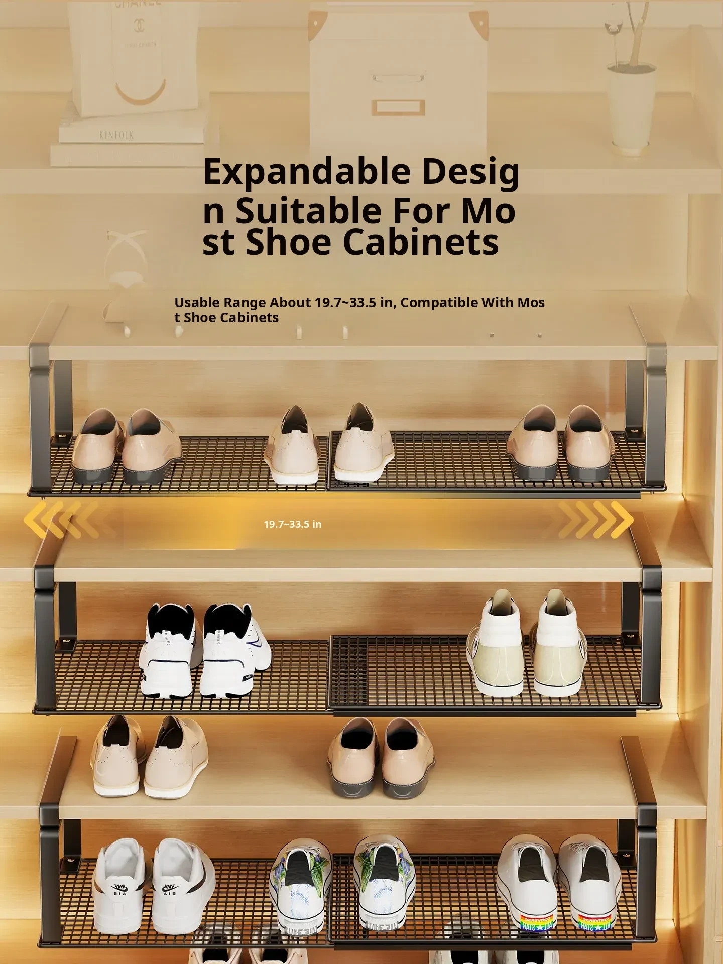 Space-Saving Expandable Shoe Rack with Under-Shelf Baskets – Multi-Tiered Storage Solution for Entryway and Closet Organization