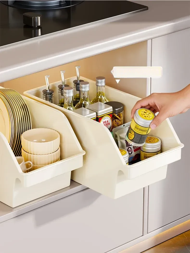 Space-Saving Kitchen Organizer - Pull-Out Snack Storage Rack for Cabinets, Rectangular Large-Capacity Desktop Storage Bin for Clutter-Free Living!