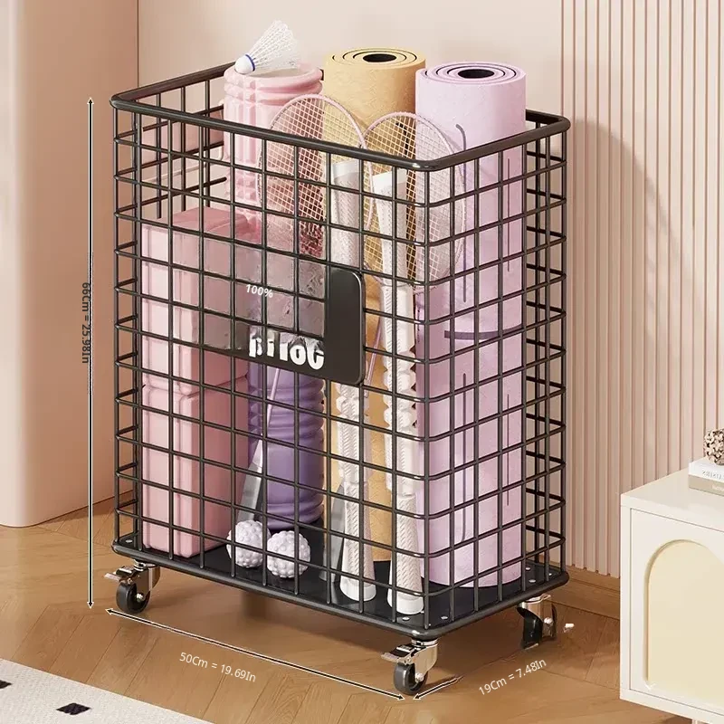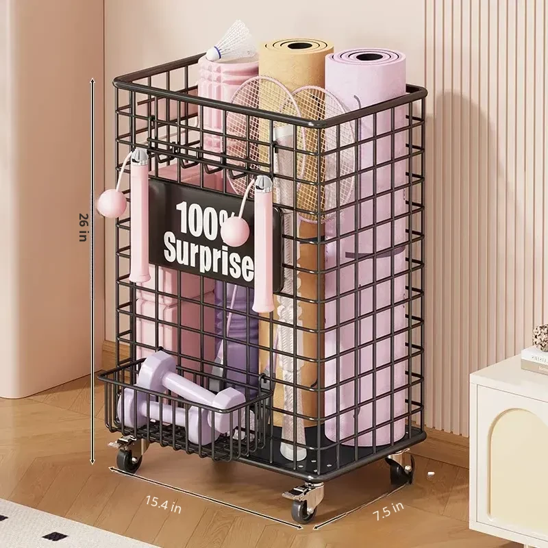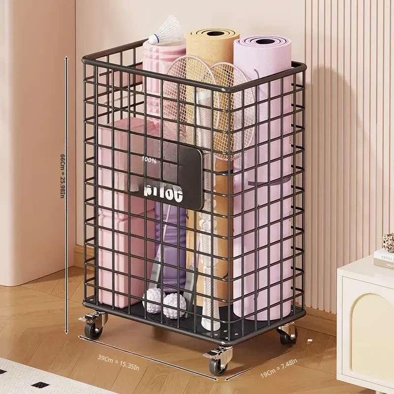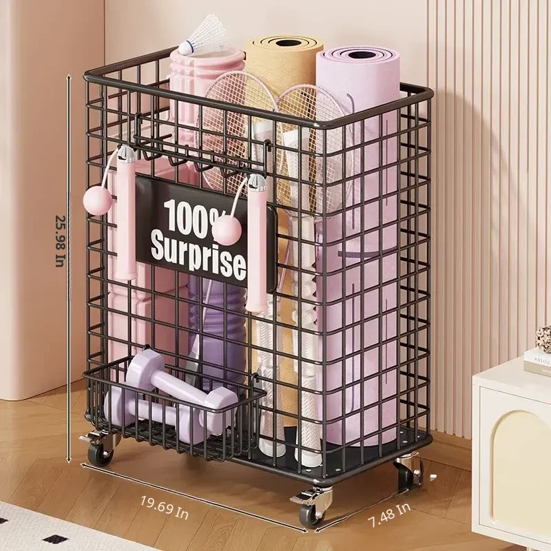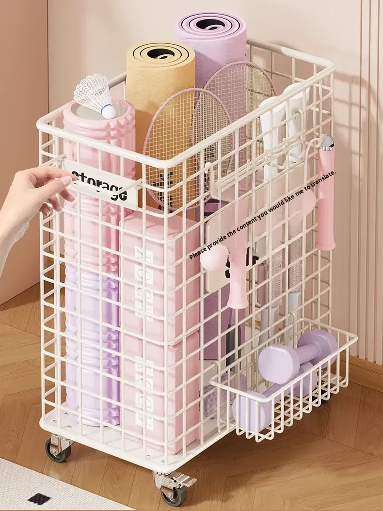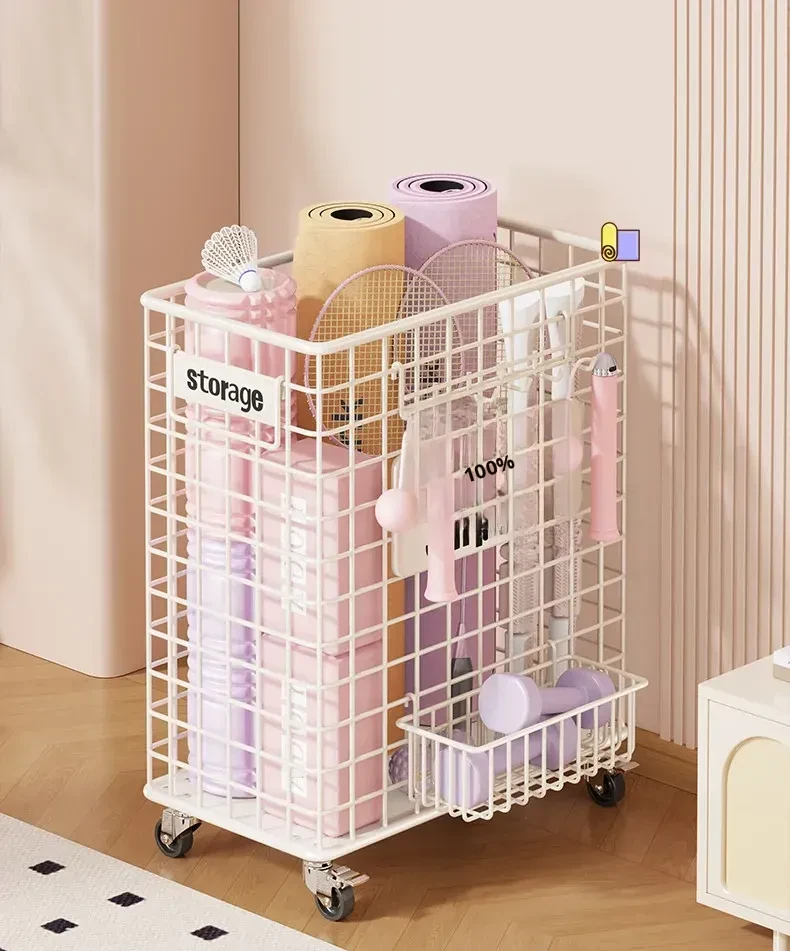 Versatile Home Fitness Equipment Storage Rack with Wheels - Large Capacity for Easy Mobility, Perfect for Storing Yoga Mats and Badminton Gear in Tight Spaces!