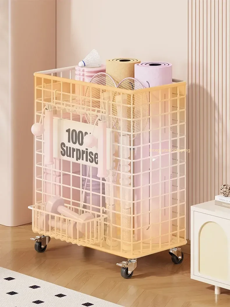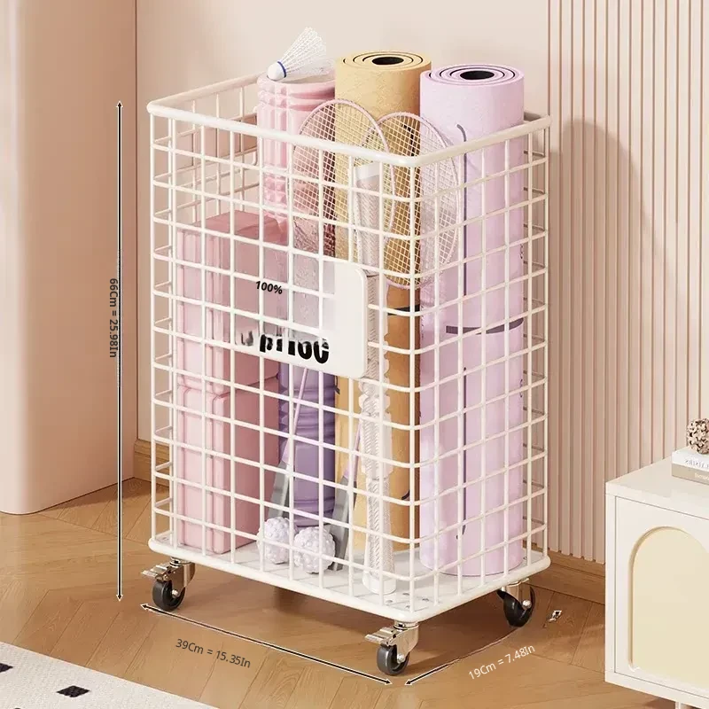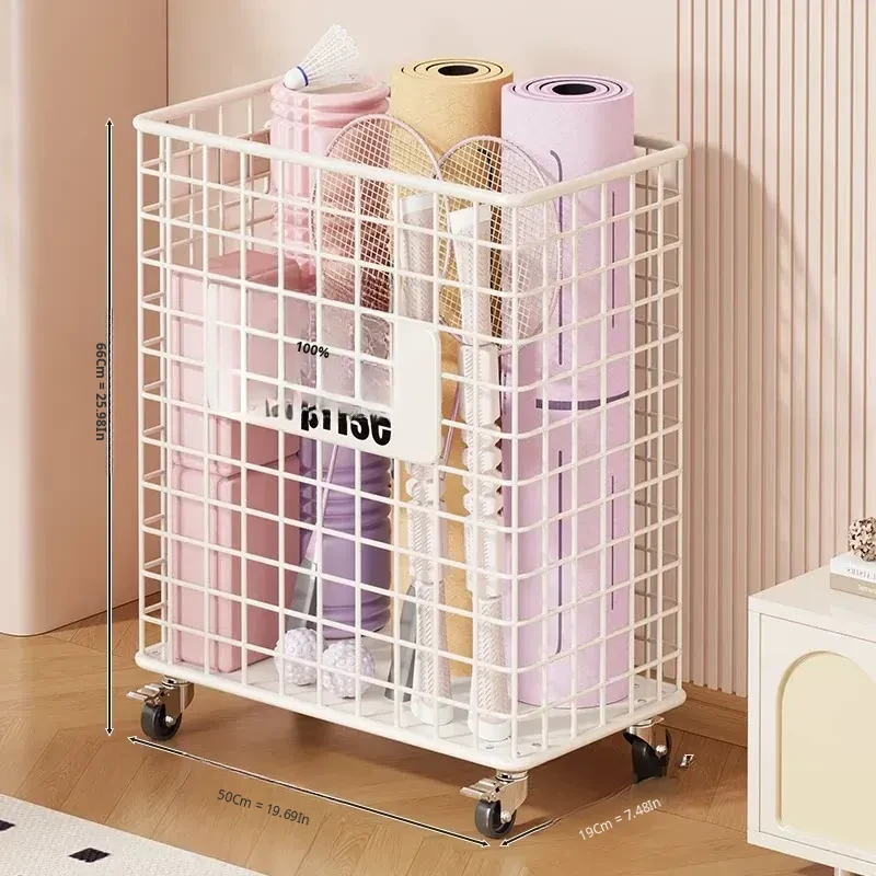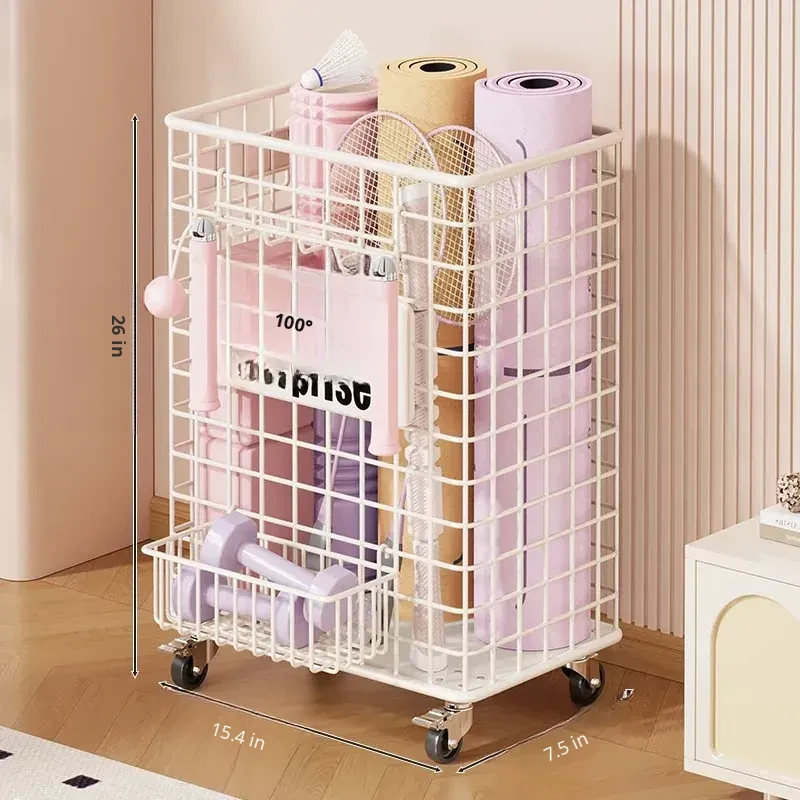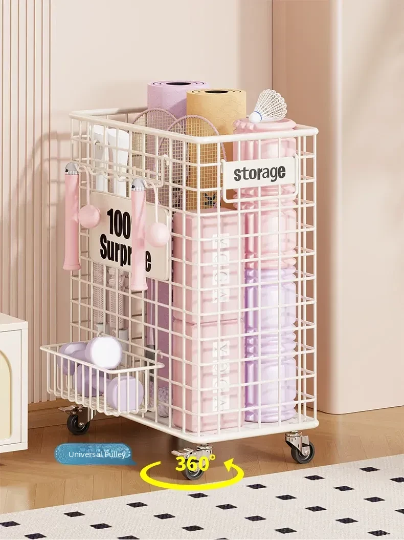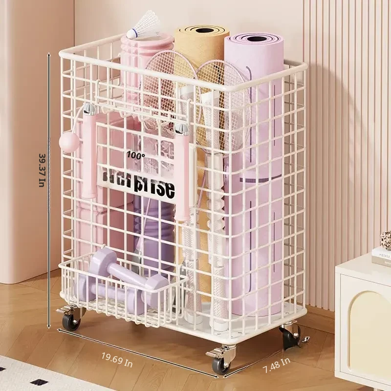 Versatile Home Fitness Equipment Storage Rack with Wheels - Large Capacity for Easy Mobility, Perfect for Storing Yoga Mats and Badminton Gear in Tight Spaces!