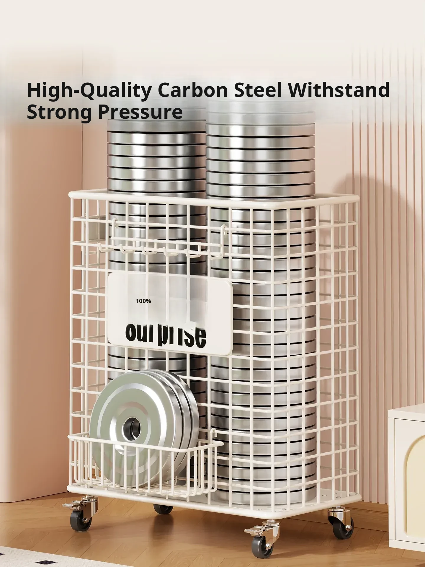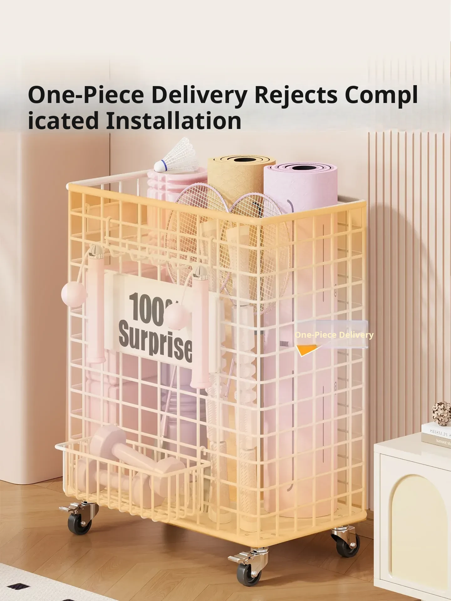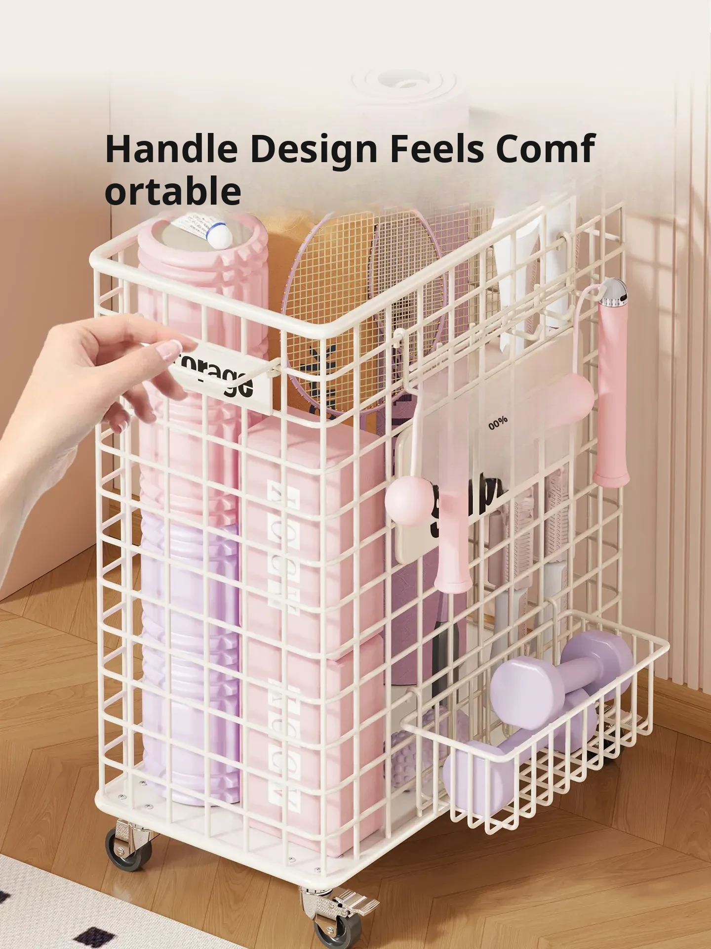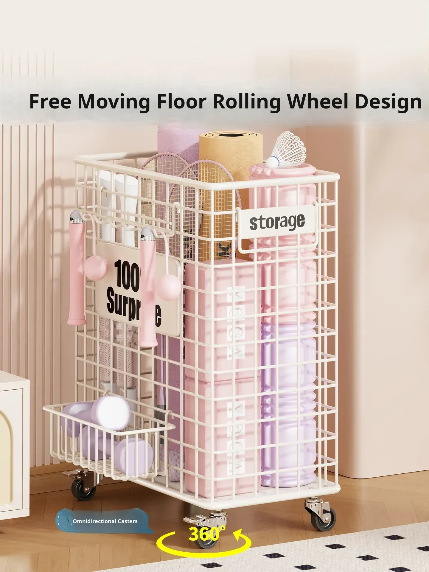 Versatile Home Fitness Equipment Storage Rack with Wheels - Large Capacity for Easy Mobility, Perfect for Storing Yoga Mats and Badminton Gear in Tight Spaces!
