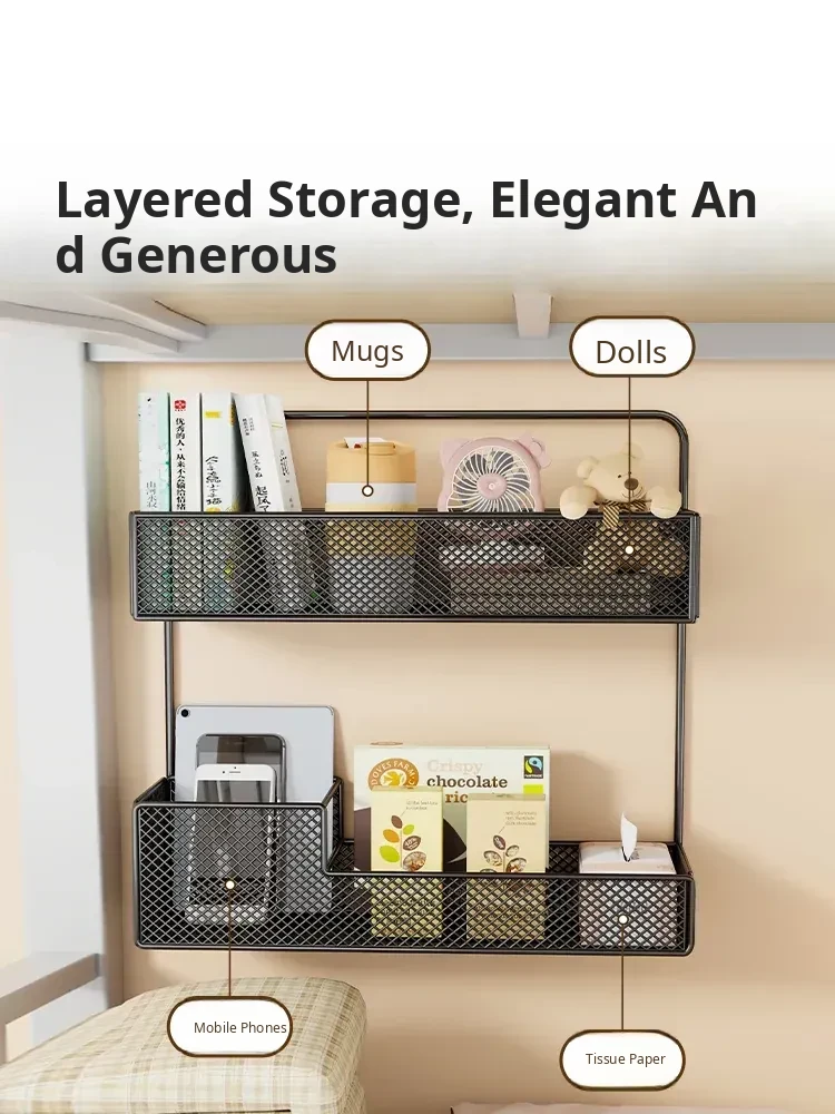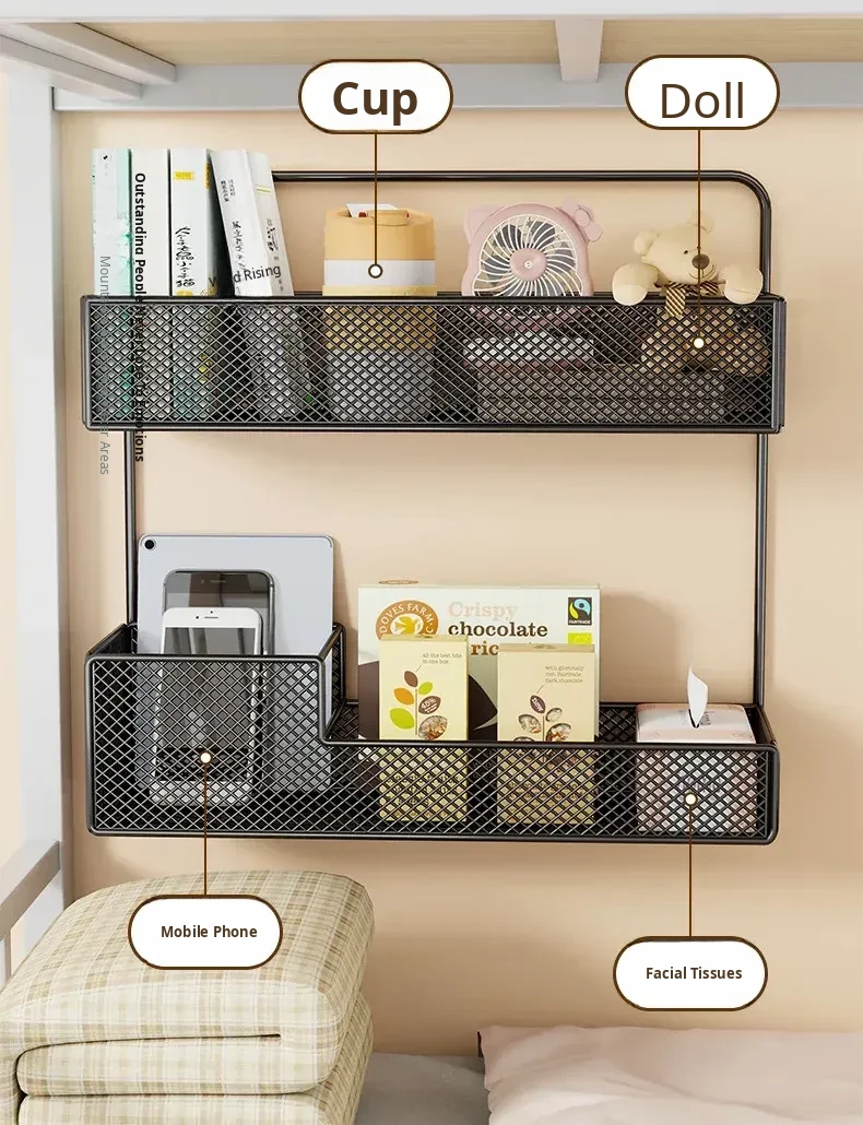 Wall-Mounted Bedside Storage Shelf - No Drilling Required! Perfect for Dorms and Bedrooms, This Space-Saving Organizer Keeps Your Essentials Within Reach. Ideal for Top Bunk Beds, Transform Your Wall into a Functional Display with This Must-Have Storage