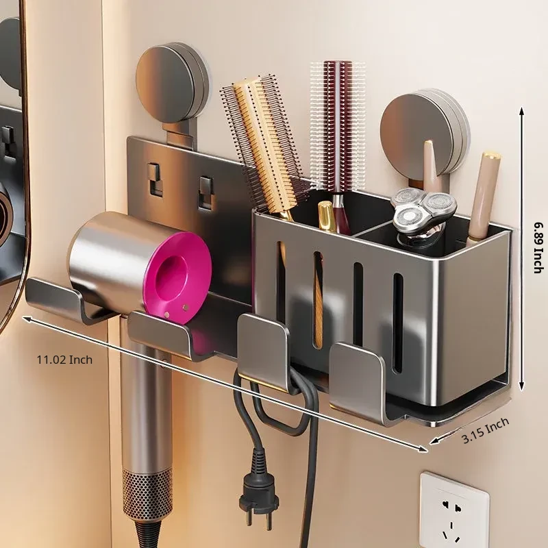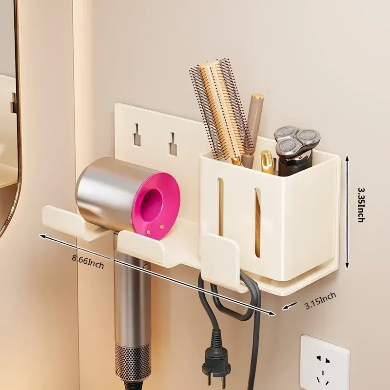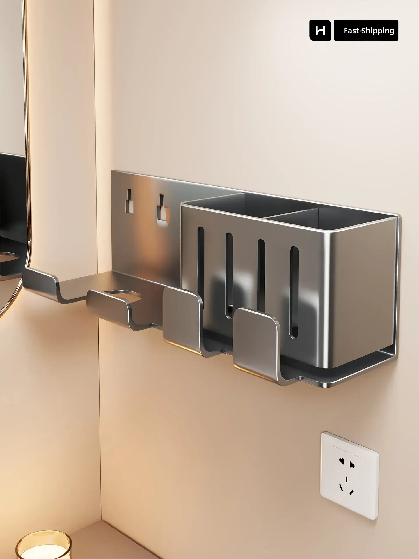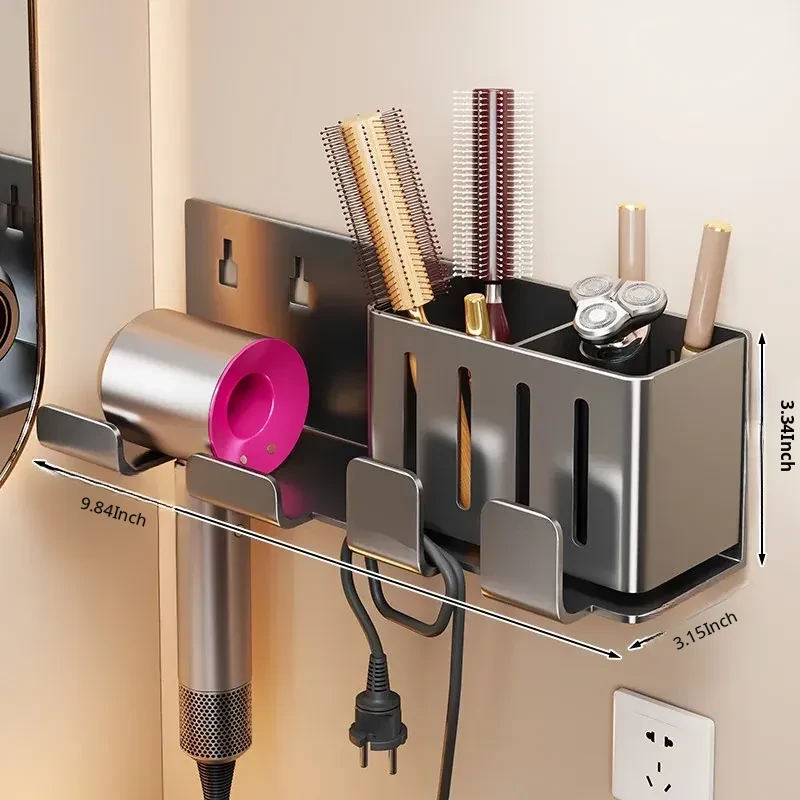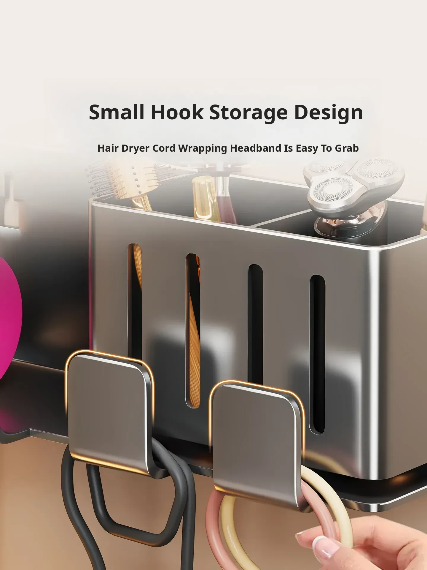 Wall-Mounted Hair Dryer Holder - No Drill Bathroom Storage Rack for Organizing Your Hair Tools - Stylish and Space-Saving Solution for Your Bathroom