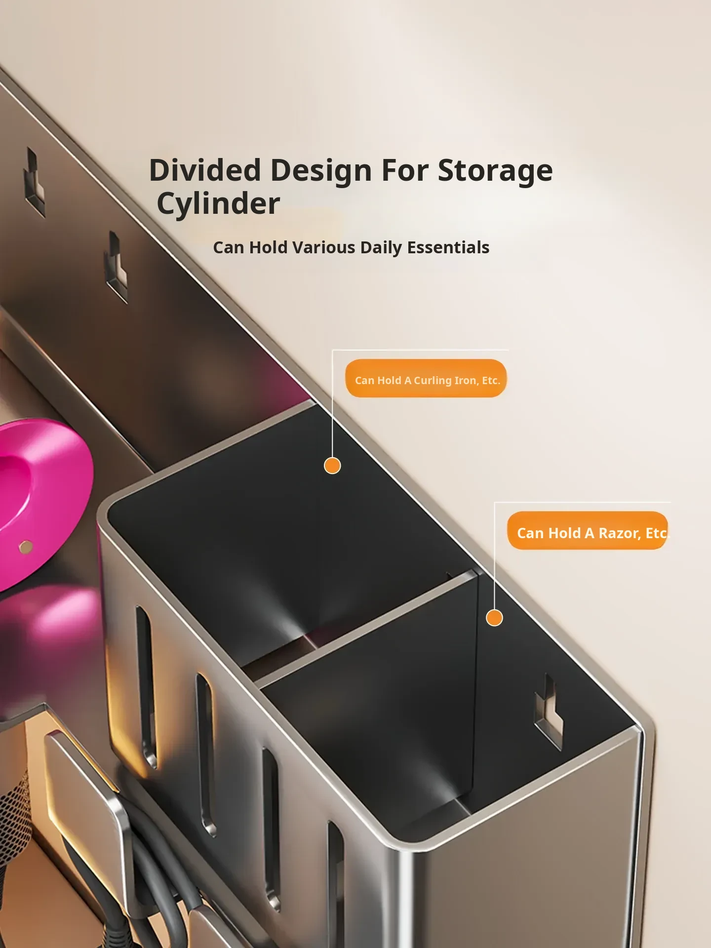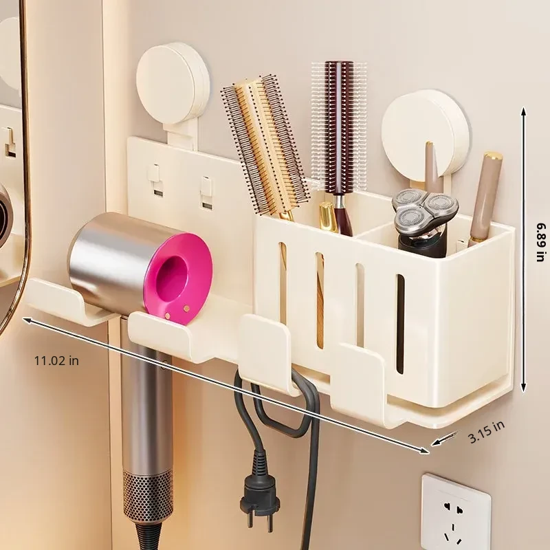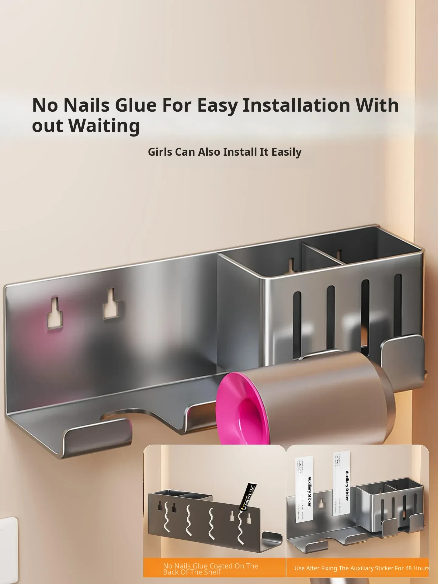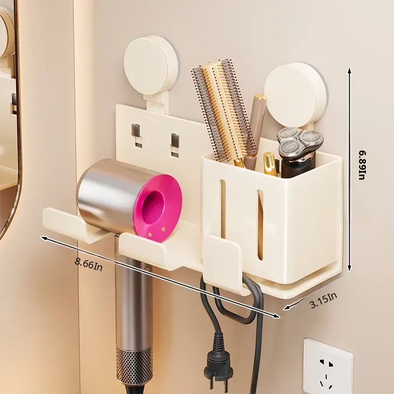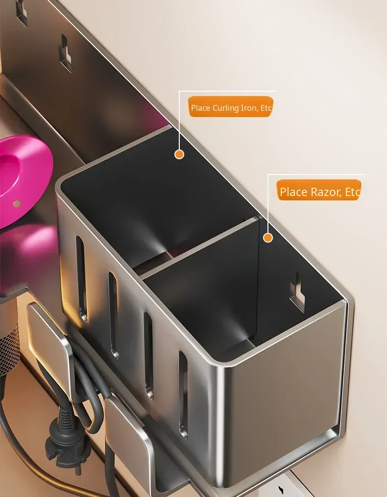 Wall-Mounted Hair Dryer Holder - No Drill Bathroom Storage Rack for Organizing Your Hair Tools - Stylish and Space-Saving Solution for Your Bathroom