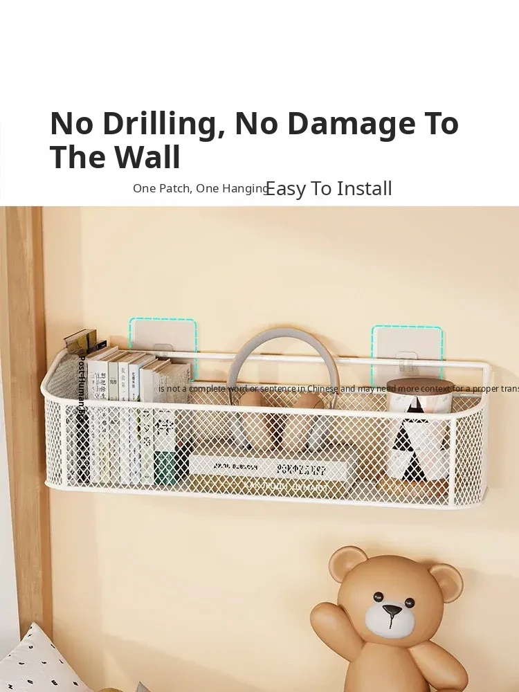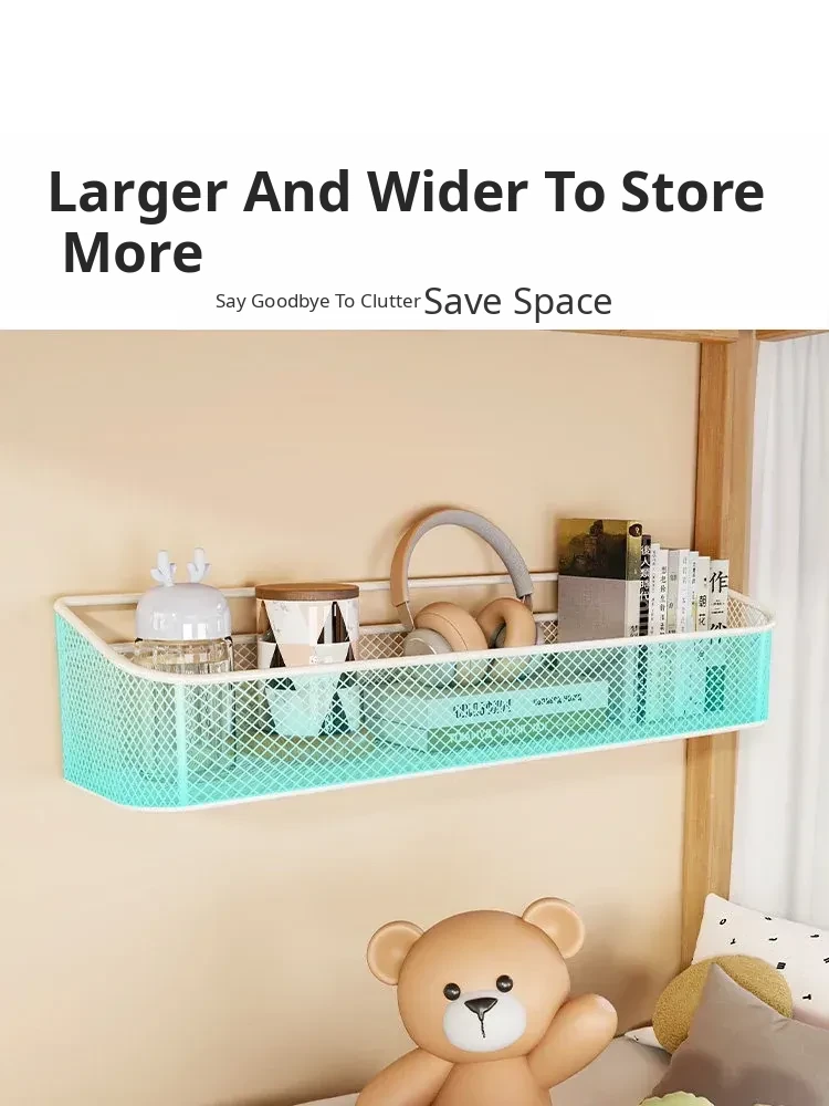 Wall-Mounted Storage Shelf for Dorms - No Drilling Required, Perfect for Bedside Organization, Space-Saving Hanging Baskets for Students' Bedrooms