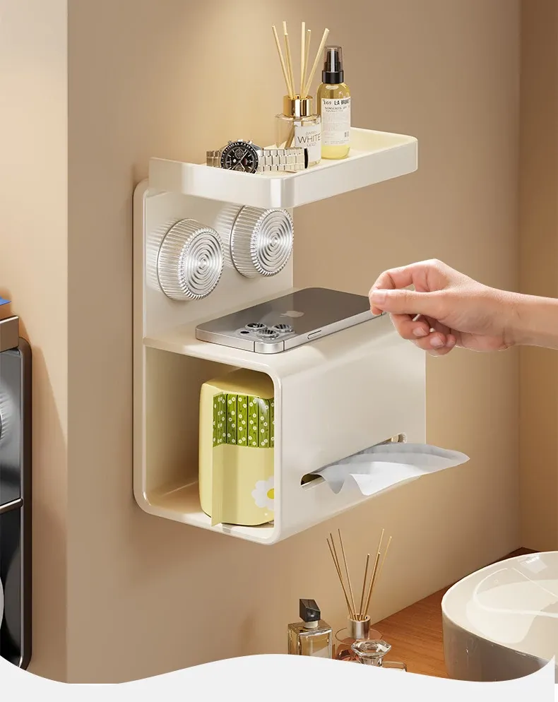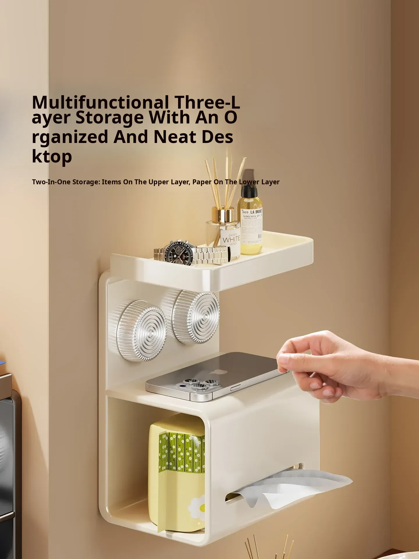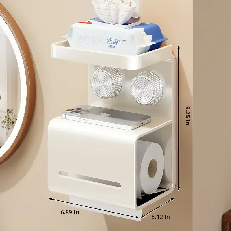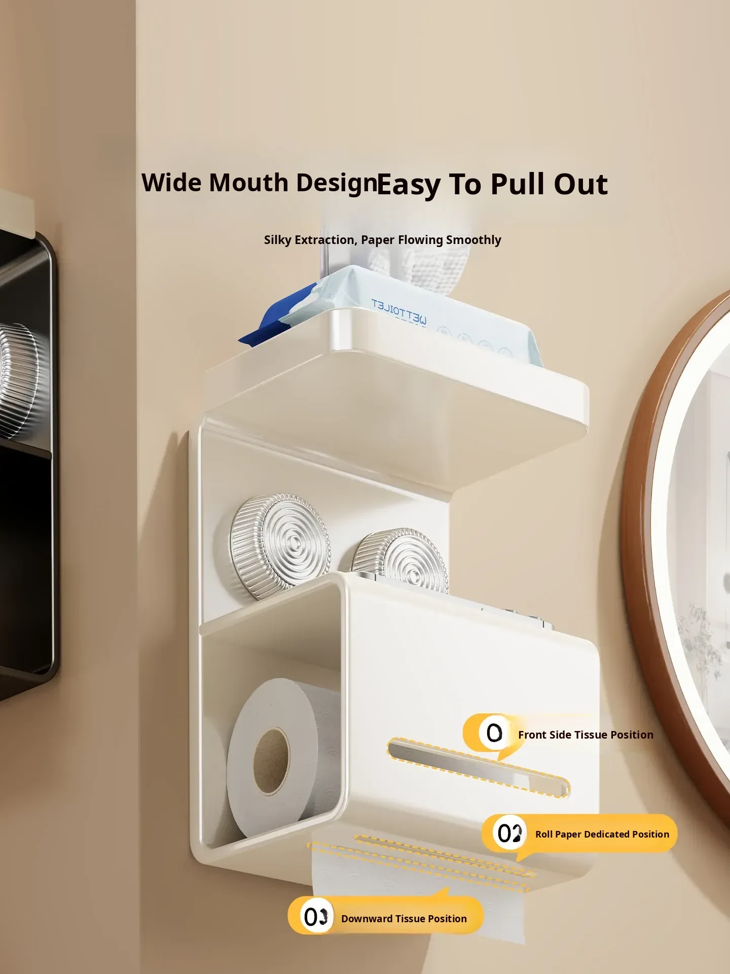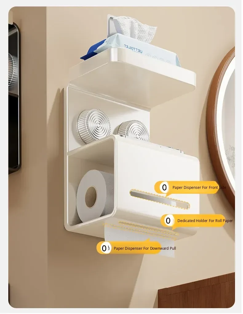 Wall-Mounted Tissue Holder for Bathroom - No Drilling Required, Space-Saving Storage Rack for Toilet Paper, Hand Towels, and Facial Wipes - Keep Your Bathroom Organized and Stylish!